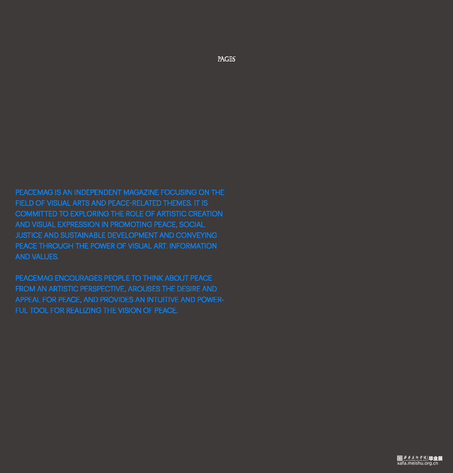 《和平誌PEACEMAG》是一本专注于视觉艺术领域与和平主题相关的独立杂志,致力于探索艺术创作和视觉表达在促进和平、社会正义和可持续发展方面的作用并通过视觉艺术的力量传达和平的信息和价值观。