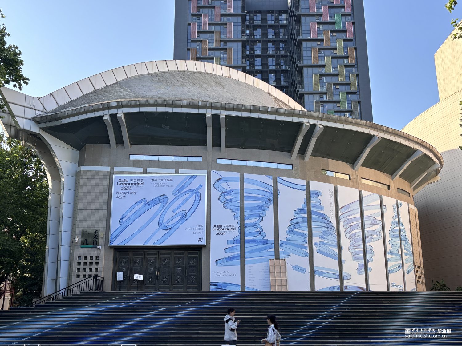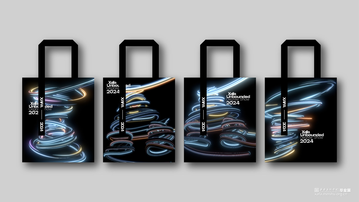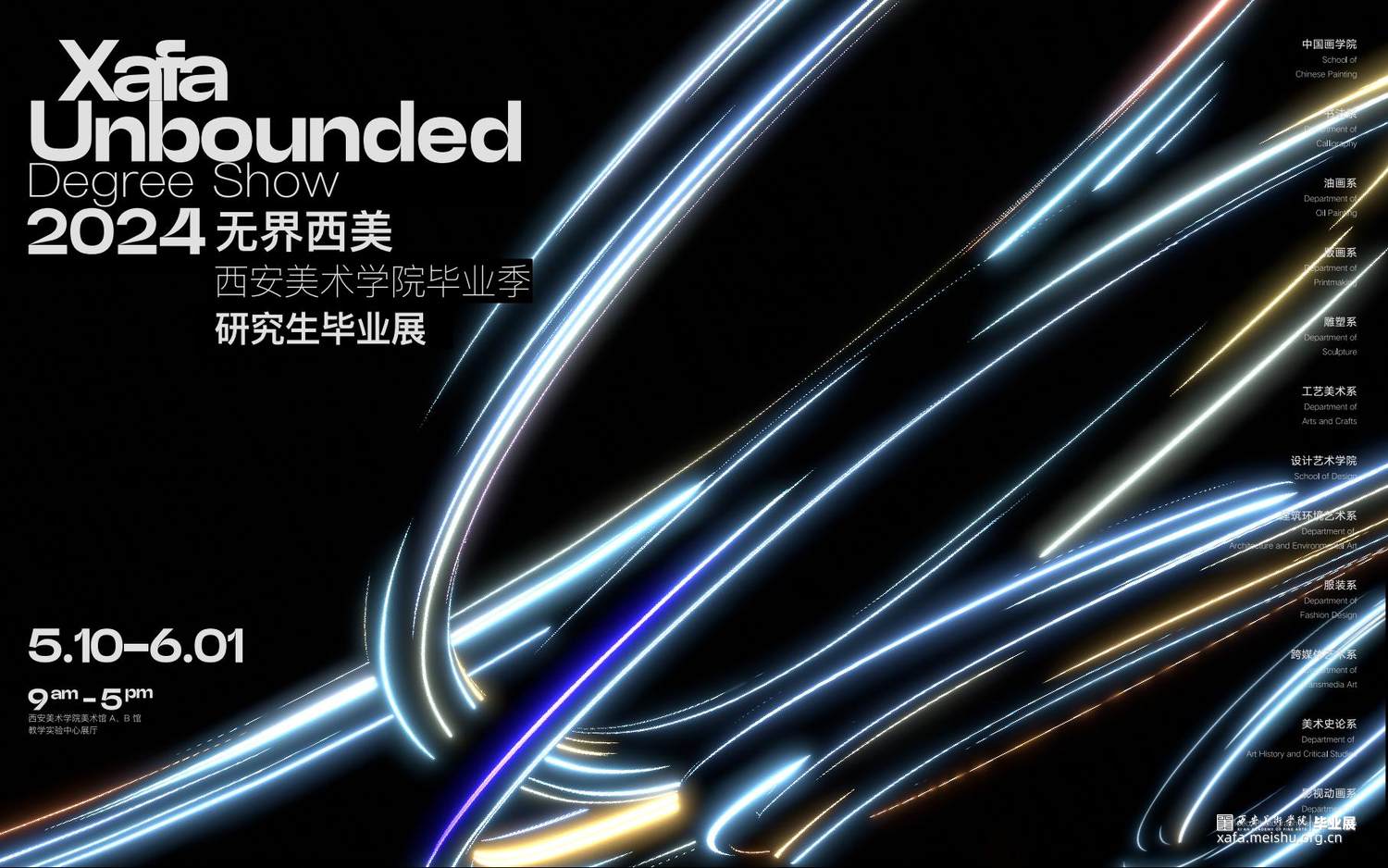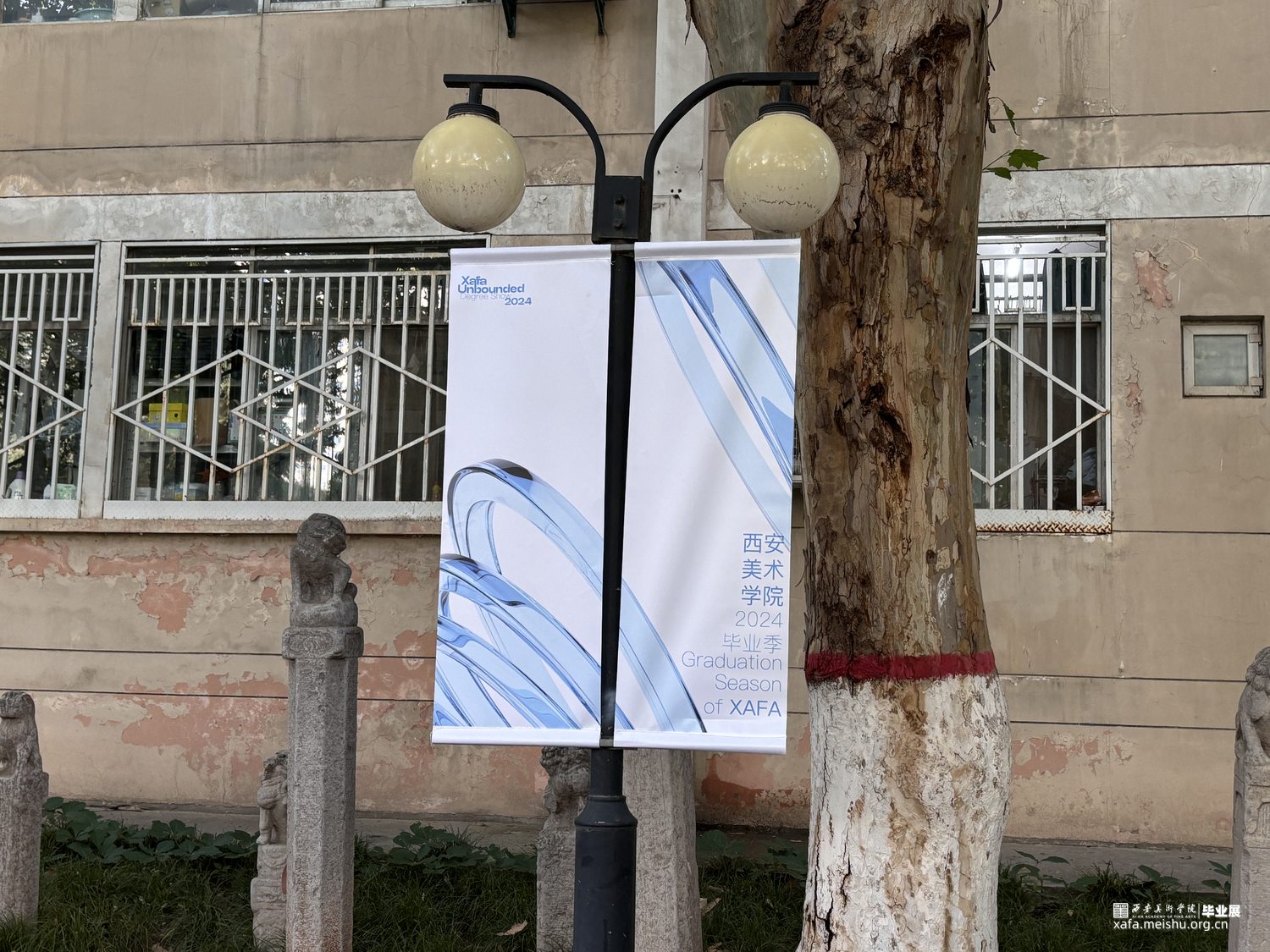 本次毕业季以“风”的律动为元素进行视觉延展,轻盈飘逸的“无界之风”吹动,飘逸动感的蔚蓝之环,传递出阵阵动人心弦的磬灵之声,而形成西安美术学院(XAFA)的风动场域。跨越技能、专业和学科边界;以古都西安为起点,通过西美艺术的无界之风,走出校园,走进生活,展现“城市之风”,引领“未来之风”。