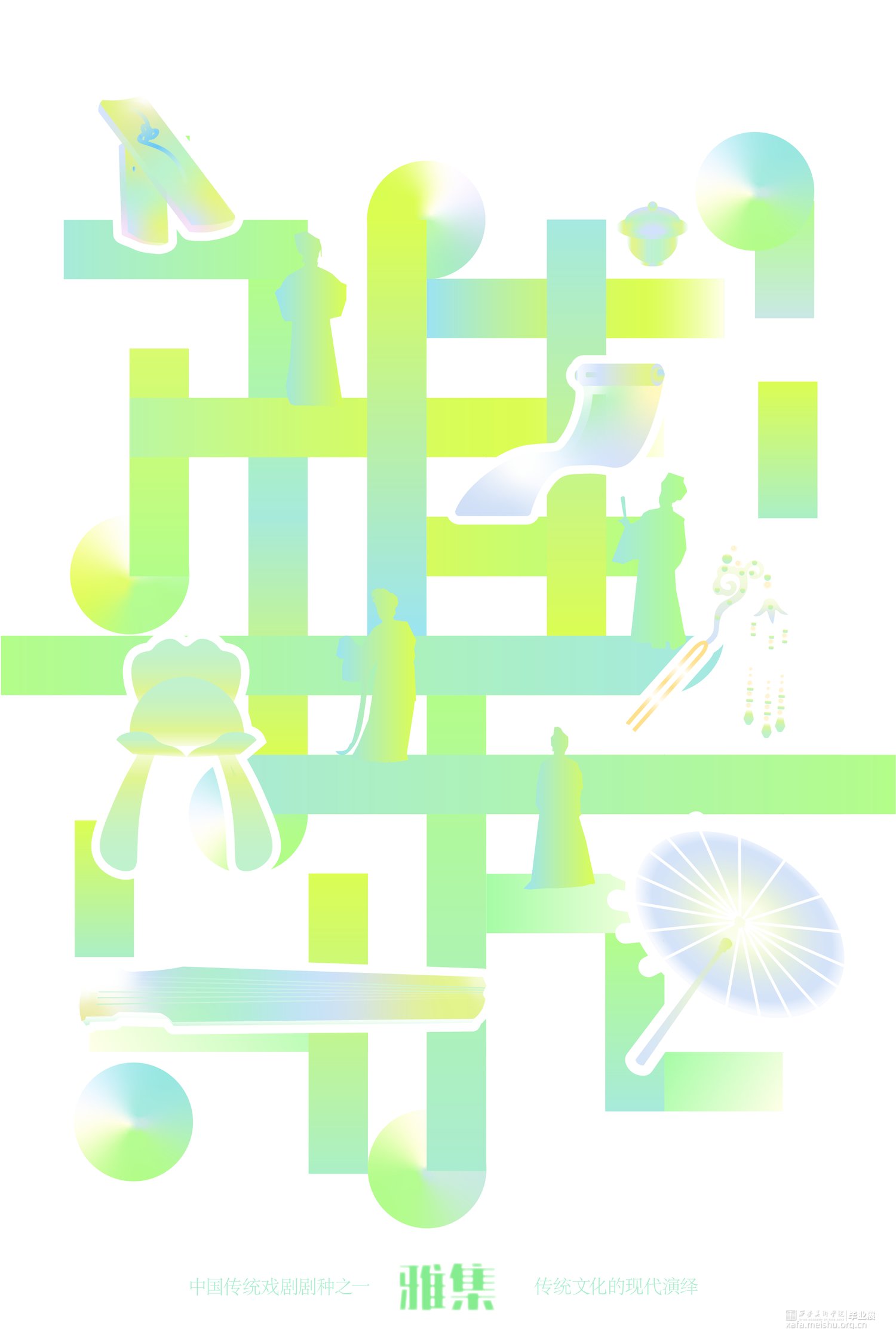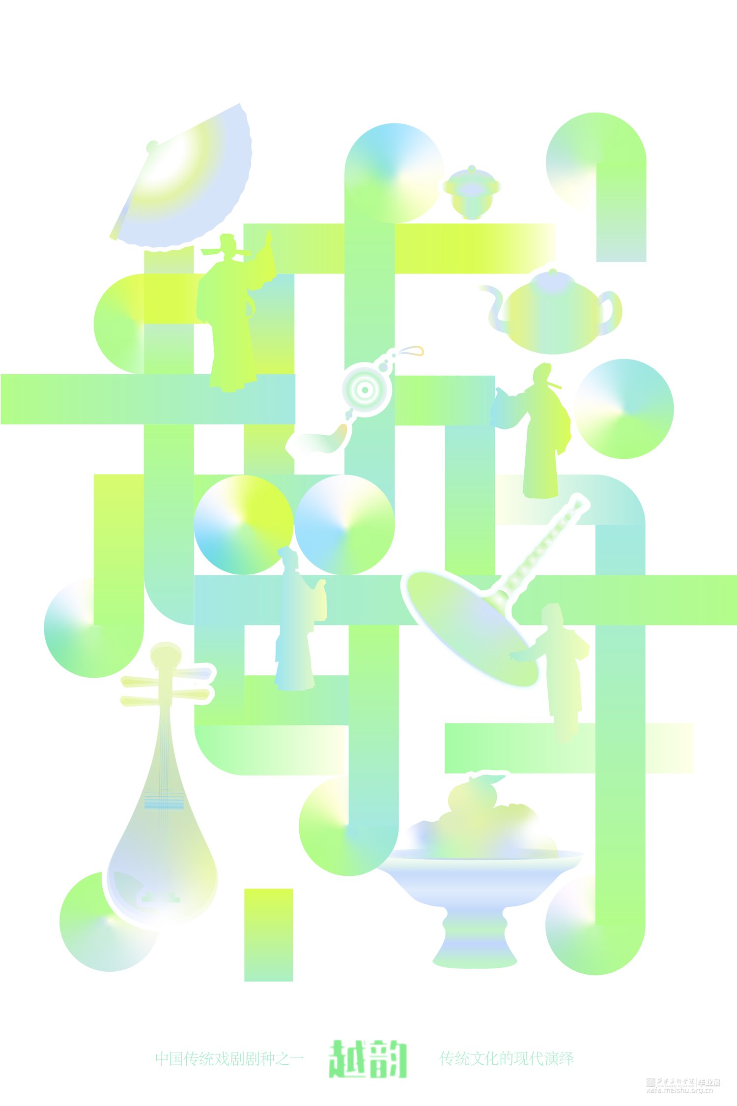 《越韵雅集》以越剧经典故事为中心进行设计创作,将越剧人物作为主体,提炼越剧视觉语言,以弘扬中国传统文化与现代设计的多元设计理念为指导思想,将江南特色元素和人物形象结合,展示越剧创新宣传的理念。