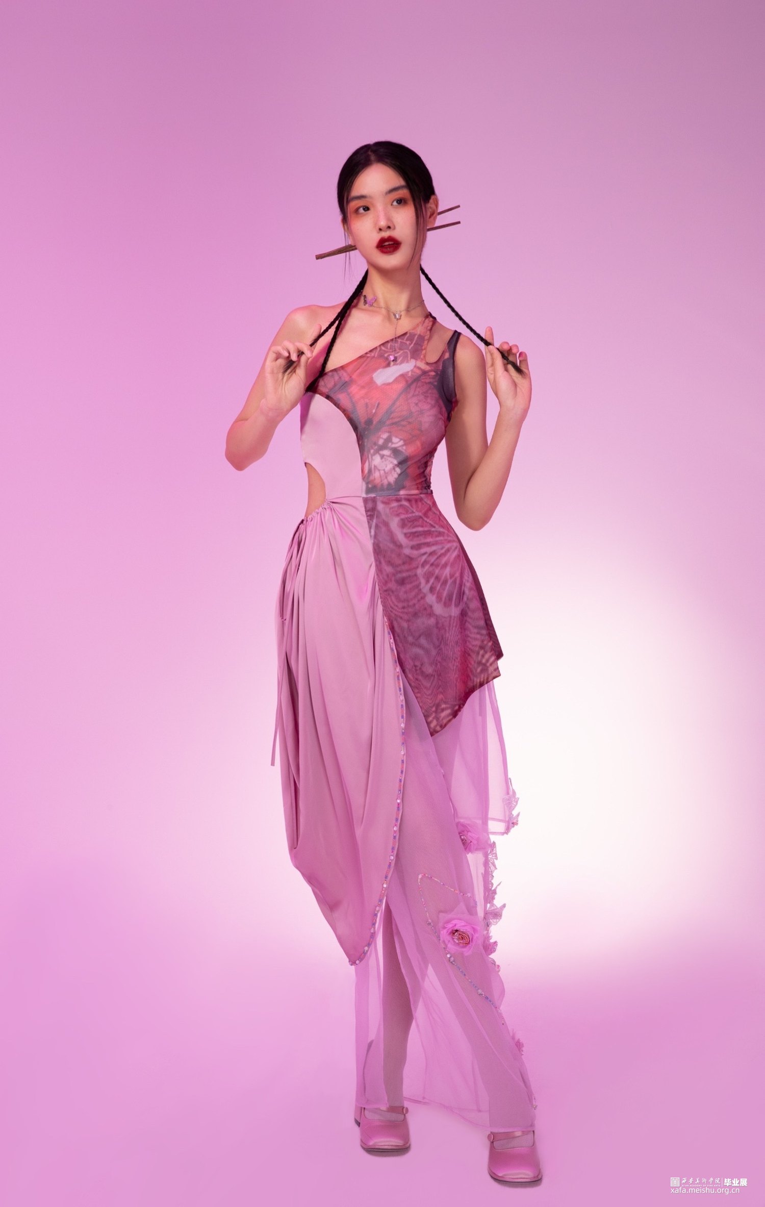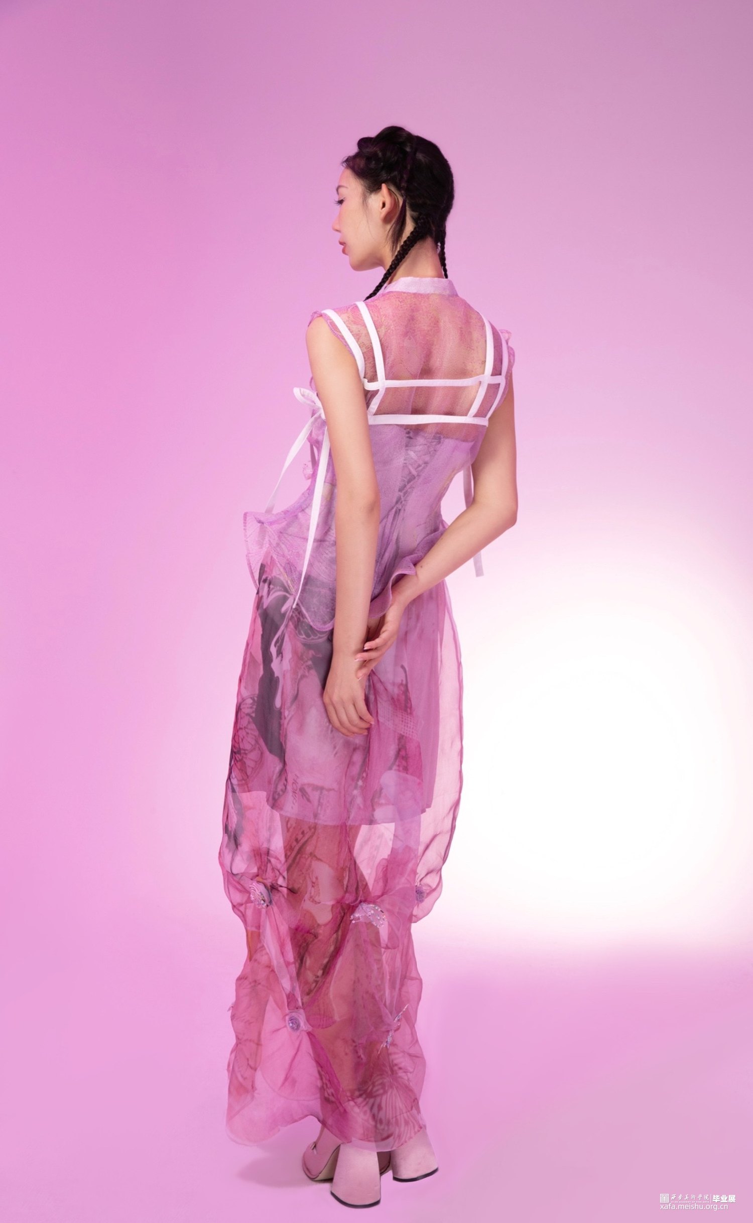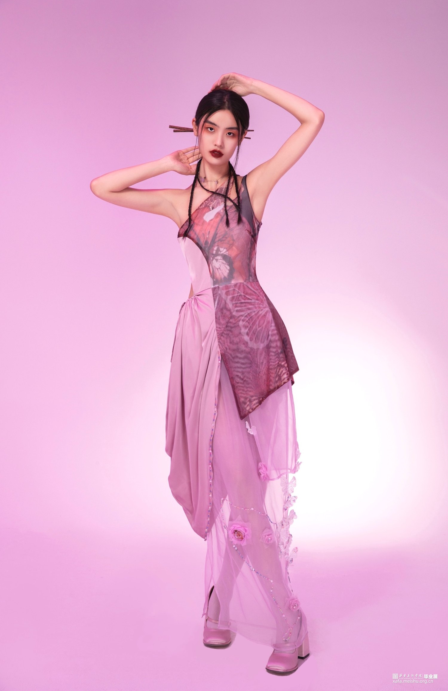 该系列主题为《庄周梦蝶》,从庄周的浪漫主义、无为、逍遥的思想到其本质对于世间万物的深刻思考,深入浅出地用“梦蝶”提出对世界不确定性的设问。从对中式传统服装的研究,表达设计师希望用camp style诠释“东方女孩,穿我想穿”的概念。