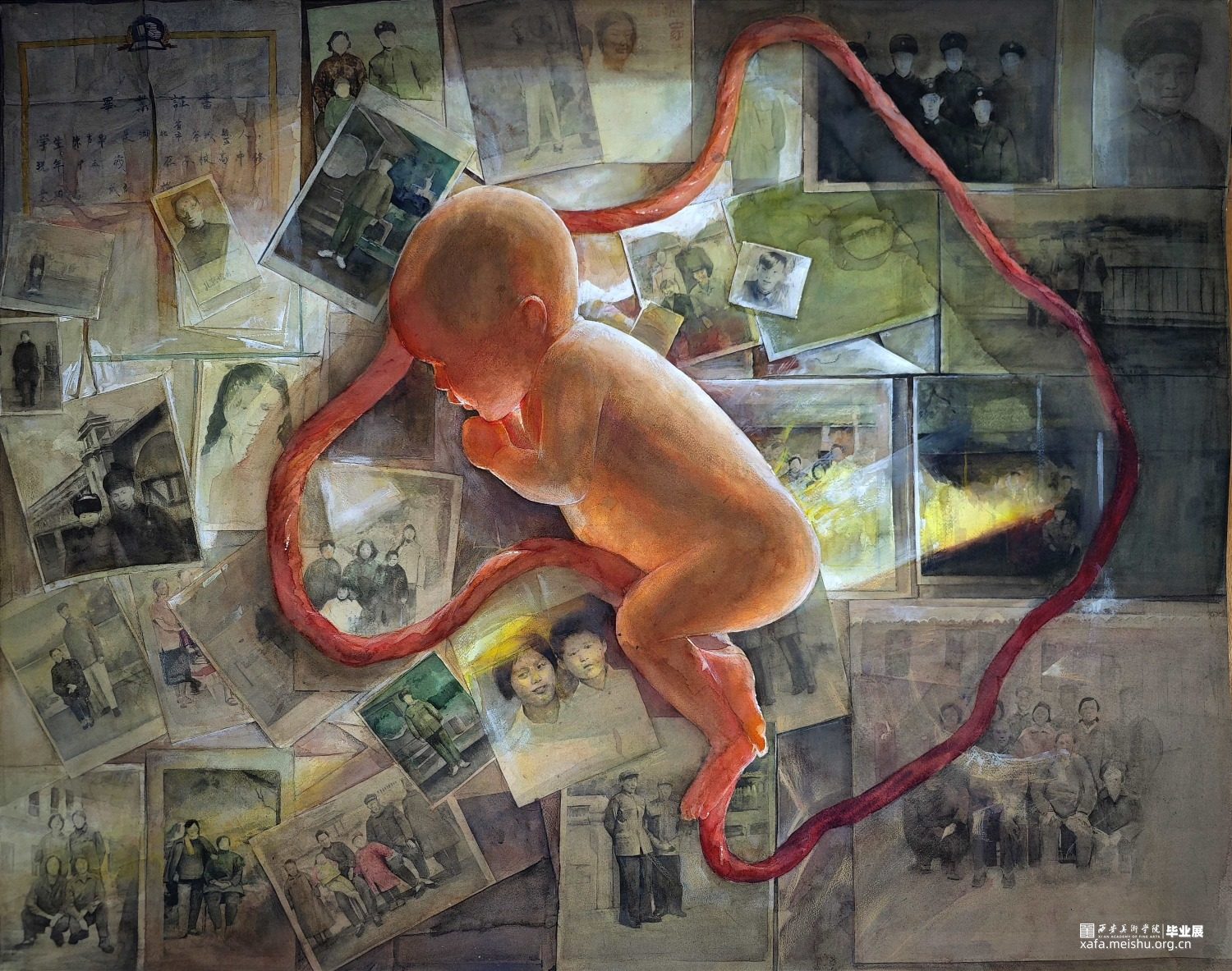 这一组作品体量不大,意在还原一个大家庭一代人的精神面貌,那些我没有见过却和我有千丝万缕关系的人们。因搬家下雨被淋湿损坏的相册中的那一代人的样子却也跟着一起消失在回忆里,有时候逝去并不是真正的死亡,在这个世界上被最后一个人忘记才算......在经历22年挚友的去世和23年外婆的病逝之后有了特别强烈的记录的欲望,所以创作了这么一组小画。希望可以在还原那消失的相册的同时记住那些也曾如此鲜活的生命,他们也曾来过这个世界!