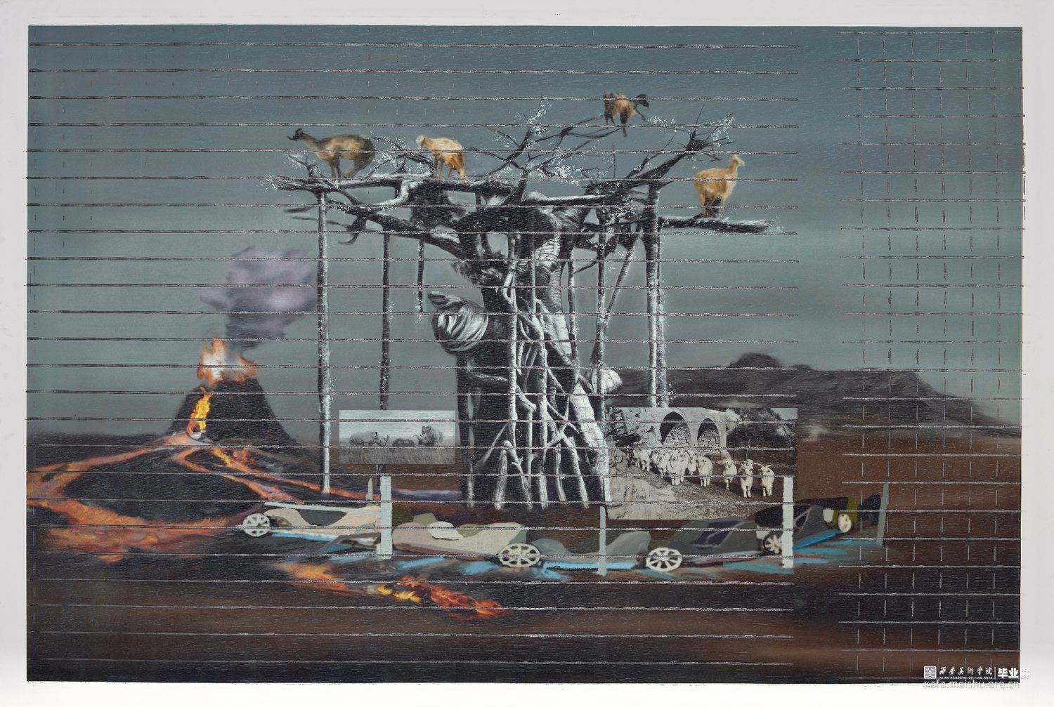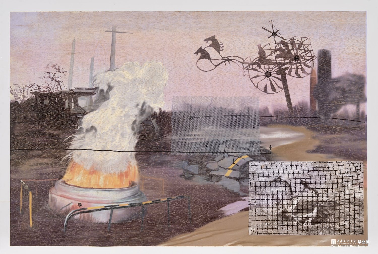 运用综合材料构建城市废墟过往与未来的联系,废墟呈现出城市的过往与未来构想。废墟是一种现代遗迹,一种建立在现实荒芜上的浪漫,源源不断又终会消失,我也生活在废墟里,名为生活的废墟。