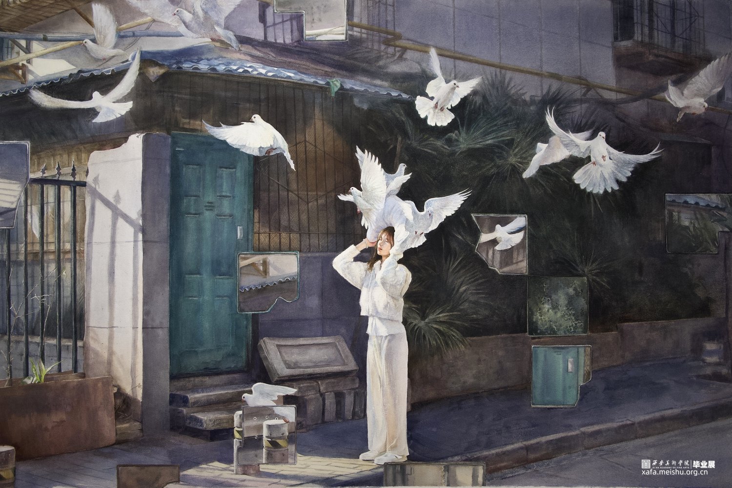 以鸽子为共同点从写实和超现实主义不同的表达方式创作的两张作品。