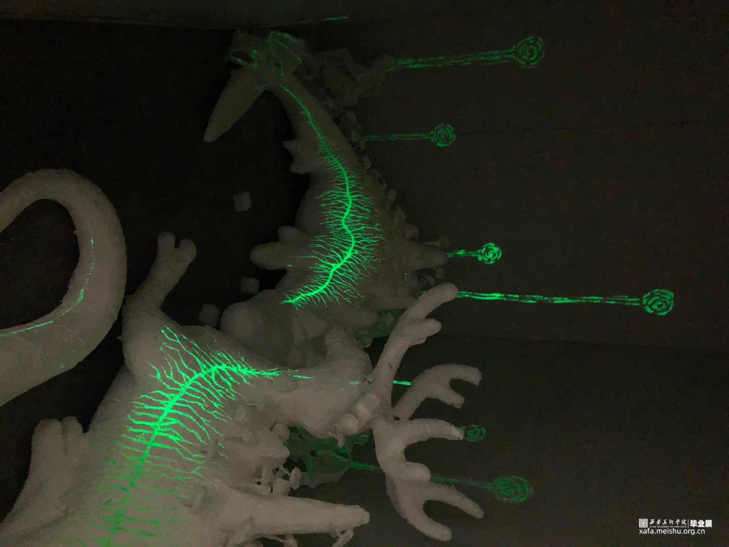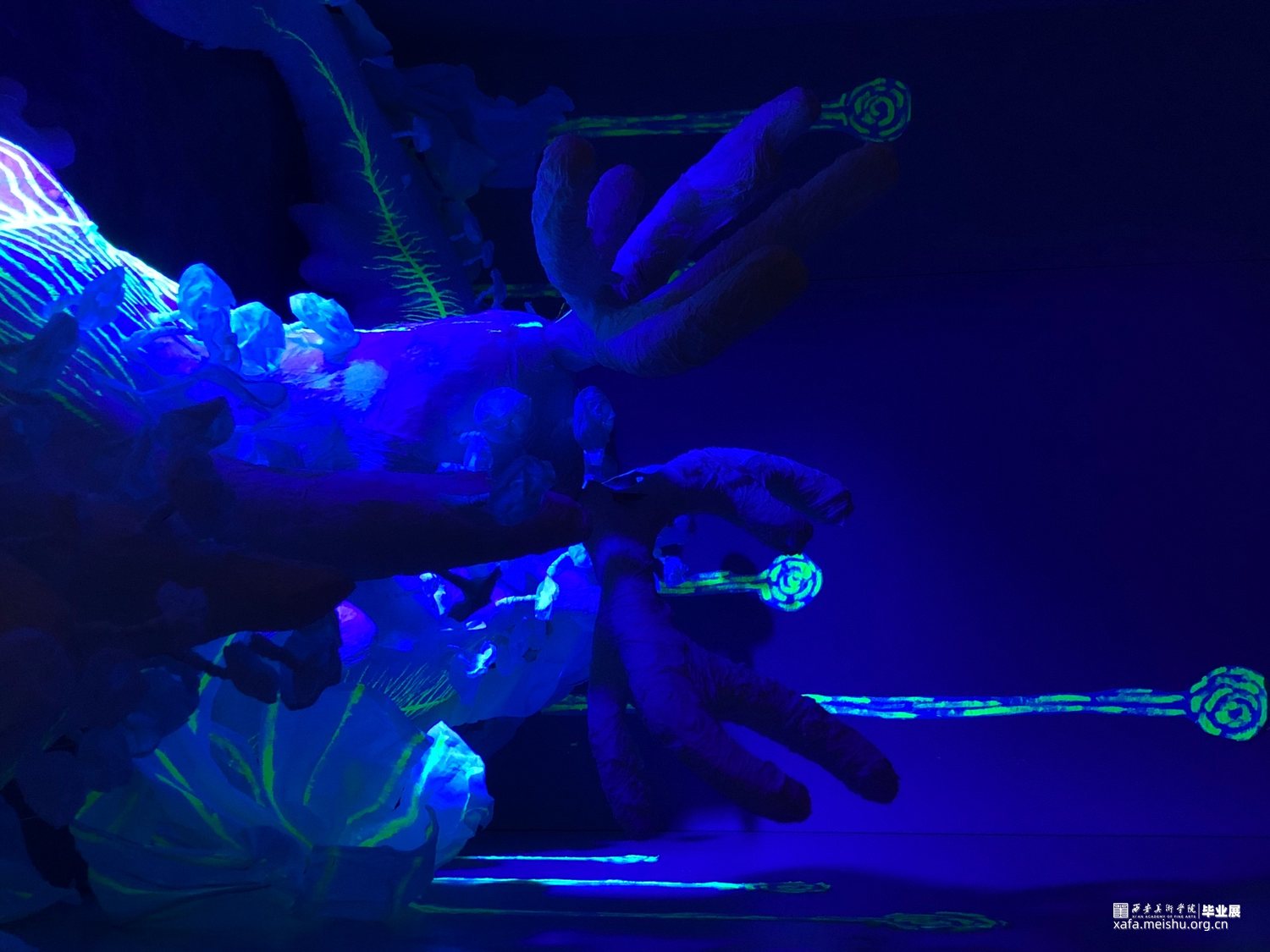 《追光者》作品是一个关于人类后现代的装置艺术 作品。作品的灵感来自于日益严峻的生态环境变化,在 世界巨变之后人类应当何去何从,反映了在时代变化下 人们的生存选择,无论是社会变化,还是生活结构的变 化带给人们的影响…… 我希望能通过此作品呼吁人们对自然环境和自身处 境进行思考与反思。世界的改变不会因为一个人而改变, 但是却和每个人息息相关。在自身无力改变世界的情况 下,顺应时代和对自身产生思考
