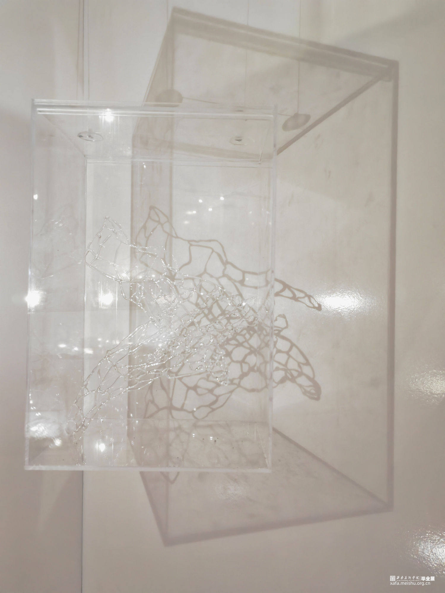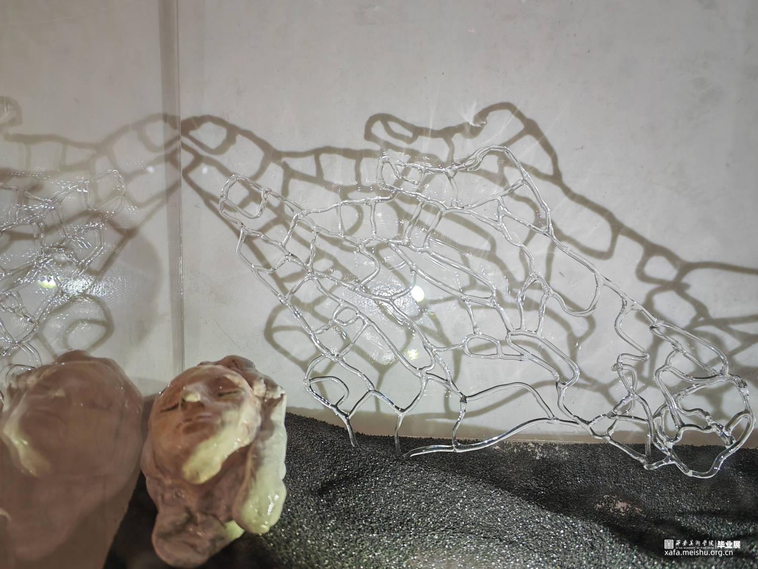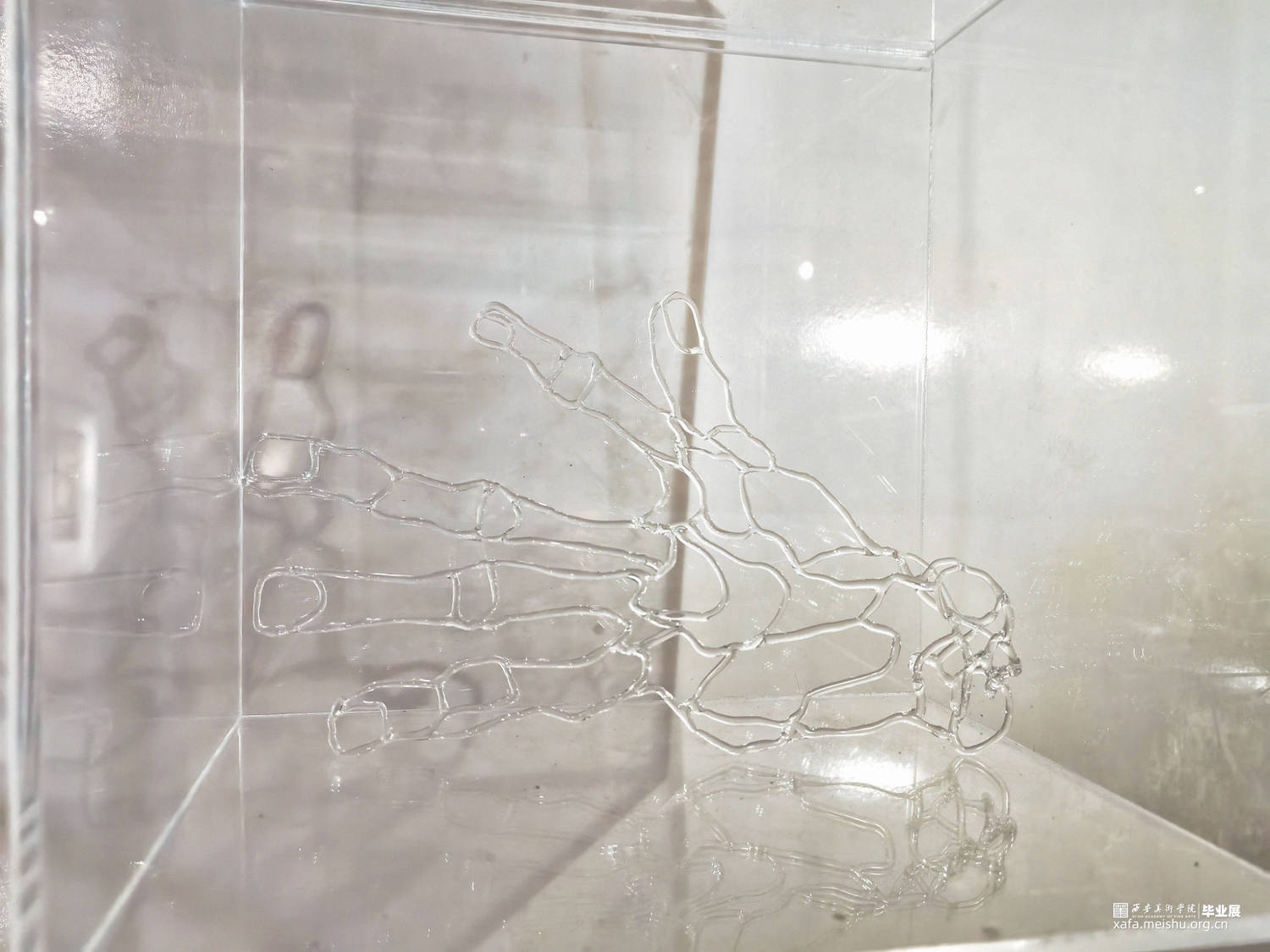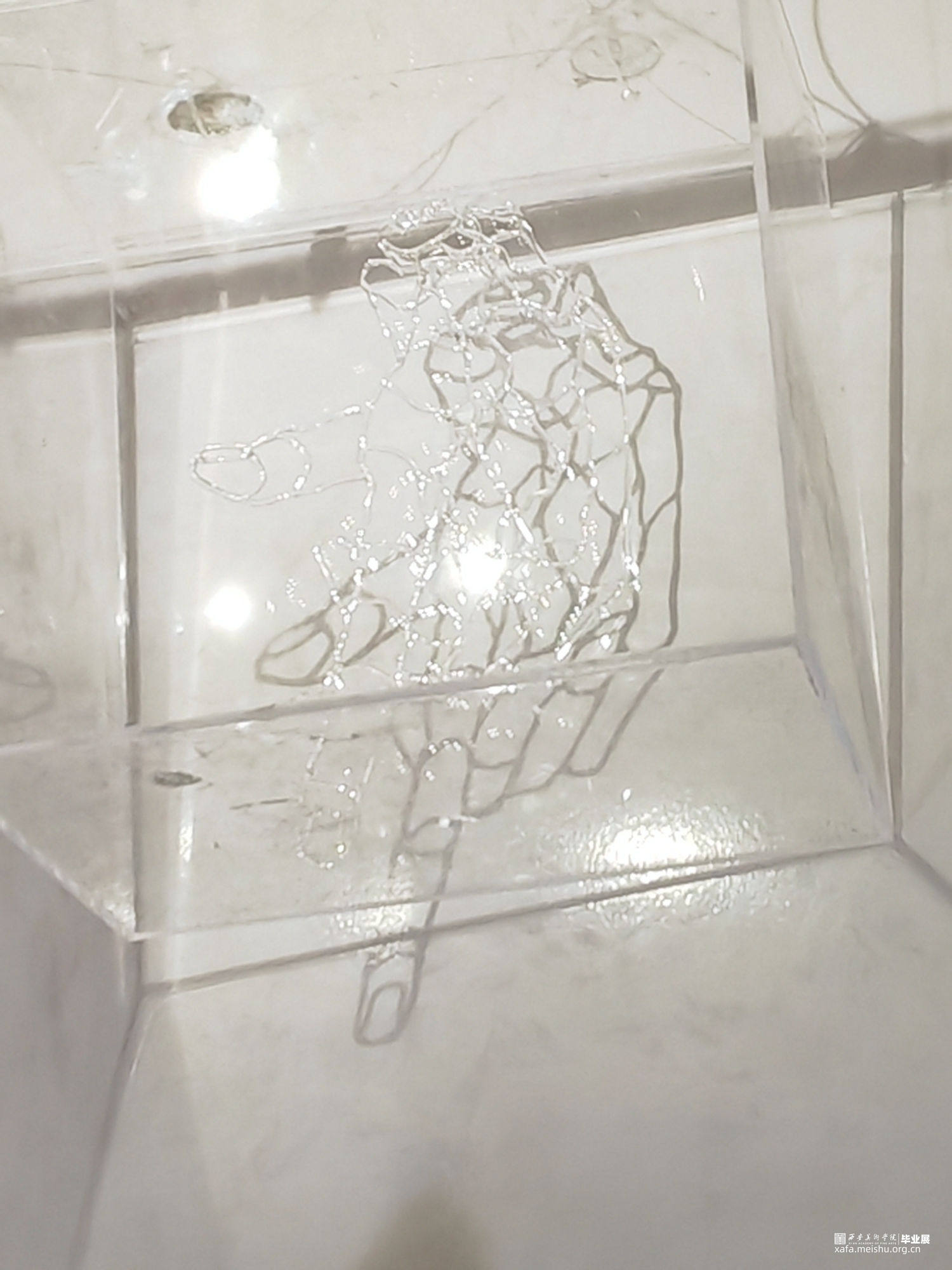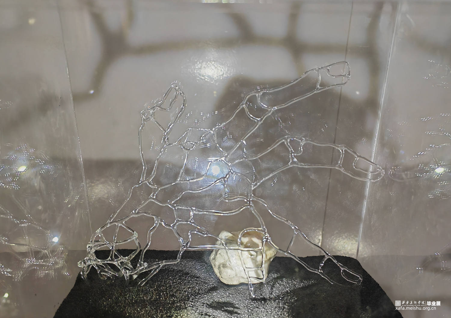 在当今内卷的社会当中,少数人群被边缘化和疏远,在社会边缘徘徊。在与被边缘化的残障人士接触后,我开始反思他们被边缘化的处境,通过展现边缘化群体的内心世界,运用玻璃脆弱与透明的属性,通过灯工编织出透明的双手,描绘在社会当中容易被遗忘的“透明人”以及经常被忽视与遗忘的人。将这些透明的手置于聚光灯之下,将它们显现出来,呼吁社会对边缘人群的聚焦与关爱。