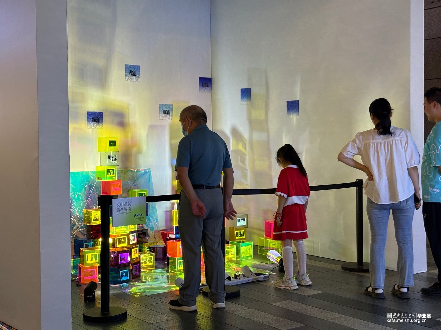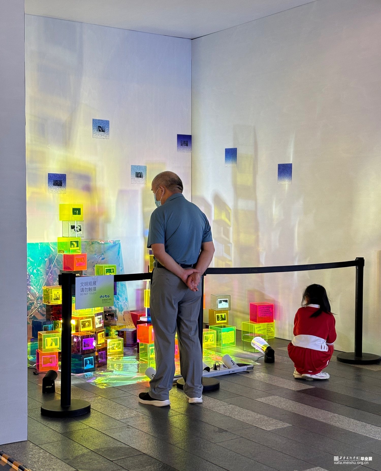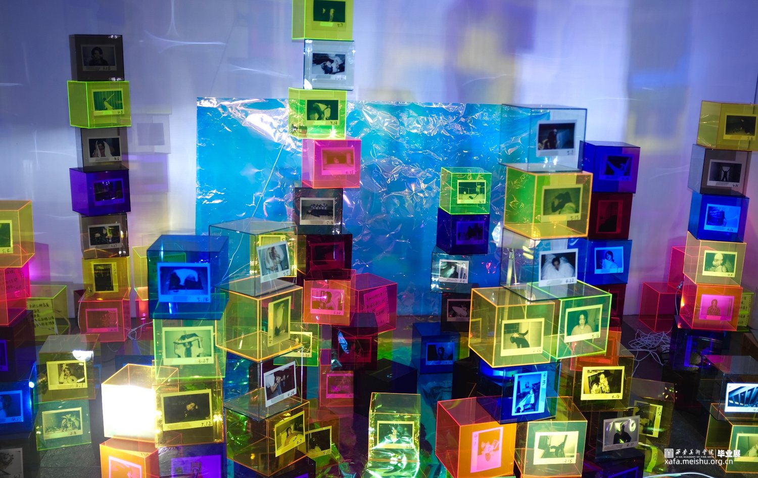 这些是我毕设前100天每日对自己拍摄的一次性成相。 我是个向来敏感内心较封闭的人。而将这些不同状态的“我”直接展示,是对自我、他人眼中的我、他人眼中的自己,一场感受上的共鸣交流。 相片、日记碎片,放进百个亚克力盒,呈现被包裹的状态,是自我的保护。 对日常记录倾向于黑白灰,但盒子色彩鲜明,是对我真正内心的投射。 灯光透过所有的“我”,墙面地面映射出五彩的光线。这是不只浮于相片表面、拥有更多色彩、更鲜活的自我。