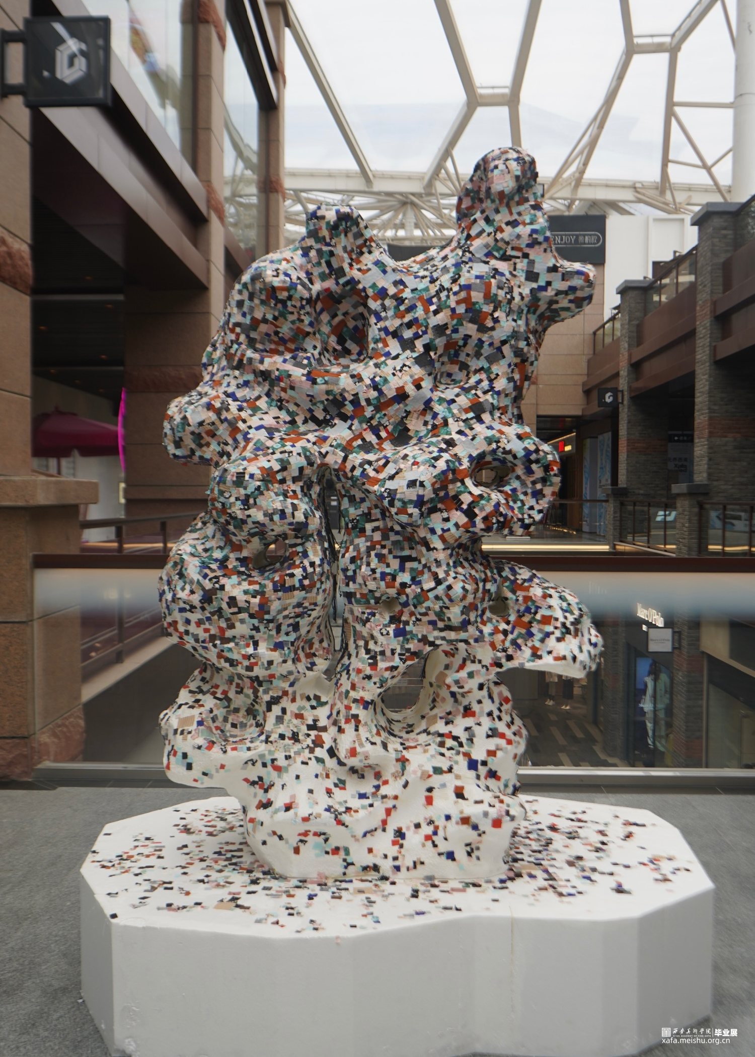 当代社会中人们对“ 独立女性”有这过多的标准,但是“独立女性”应该被标准化 吗?通过这一基点作为探讨的话题作为毕设的理念。作品我选择太湖石的形态作为基地,是 因为太湖石从古至今都有着被观赏性,而标准化的女性是否也是具有观赏性的的性质,在我 看来两者是相同的。纤维材料我选择在前期调研的女性中,收集了她们的衣物,拆解重组在 拼贴。再给太湖石拼贴做“衣”的过程中,我将衣物拆解是去性别化,打破对女性标准化的固 有理念,女性可以是任何物但从不是别人口中的“产物”。而拼贴的整个视觉效果我将采用⻢赛克的方式同时保留色彩