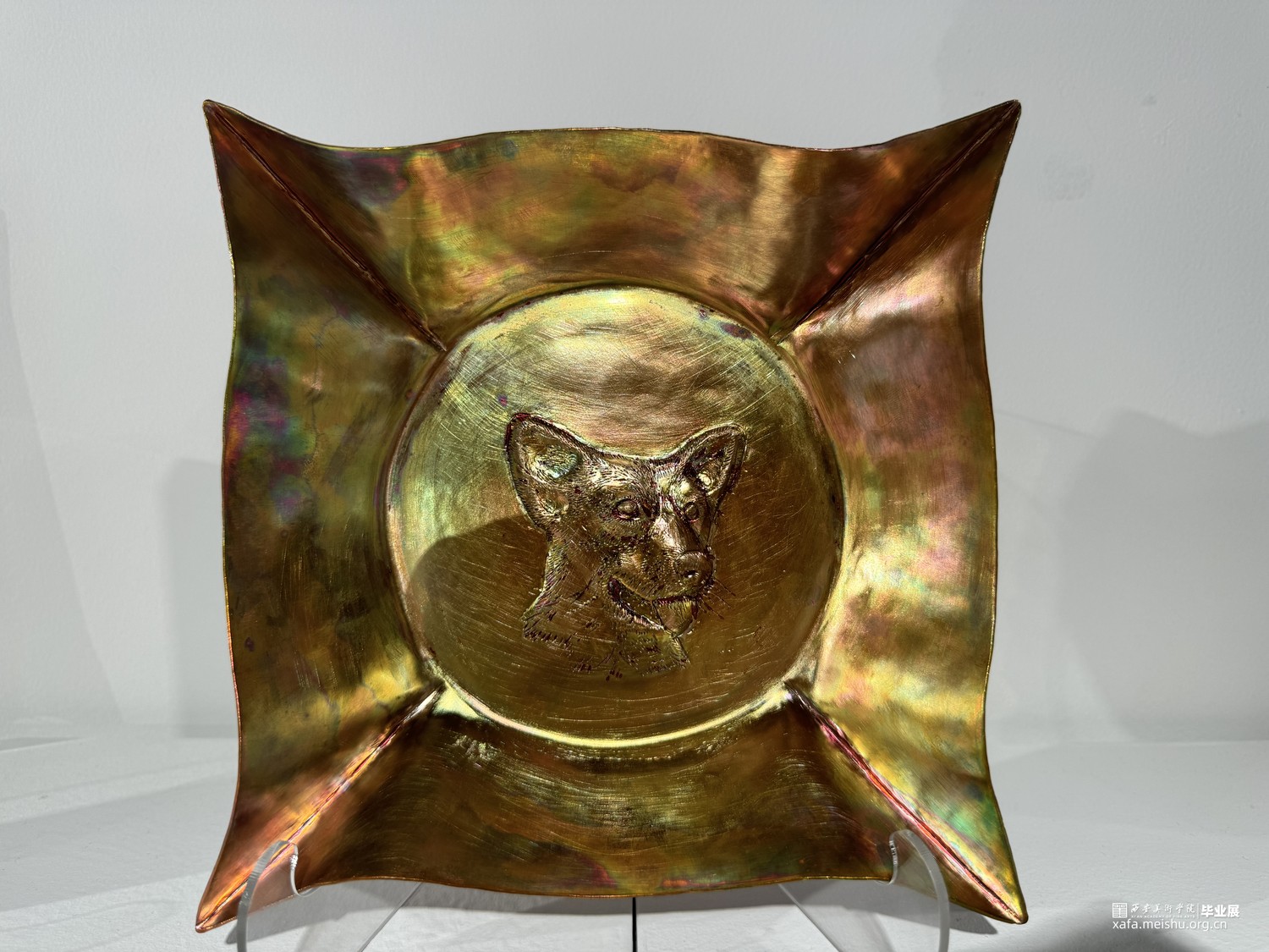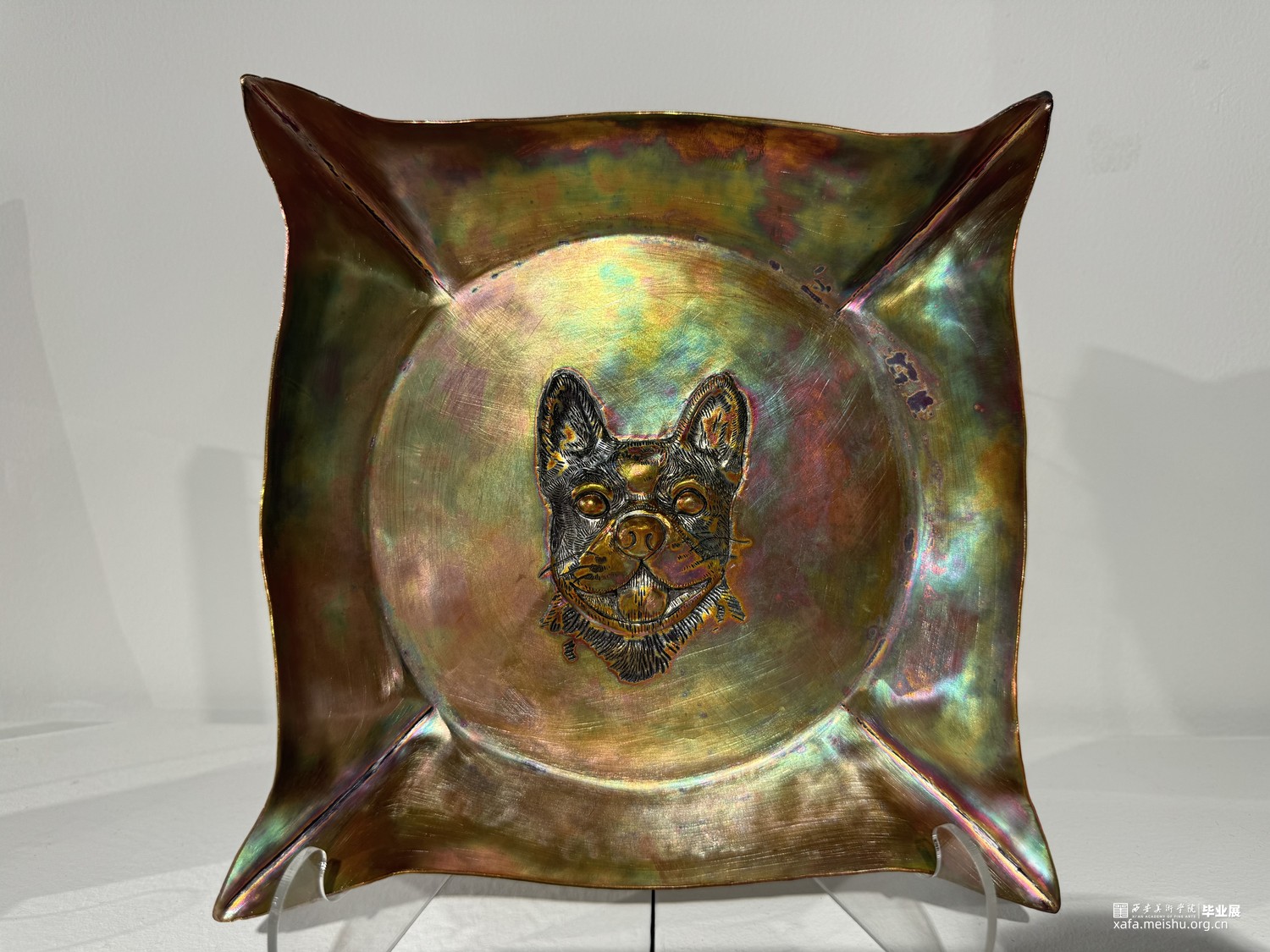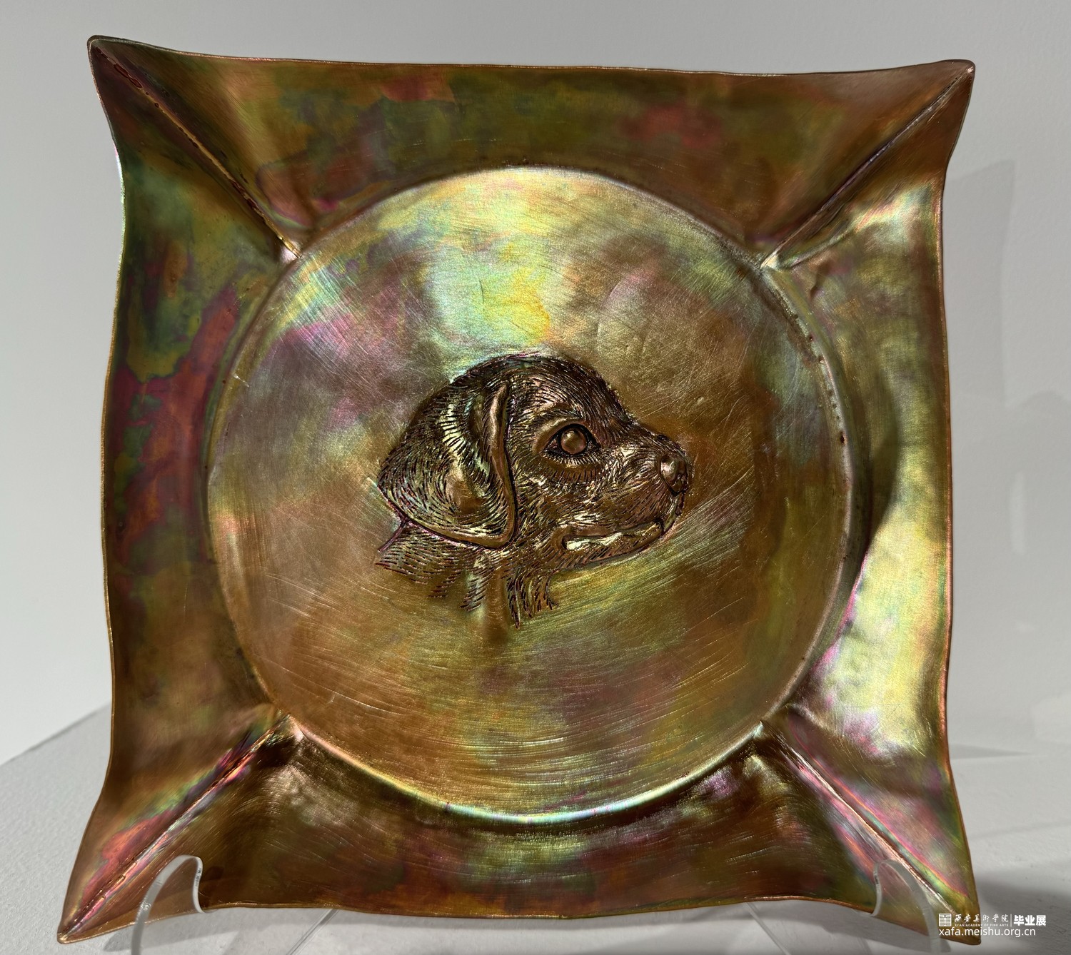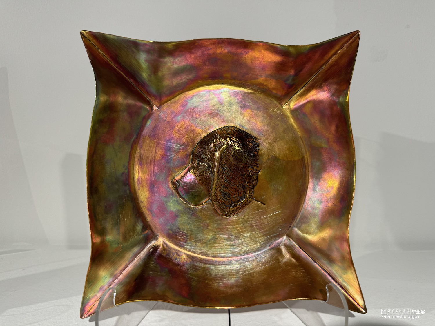作品运用传统錾刻工艺,对动物形象进行精细刻画。既保留了錾刻艺术的特有的设计语言,又实现了创作风格的创新与突破。这种风格不仅生动地展现了动物形象,还赋予了作品更深层的象征意义。作品超越了对狗这一形象的简单描绘,深刻反思了人类与自然、与动物的关系,体现了艺术家对于和谐共生理念的追求。