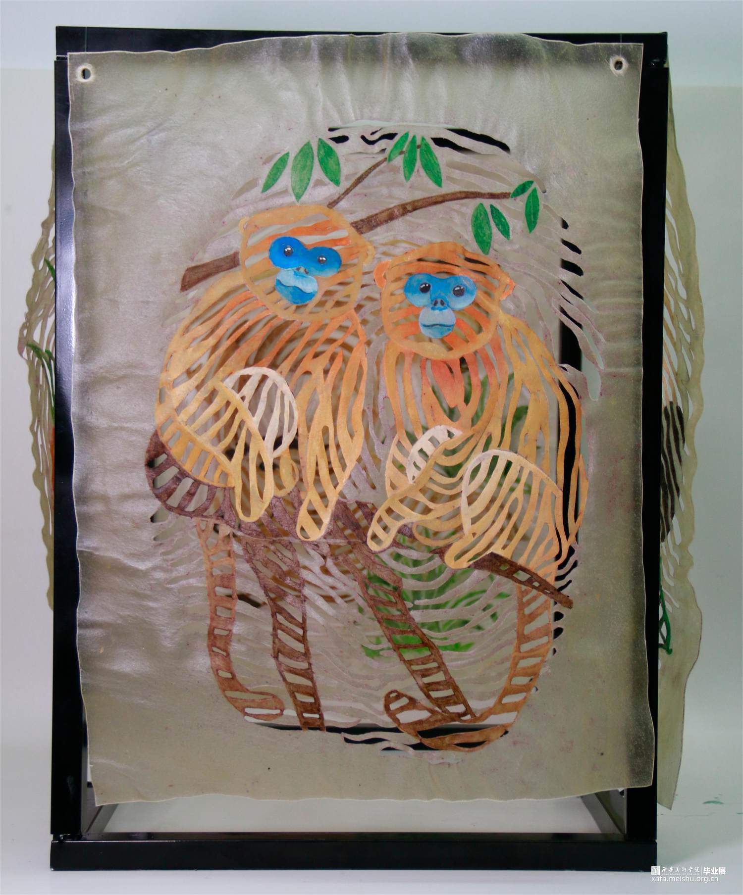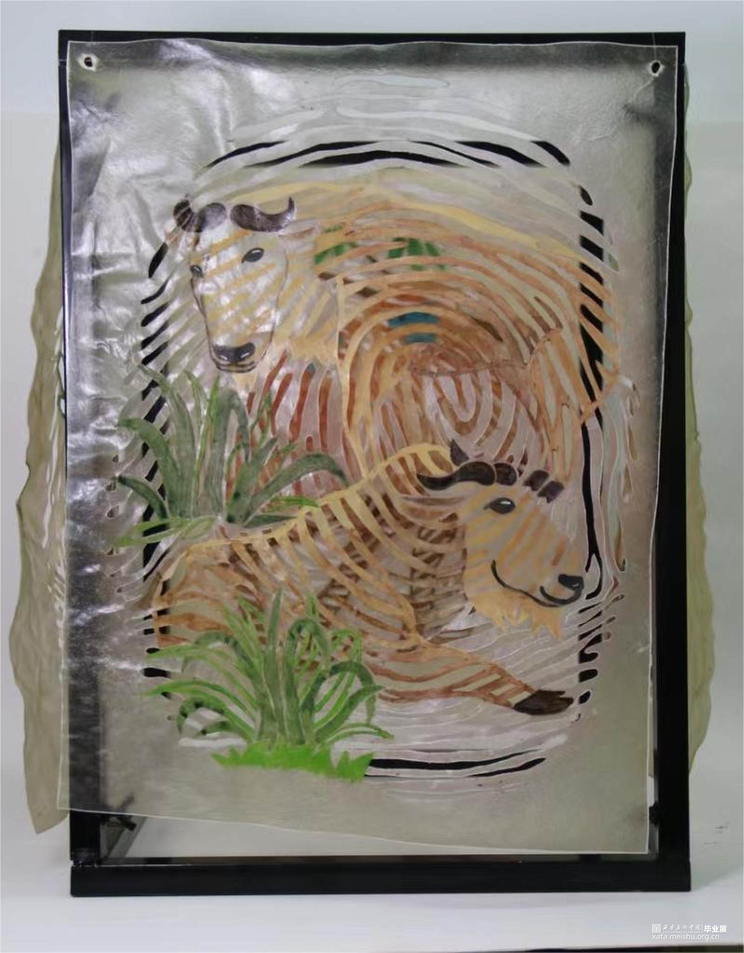 本作品围绕“秦岭四宝”这一主题,精心设计了四个主要角色:大熊猫、金丝猴、羚牛和朱鹮。每个角色均具备独特的外貌特征和个性,生动展现了陕西独特的文化与自然景观。作品通过传统的皮影雕刻手法,结合指纹元素,创造出一种全新的视觉体验。每个角色不仅体现了秦岭四宝的独特魅力,还象征着对自然保护和生态平衡的深切关注,通过作品的呈现,传达出人们对大自然的敬畏与热爱。