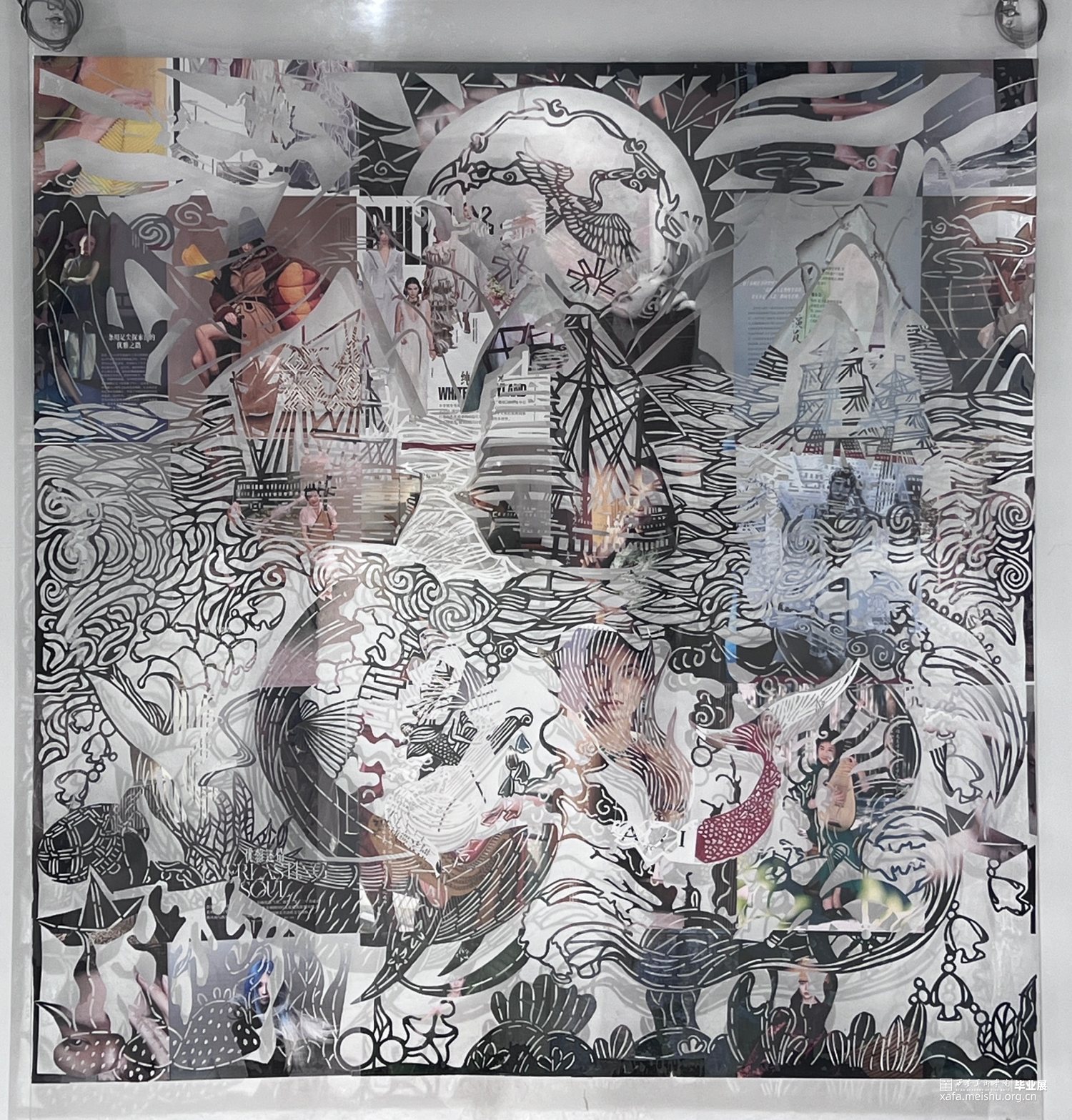 以深邃的蓝色为主调,运用细腻的剪纸技法,展现波涛汹涌的海浪与宁静的深海。每一片剪纸都是对海洋深情的呼唤,是对自然之美的赞美。通过蓝色交织,展现海的深邃与宽广。海浪起伏,寓意生活波折但美好