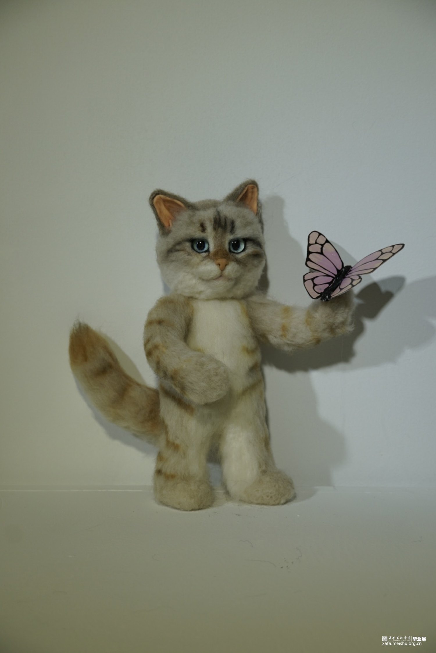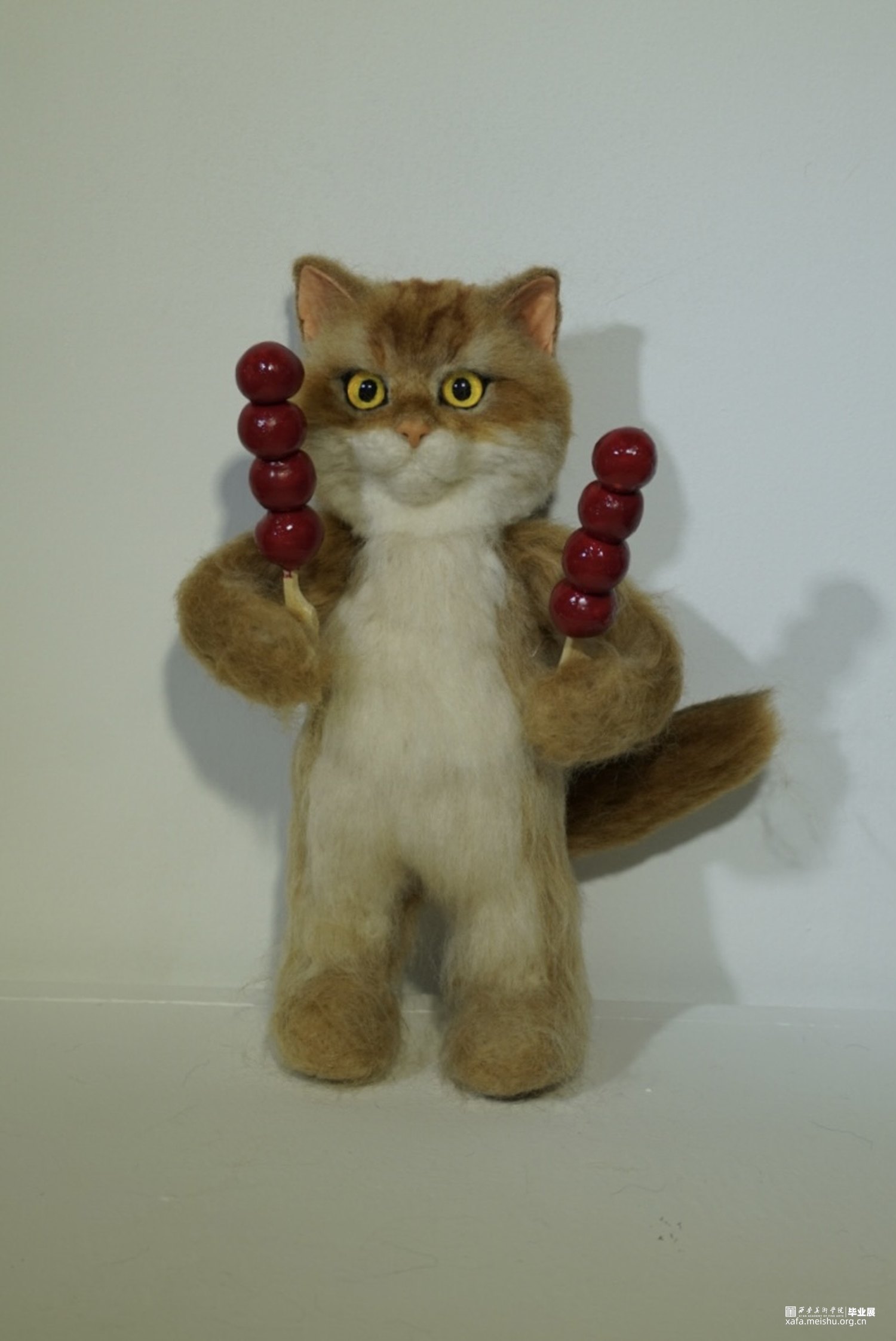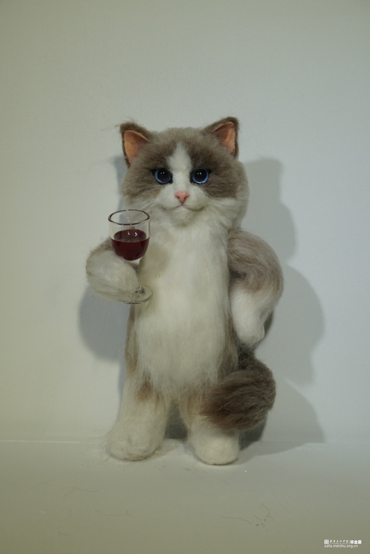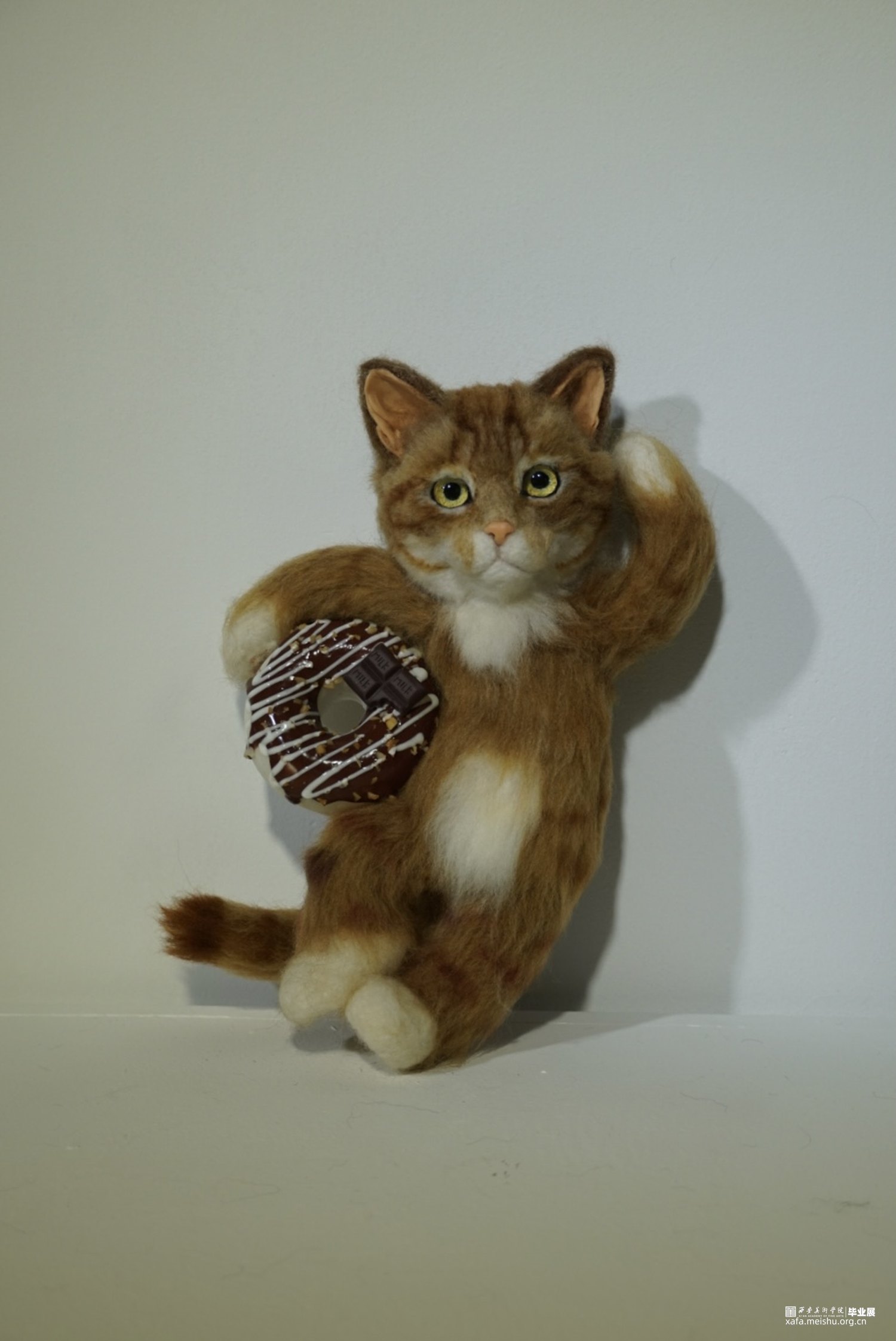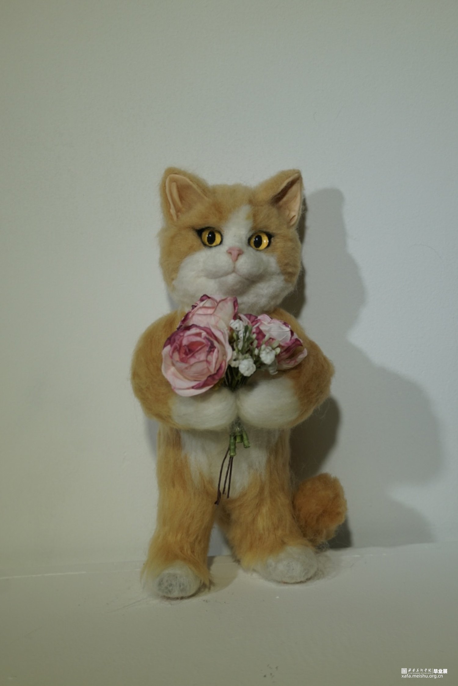 本创作通过针毡工艺的创作实践,探索传统技法与现代审美的结合,拓展工艺的应用领域和表现形式。在当代社会中,心理健康问题日益突显,如何通过非药物治疗手段提升个体的心理幸福指数成为一个热点问题。羊毛毡作为一种古老的手工艺品,因其柔软质地和温暖感觉,在情感表达和舒缓方面具有潜在优势。其手工艺制作过程不仅能够产生放松和治愈的效果,其成品也蕴含着一种舒缓情绪的潜力。近年来,手工艺与情感疗愈相结合的研究逐渐增多,但羊毛毡在此领域的研究尚不充分。因此, 本研究旨在探讨羊毛毡艺术在情感疗愈设计中的应用和效果。探索羊毛毡猫咪作品作为“情绪治愈药丸”的艺术表现和心理效应。
