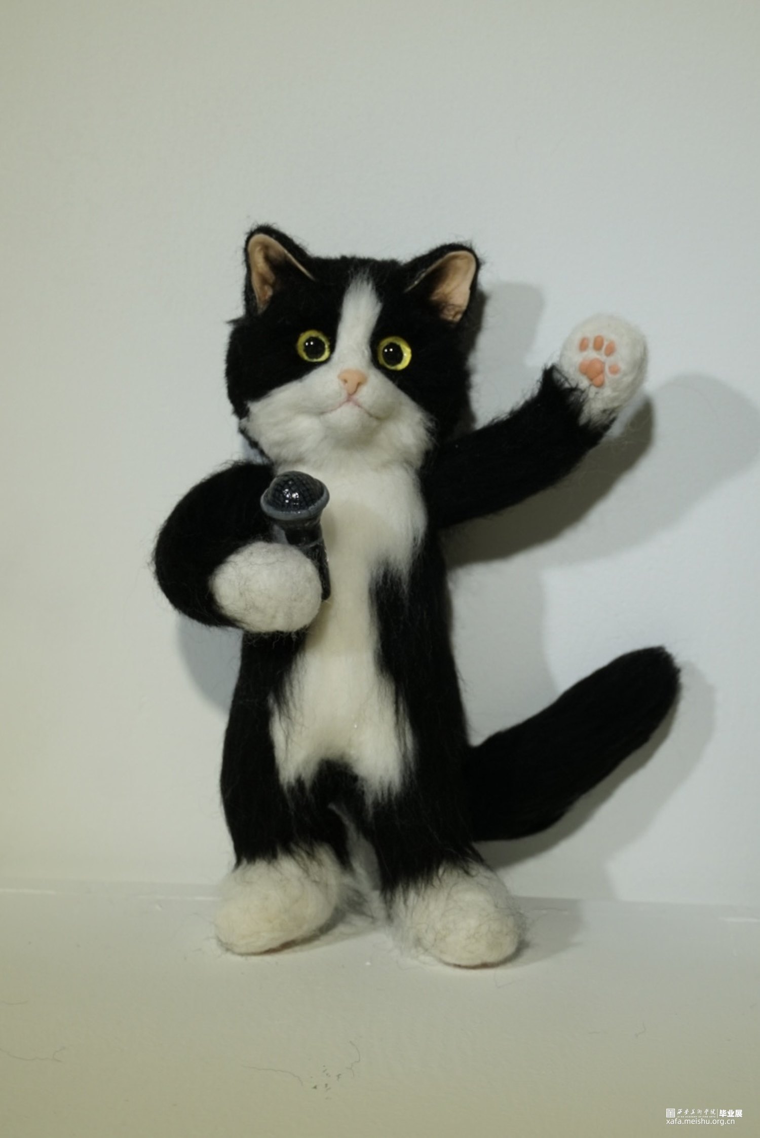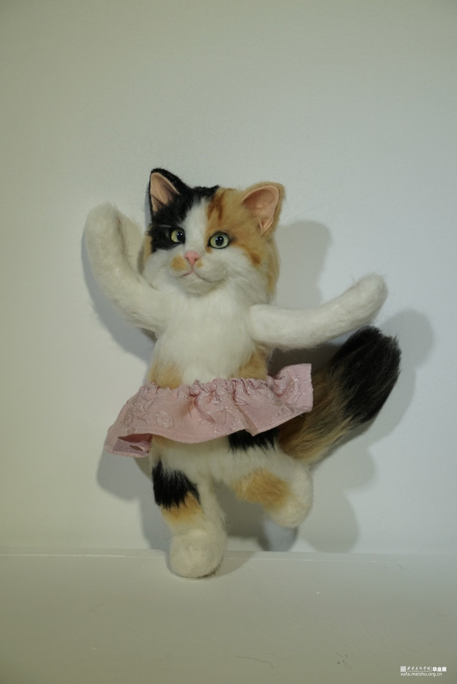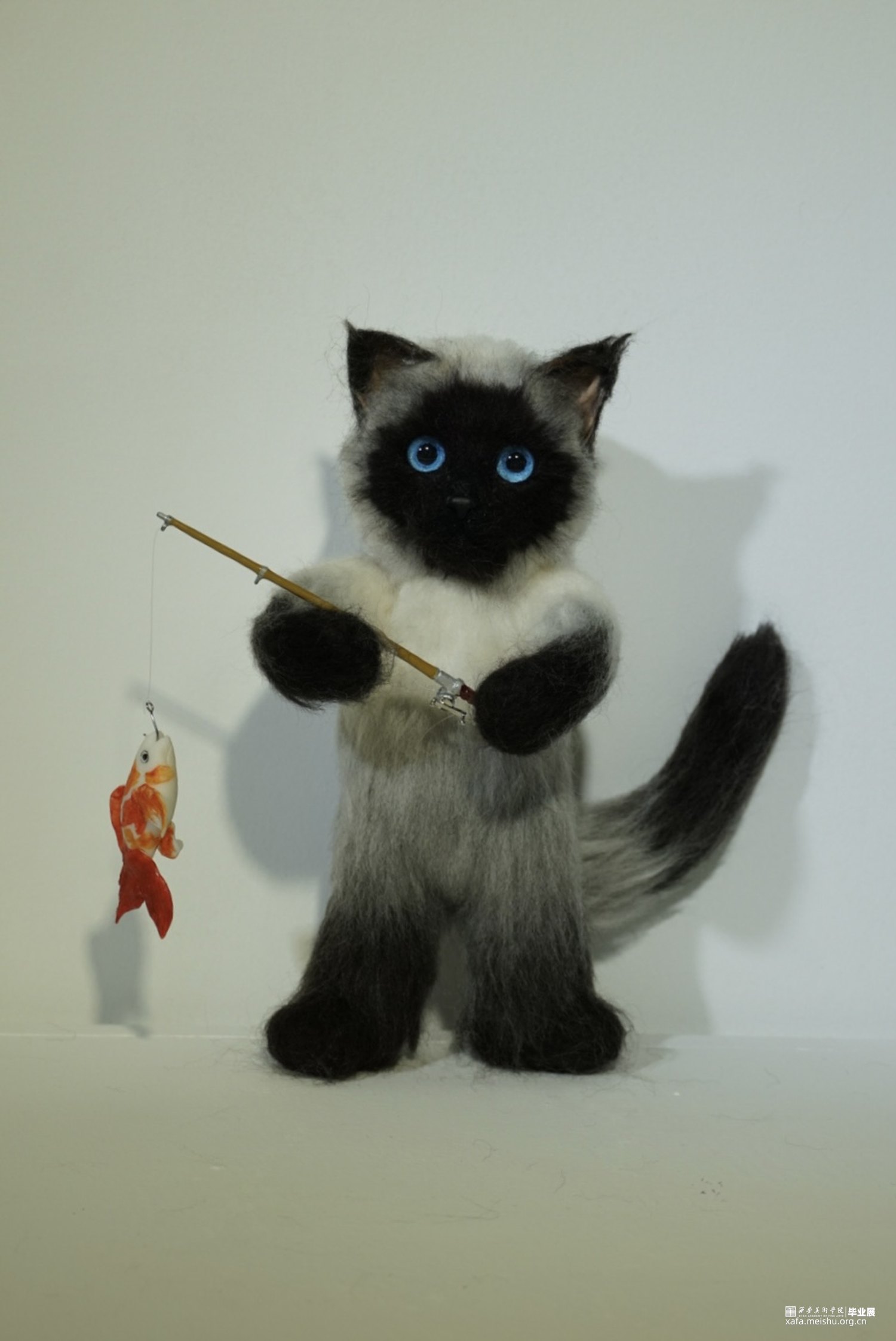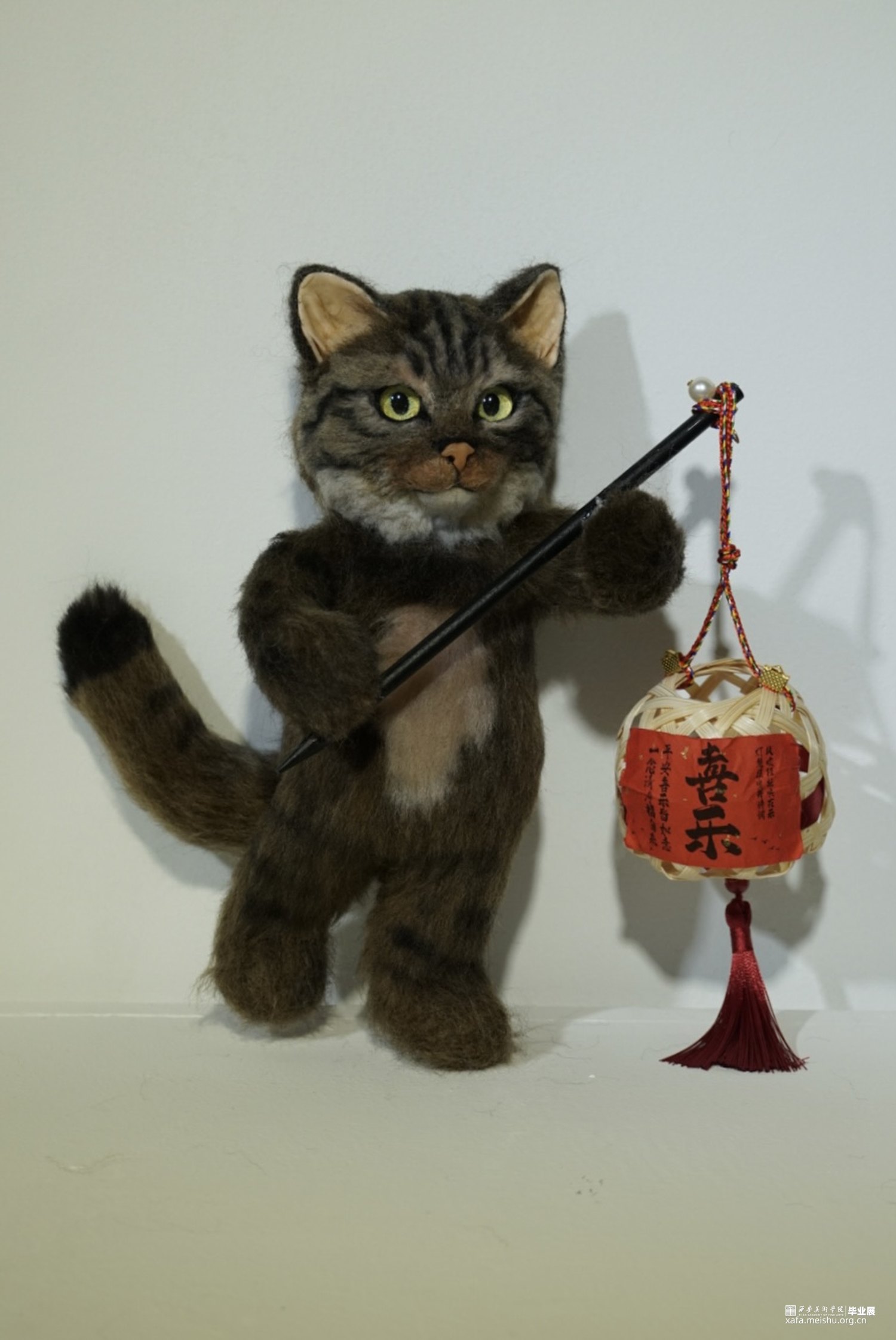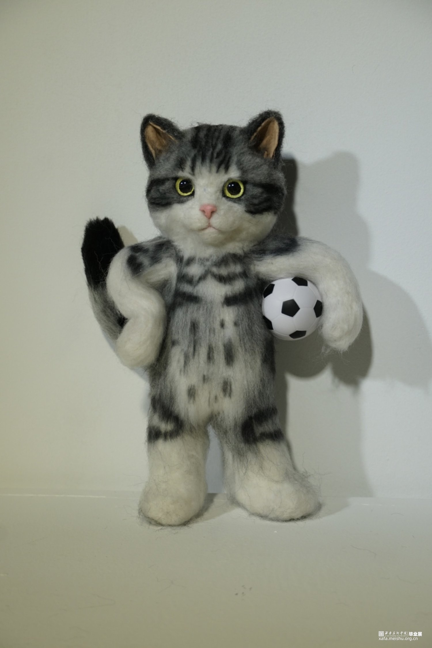 本创作通过针毡工艺的创作实践,探索传统技法与现代审美的结合,拓展工艺的应用领域和表现形式。在当代社会中,心理健康问题日益突显,如何通过非药物治疗手段提升个体的心理幸福指数成为一个热点问题。羊毛毡作为一种古老的手工艺品,因其柔软质地和温暖感觉,在情感表达和舒缓方面具有潜在优势。其手工艺制作过程不仅能够产生放松和治愈的效果,其成品也蕴含着一种舒缓情绪的潜力。近年来,手工艺与情感疗愈相结合的研究逐渐增多,但羊毛毡在此领域的研究尚不充分。因此, 本研究旨在探讨羊毛毡艺术在情感疗愈设计中的应用和效果。探索羊毛毡猫咪作品作为“情绪治愈药丸”的艺术表现和心理效应。