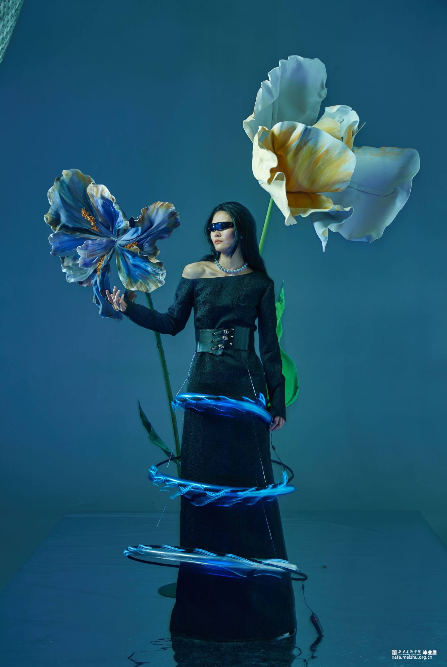 生物论的展现,不只在于动物的进化,同时也是时代的变化,从而带动科技发展,又由科技衍生到服装之中,二者相辅相成。对未来科技的突破进行内容研究。从材料上,视觉上入手。通过服装回味复古,创造前卫。作品将过去、现在和未来三者融合,给人以全新的视觉感受。该设计风格也反映了早期艺术家对未来的构想,如同现实的平行时空一般。