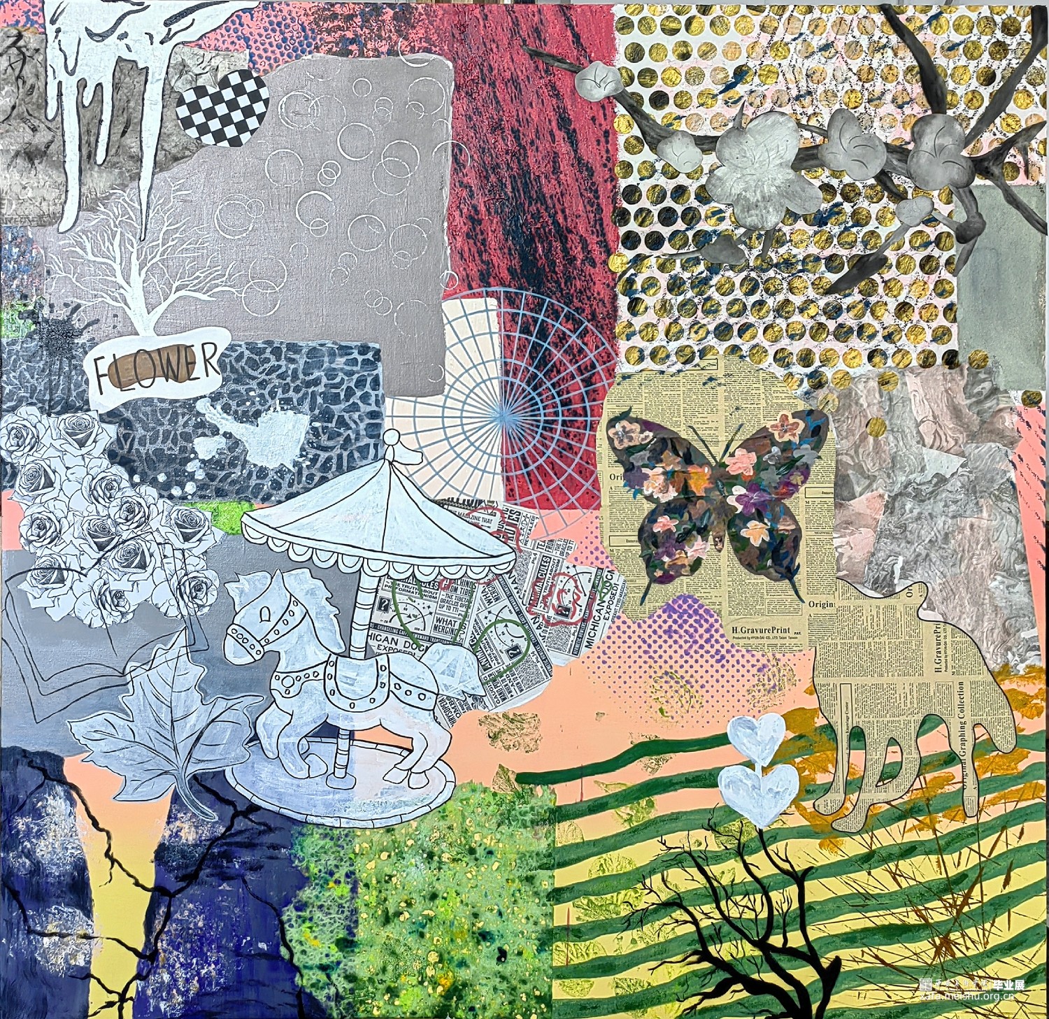 那古老的木马仿佛承载着无尽的梦幻与数不清的回忆。它那极为精致的轮廓以及斑斓的色彩,与画面中那颗尽显沧桑的枯树形成了极为鲜明的对比。枯树虽然已经失去了蓬勃的生机,然而却以其独一无二的姿态在悠悠地诉说着悠悠岁月沉淀下来的时间故事,美丽的蝴蝶在这充满奇妙氛围的场景中自由自在地翩翩起舞,它那轻盈的身姿与灵动的姿态为整个画面源源不断地注入了蓬勃的活力与盎然的生机。木马所蕴含的浪漫气息,枯树所体现的深沉韵味,树枝所展露的随性风格以及蝴蝶所彰显的自由之态,共同构建出了一个满是奇幻色彩和无比深邃情感的独特世界。在这里,时光仿佛真的能够流转一般,过去的岁月与未来的憧憬相互交织在一起,形成了一种动人心弦的美妙情景。