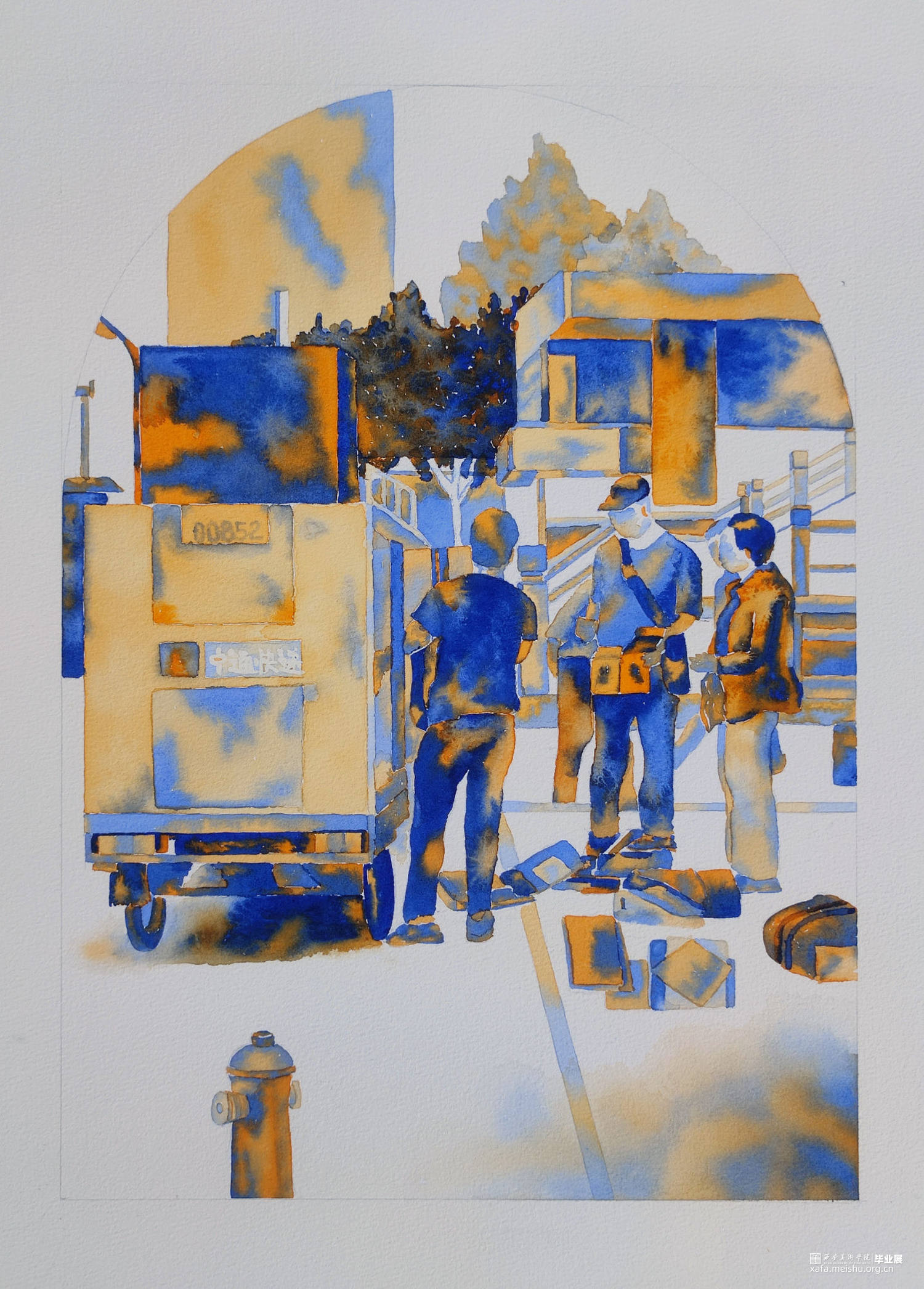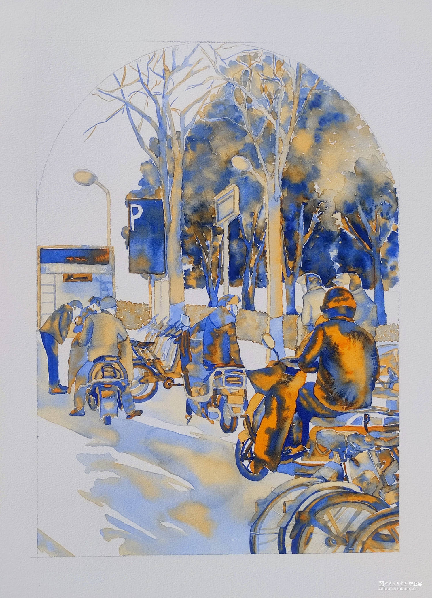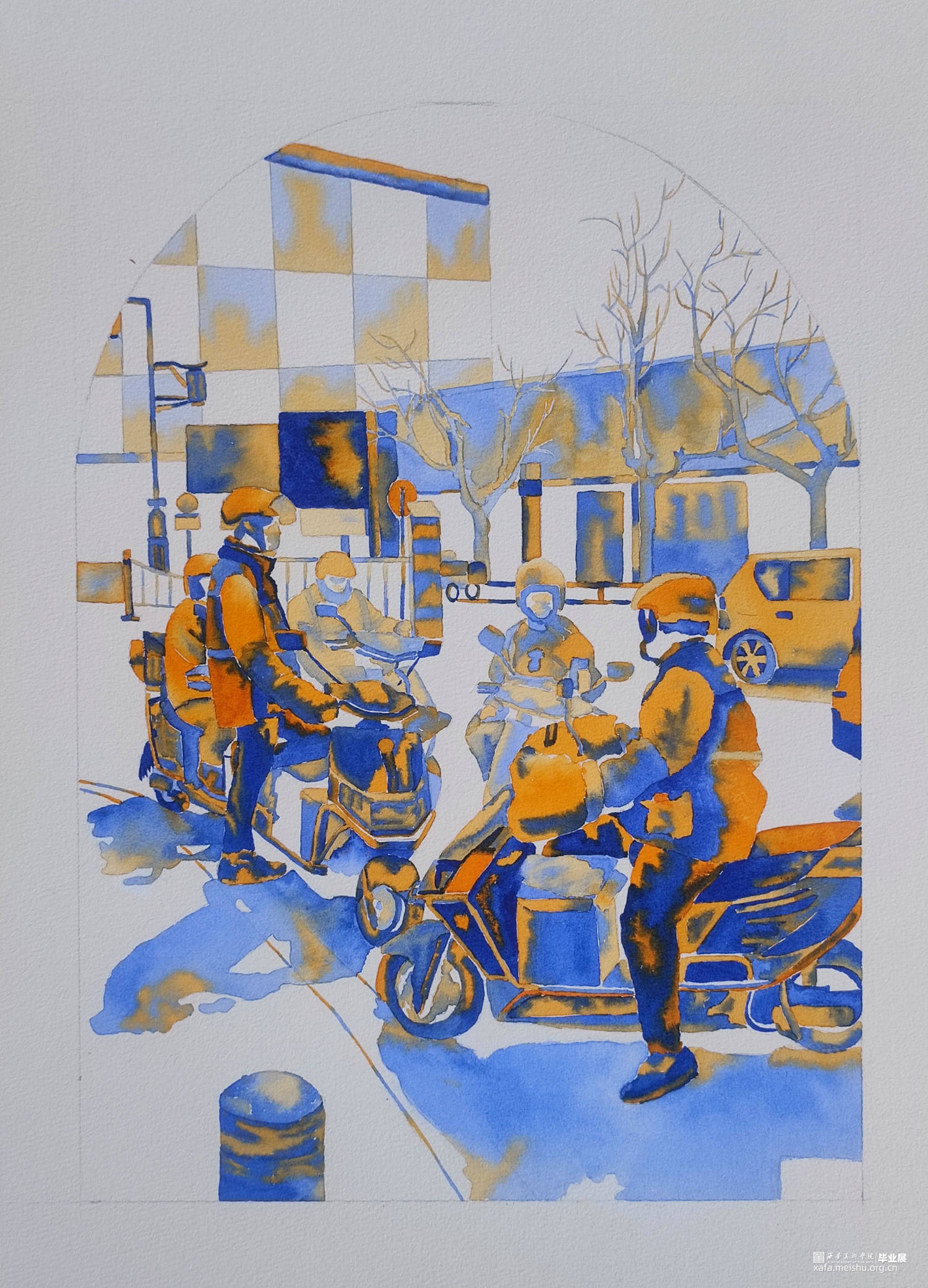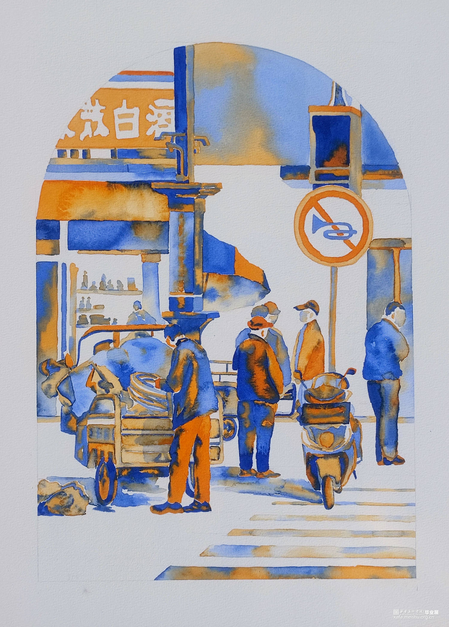 这是一组捕捉城市节奏的作品,展现街头巷尾人们生活的多样面貌。我采用鲜明的色彩对比,运用蓝色与橙色的交织构成视觉上的冲击,寓意生活中的冷暖交替与和谐共存。每一幅画面都是对平凡瞬间的艺术升华,邀请观者感受生活的韵律,体会人生的多彩。 高耸的大楼,匆匆的人群,我们追逐着时间,却发现忽略了自己的节奏。在这个快速变化的世界里,我们更需要一颗平静的心,找寻自己的节奏…