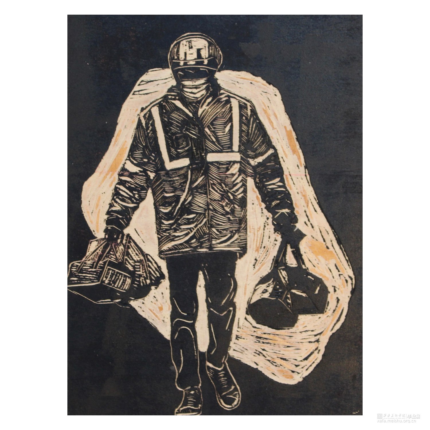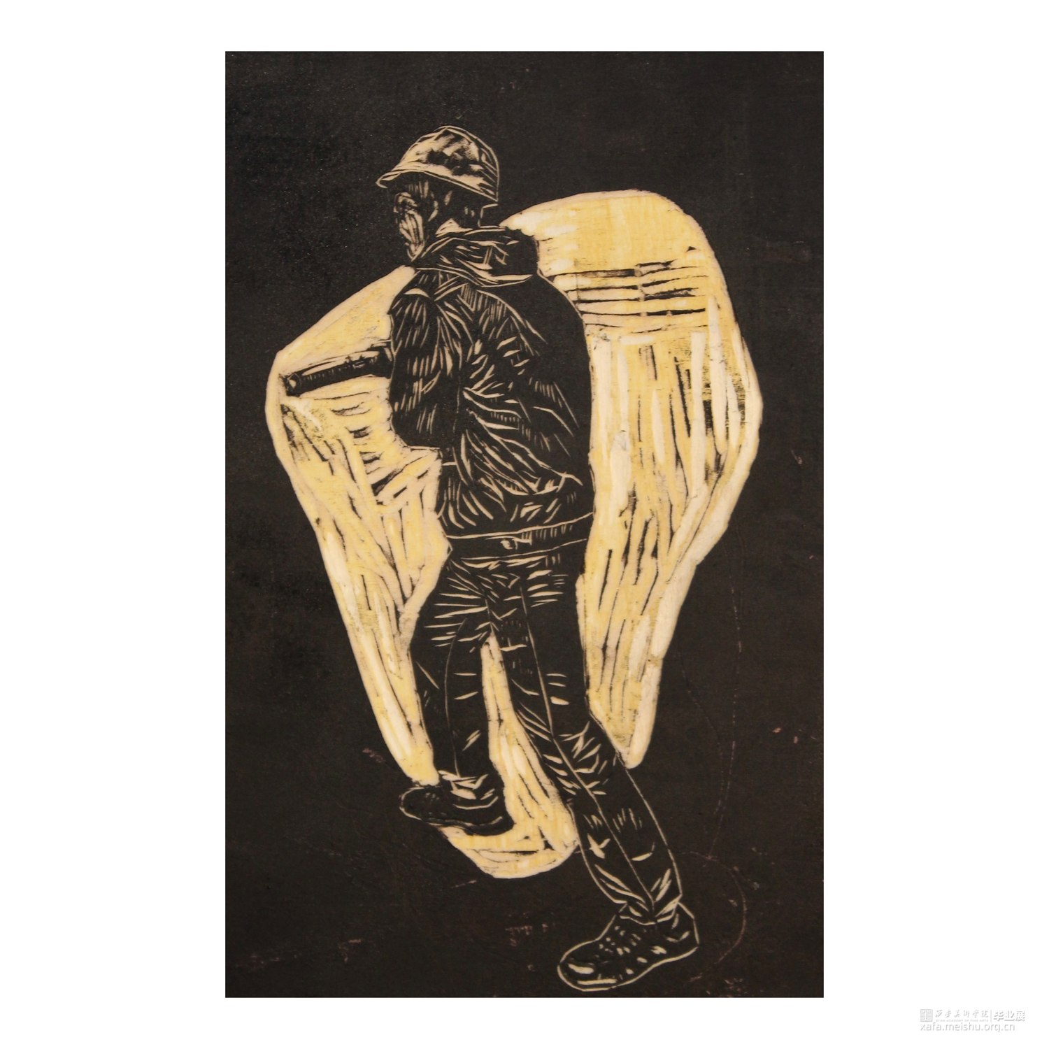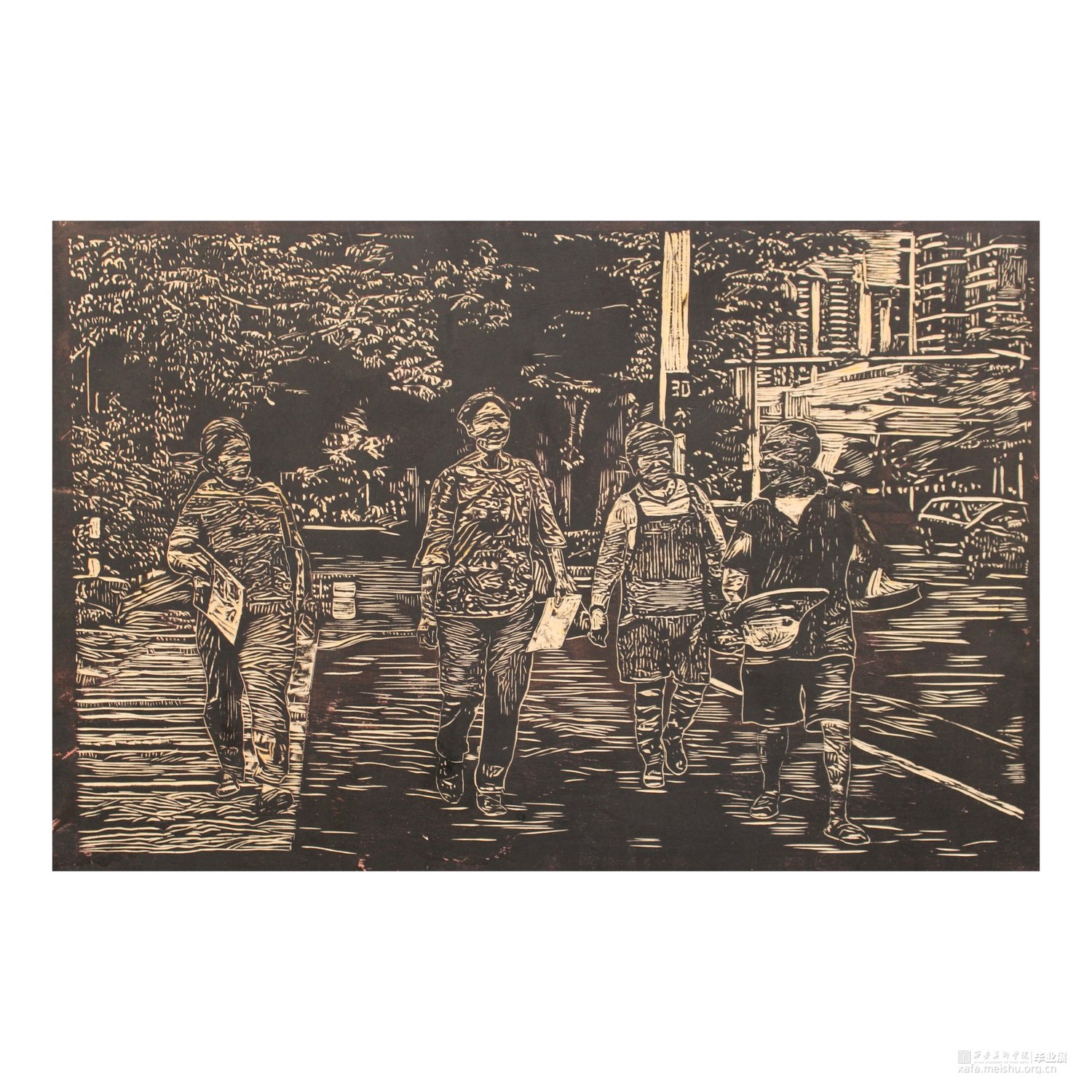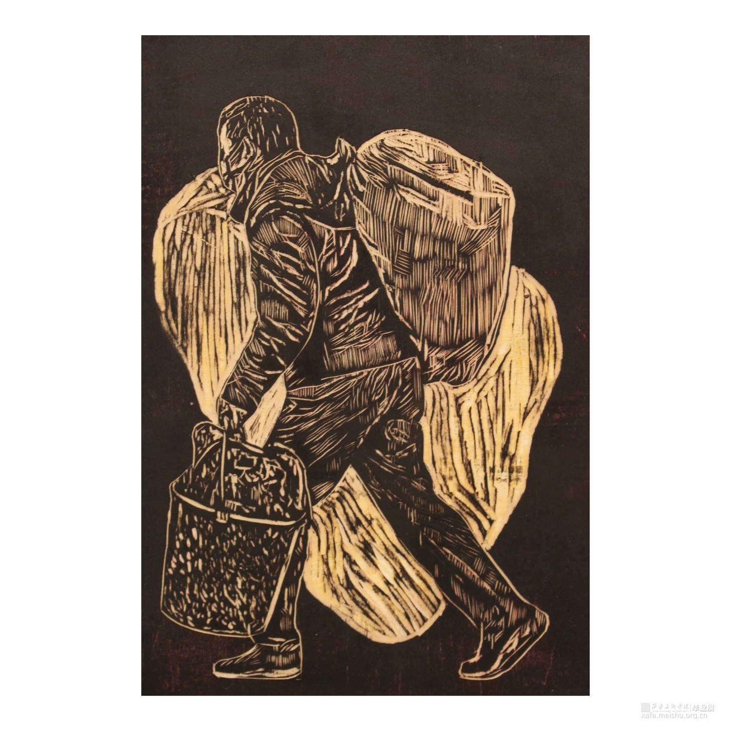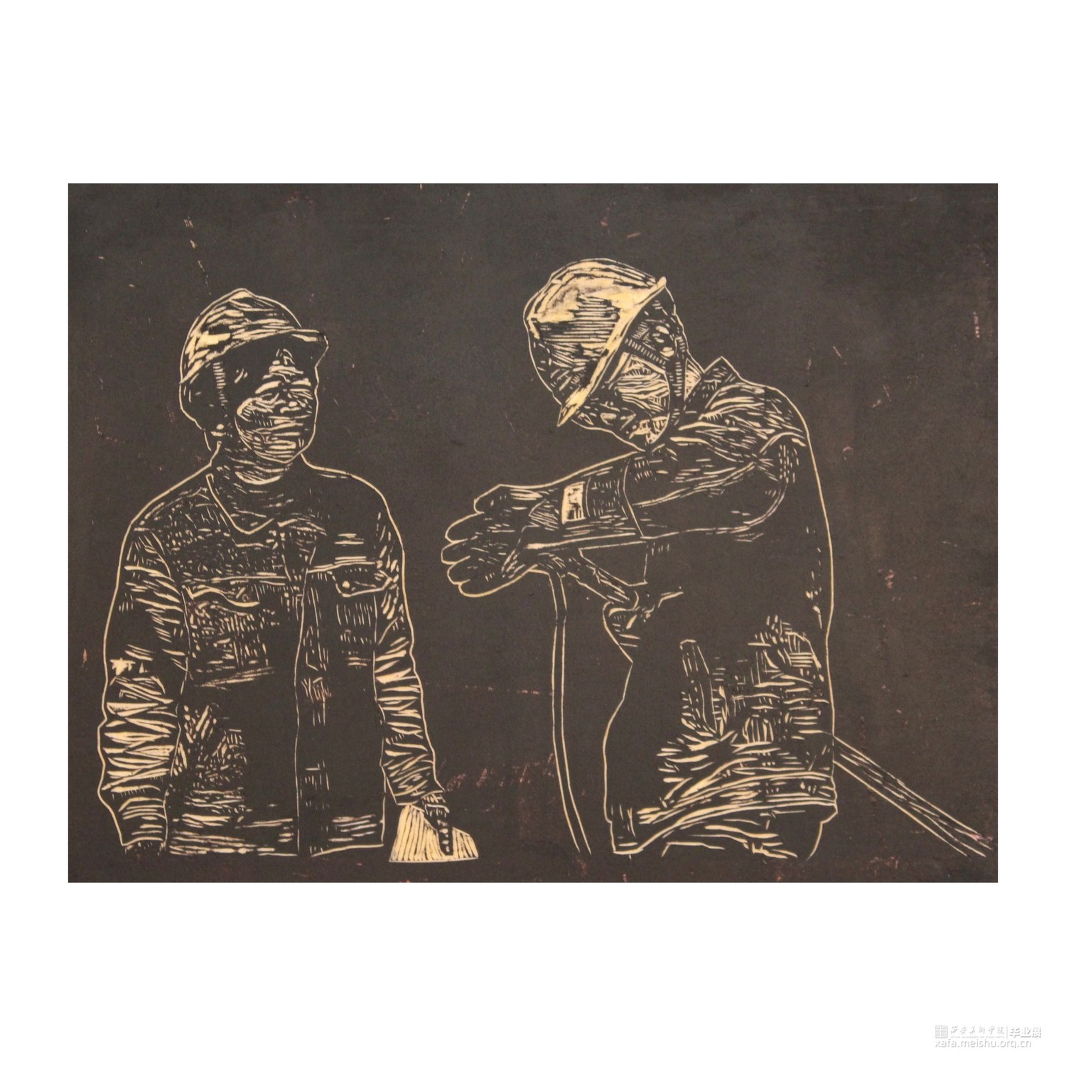 作品为十九幅木刻版画,总尺寸为110×150。作品素材来自于街拍环卫工人、建筑工人、路边商贩等等。