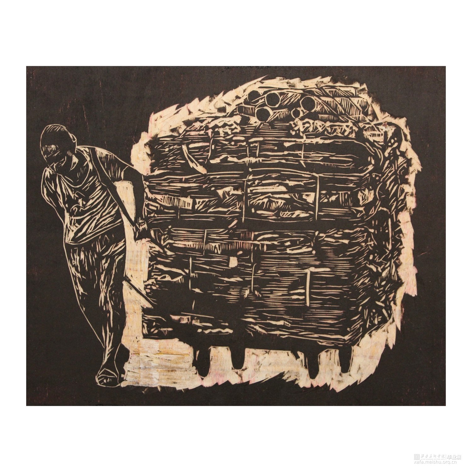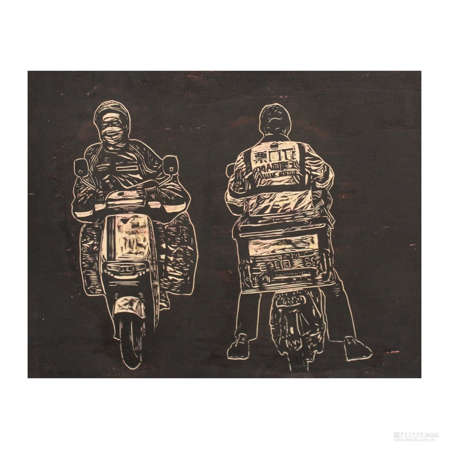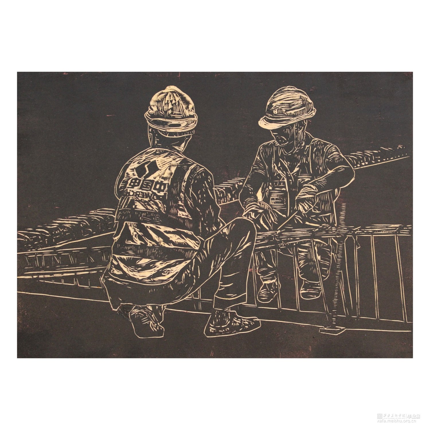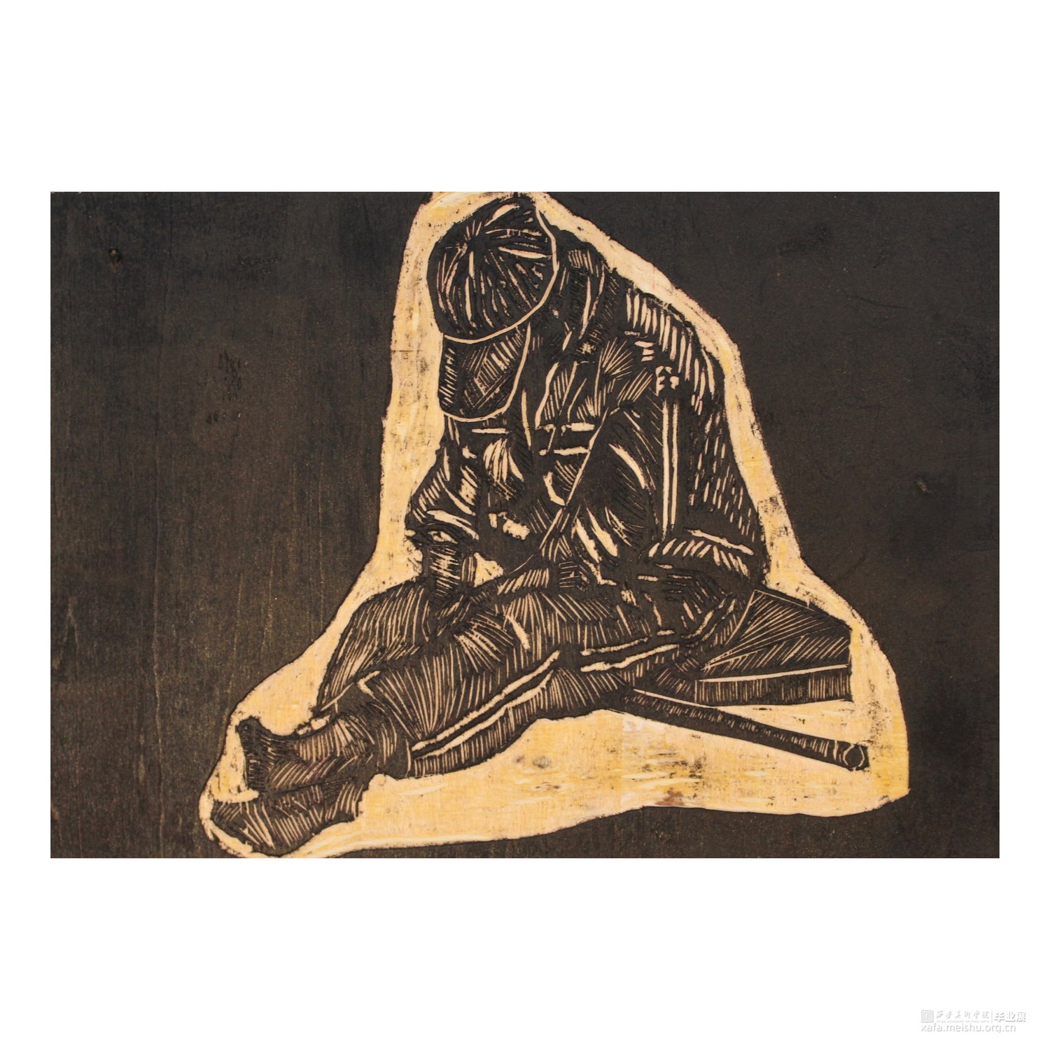 作品为十九幅木刻版画,总尺寸为110×150。作品素材来自于街拍环卫工人、建筑工人、路边商贩等等。