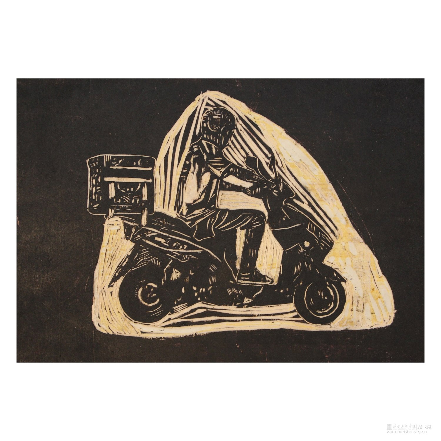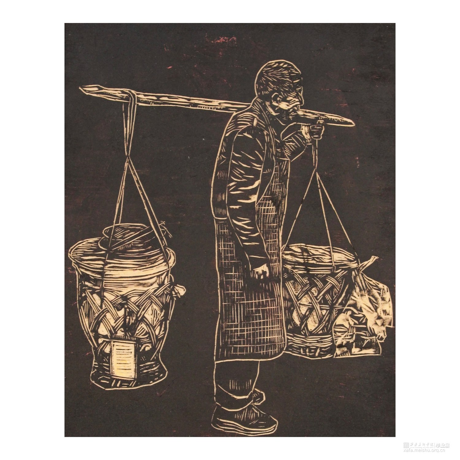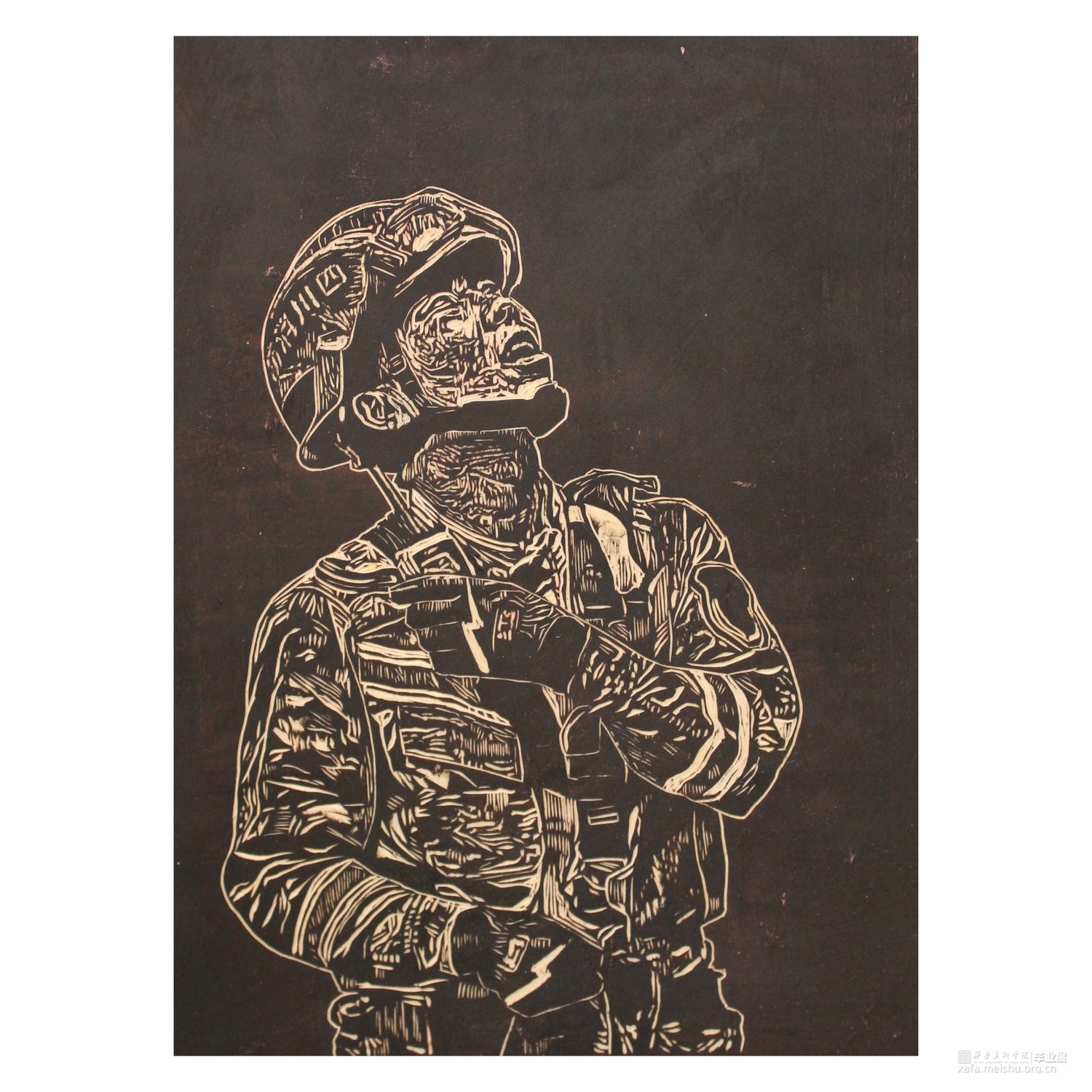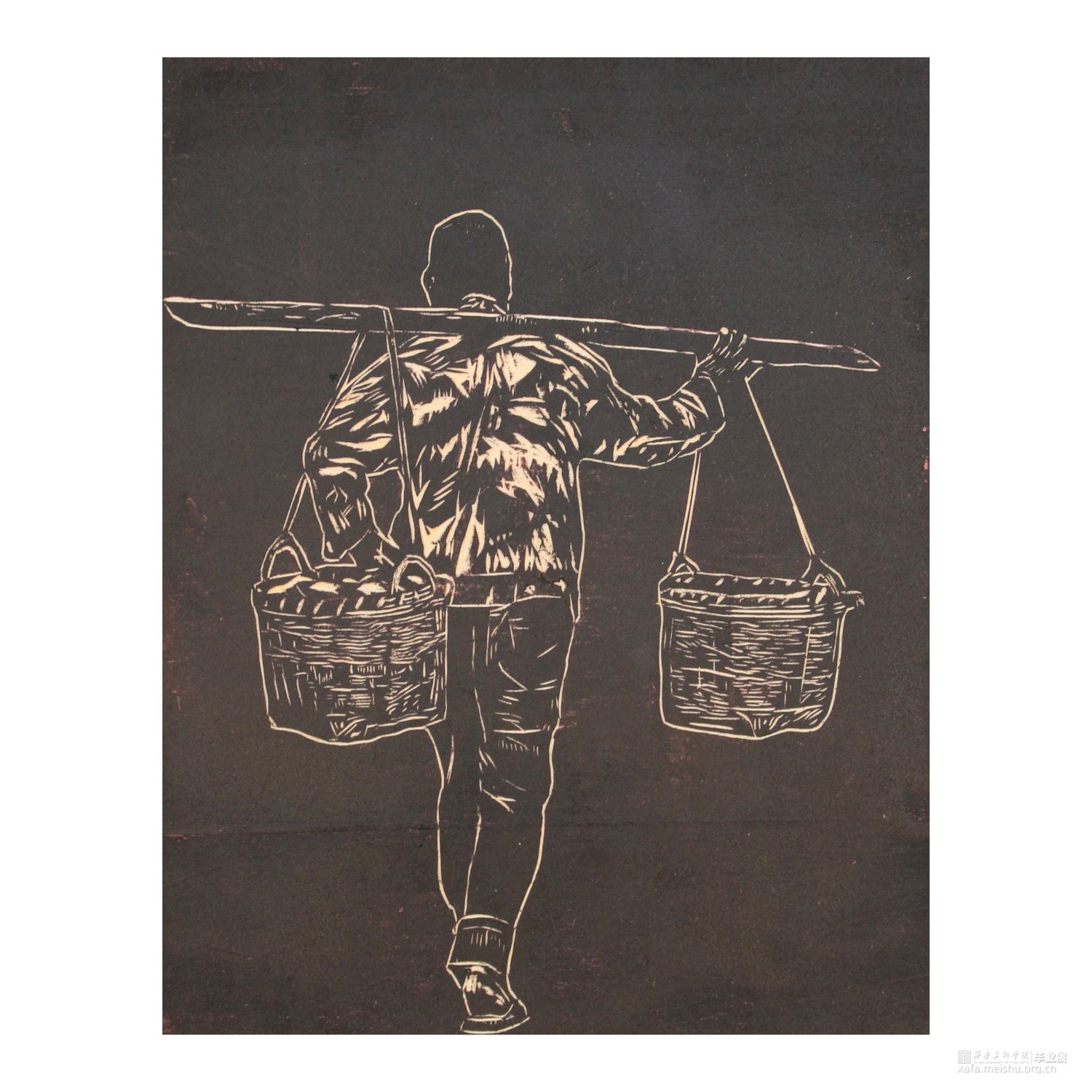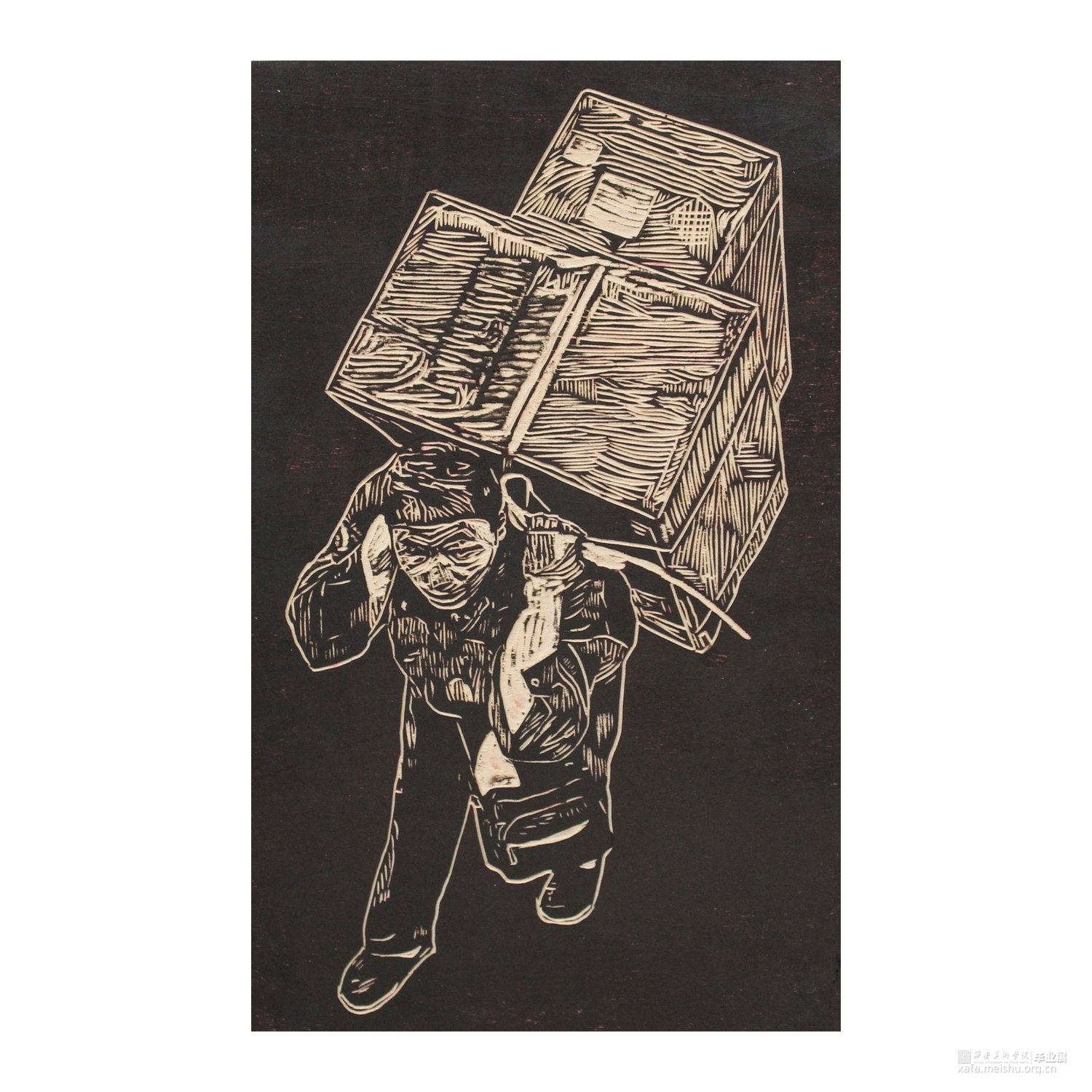 作品为十九幅木刻版画,总尺寸为110×150。作品素材来自于街拍环卫工人、建筑工人、路边商贩等等。