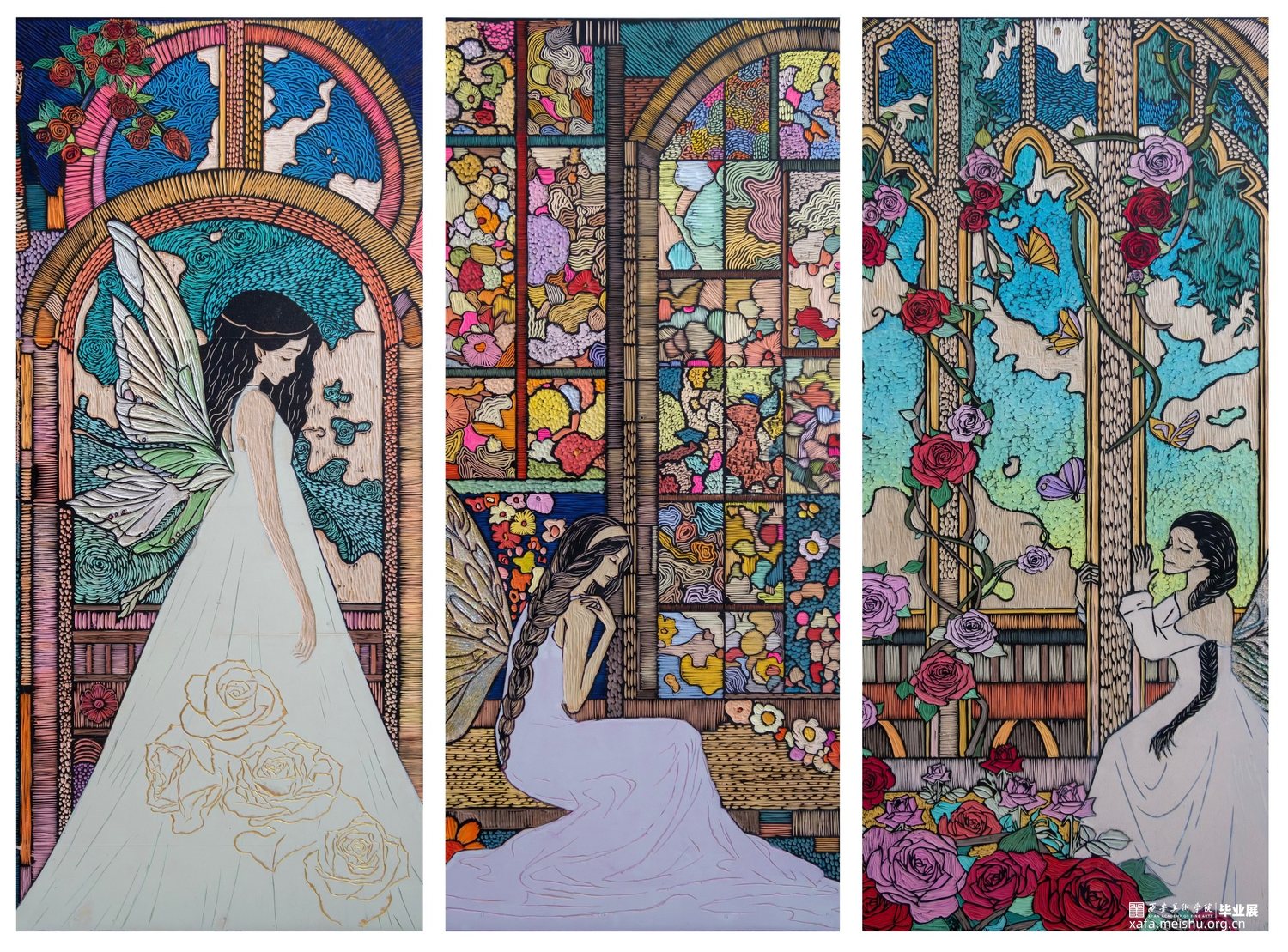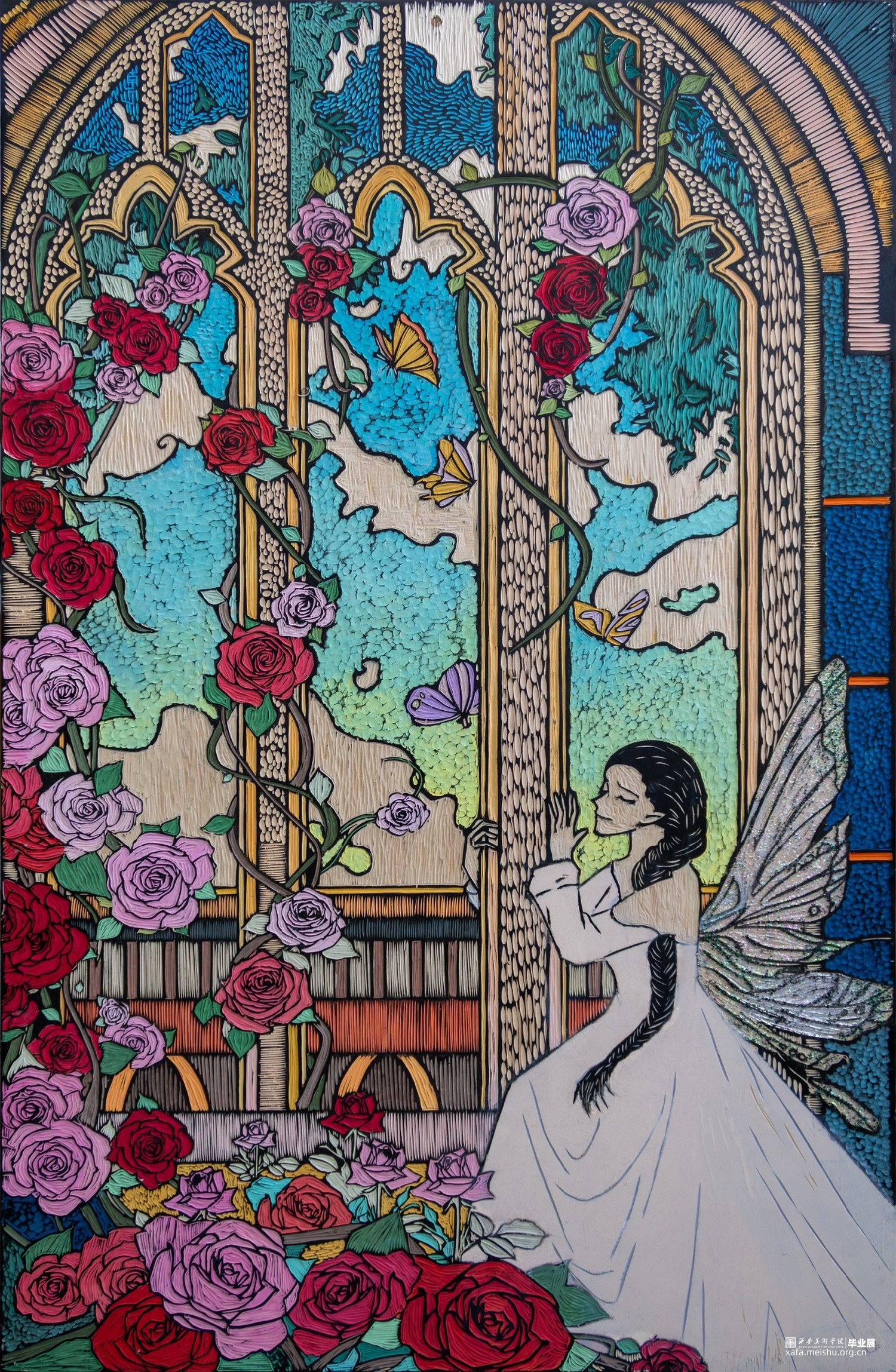 精灵们在窗边停驻,那里四季如春,她们将桎梏的灵魂打碎,就像月亮盛满鸢尾,常春藤上开满玫瑰,精灵们将内心溢满五彩斑斓的余晖,天色未明穿上五颜六色的衣裳翩翩起舞。