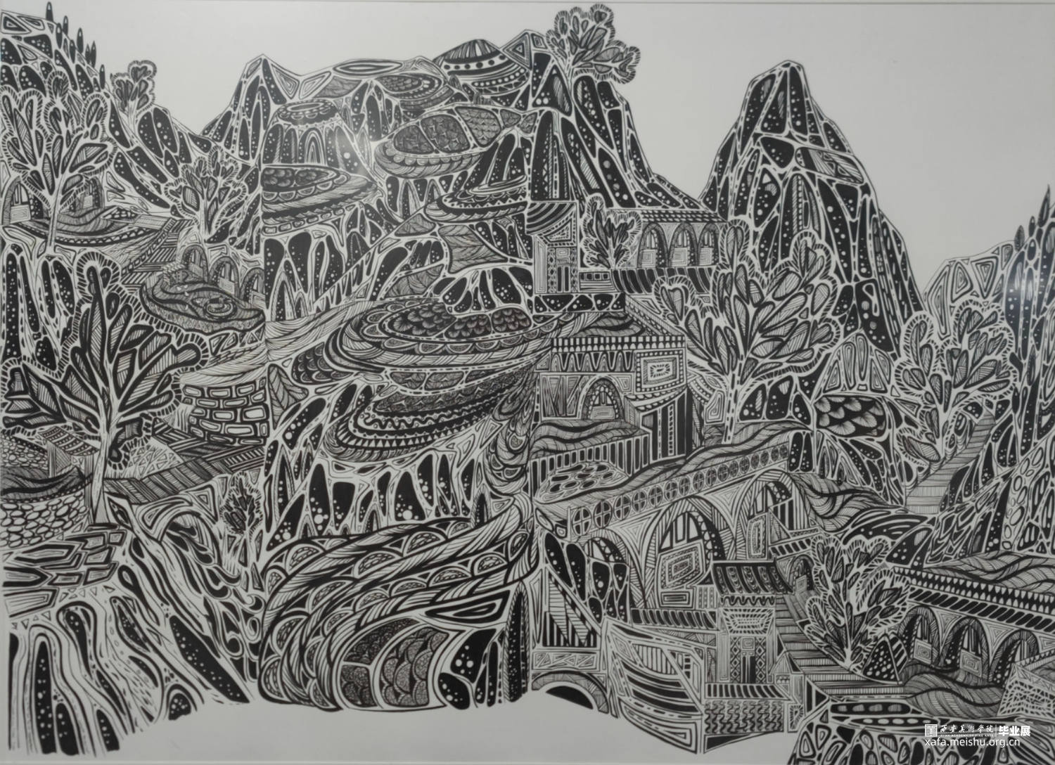 本作品名为《黄土塬回忆》,长 110cm宽 79cm,创作时间为4.15~5.23,本作品运用装饰性手法,捕捉并呈现了黄土高原的独特风貌。画面以巍峨的山势为主轴,淋漓尽致地凸显了陕北特有的地势地貌,仿佛能让读者感受到那厚重的黄土气息。点缀其间的窑洞,如同历史的印记,述说着这片土地的故事。树木的衬托更是增添了一抹生机,使画面更加生动。这幅作品巧妙地捕捉了陕北的主要特征,让人仿佛置身于那片神奇的土地之中。 两幅系列作品分别取自城市公园与陕北风景,长45cm宽26cm,希望此作品能给你们不一样的感受。