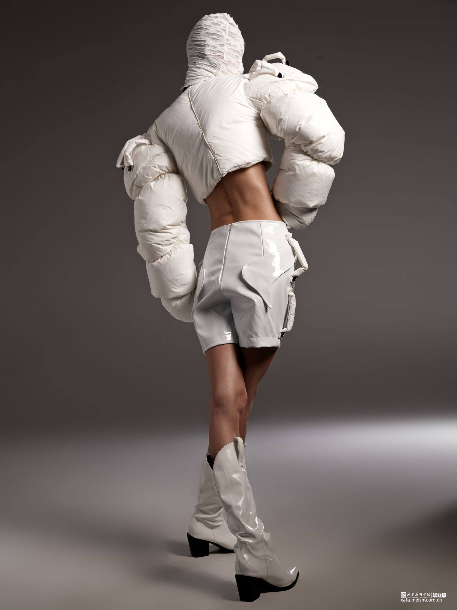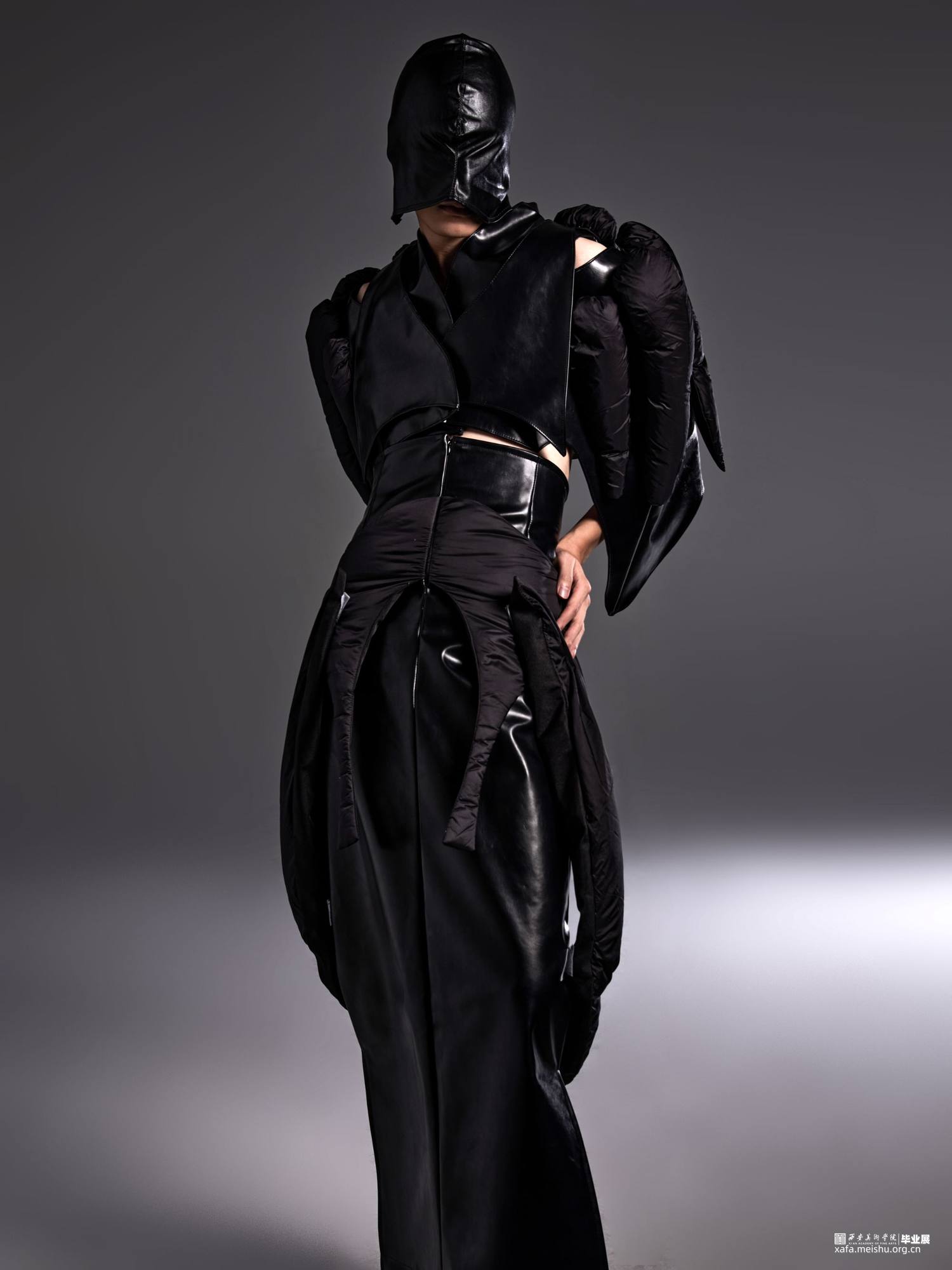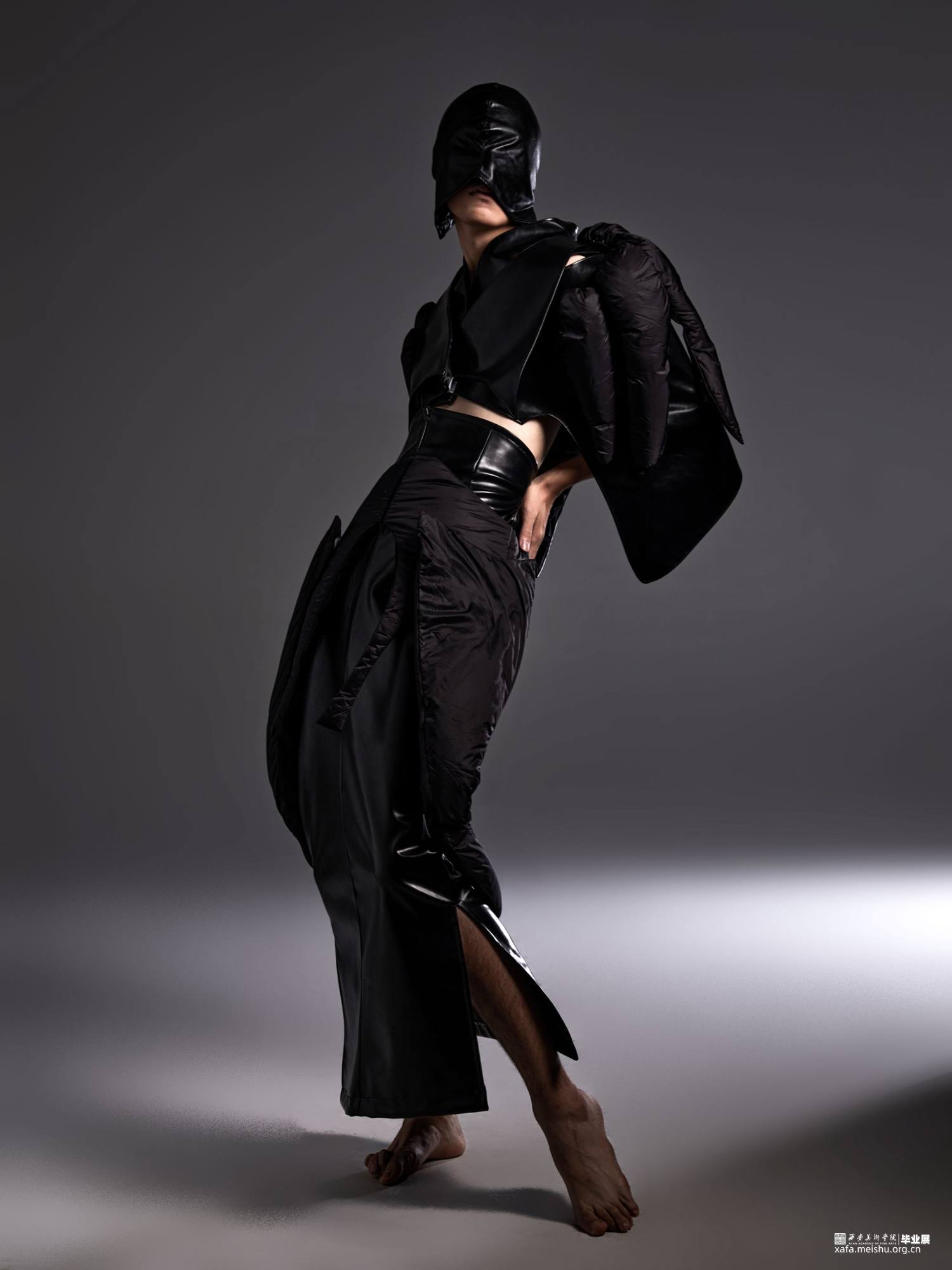 隐射系列 以线性轮廓为主手法,采用皮革与尼龙膨胀面料。营造张扬而隐秘的视觉体验;对于自我的思考的具象呈现,旨意人群从焦虑,矛盾,悲观的精神束缚中解脱,保持强烈的自我尊重,自我肯定;热爱自我,从独立的思考中得出属于自己的结论。