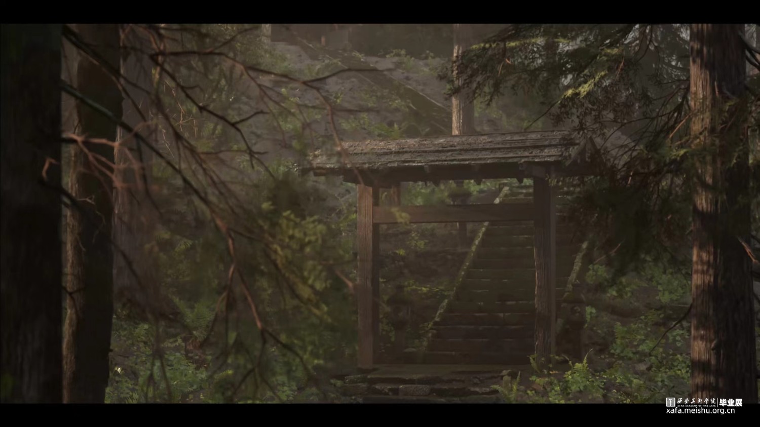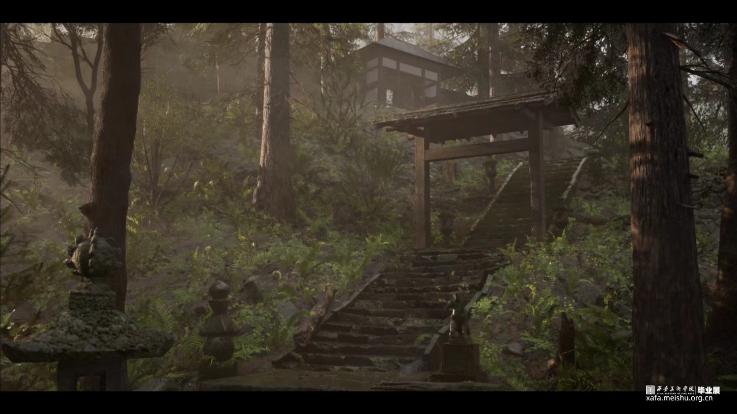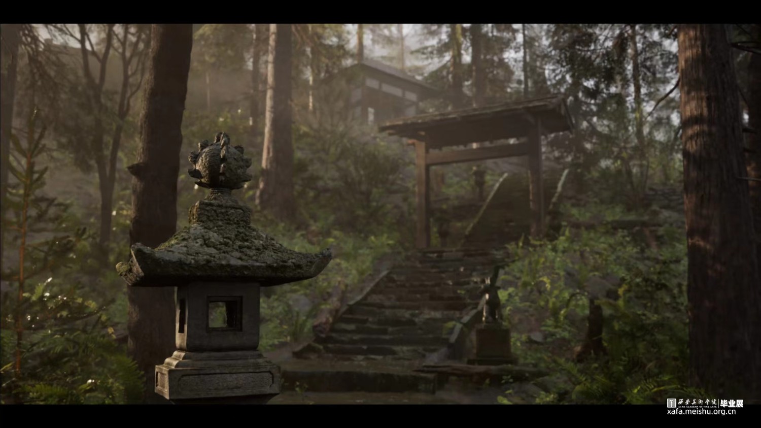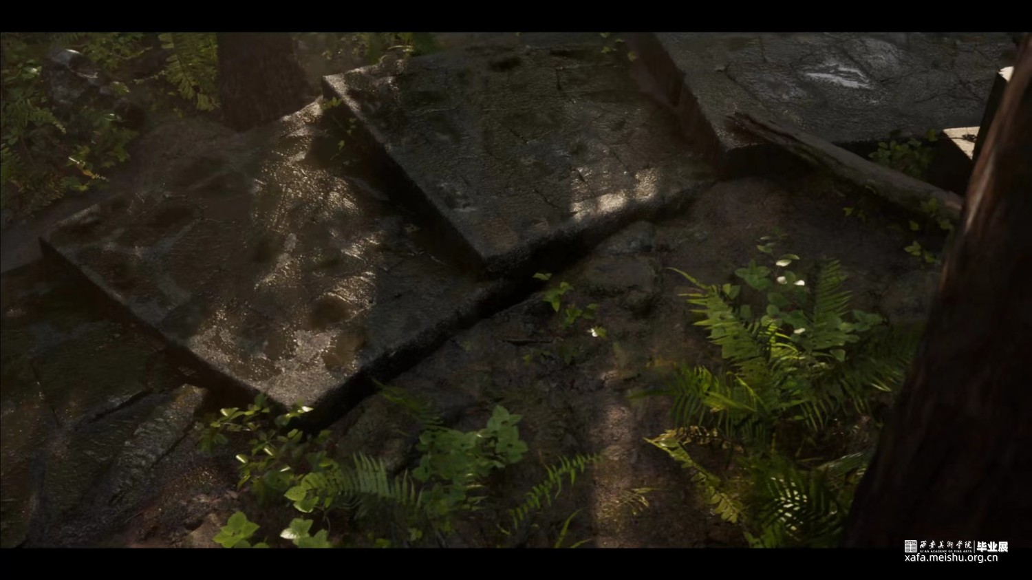 在创作《夕照》这样的写实渲染场景时,我从多个角度来构思和实现。结合已有的技术和艺术表现技巧,旨在构建一个既富有诗意又高度真实的夕照场景:积水反射的微光、苔藓覆盖的石阶、雾气缭绕的树木,每一个细节都在讲述着自己的故事,这些内容共同构建了一个充满生命力和历史感的场景,让观者仿佛置身于那一刻的自然之美之中。