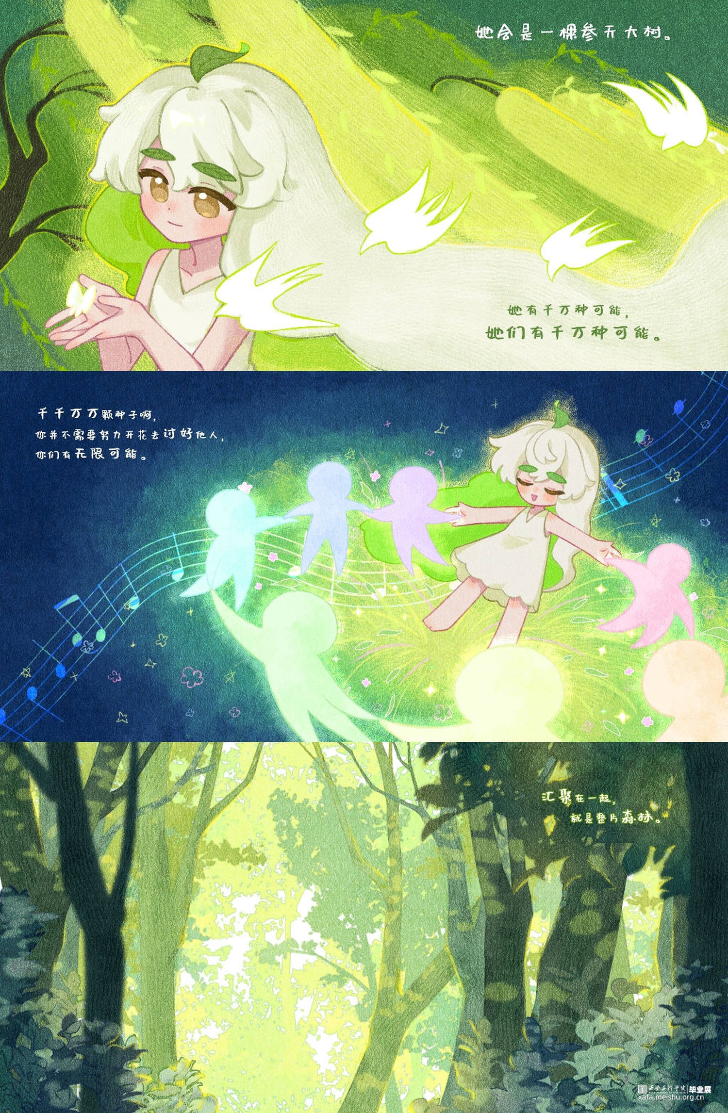 每个人都是一粒“种子”,未来充满未知。“种子”要成长为何种模样呢?“花”的色彩或淡雅或艳丽,总是受人喜爱的,而“种子”一定要成长为“花”讨他人欢心吗?世间植物不只一种,种子不仅可以生长为花,也可以是一棵参天大树。希望每一粒“种子”都能成为自己像要成为的样子,不困于他人的目光下,遵循自己的内心生长。