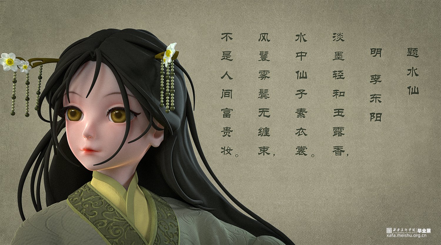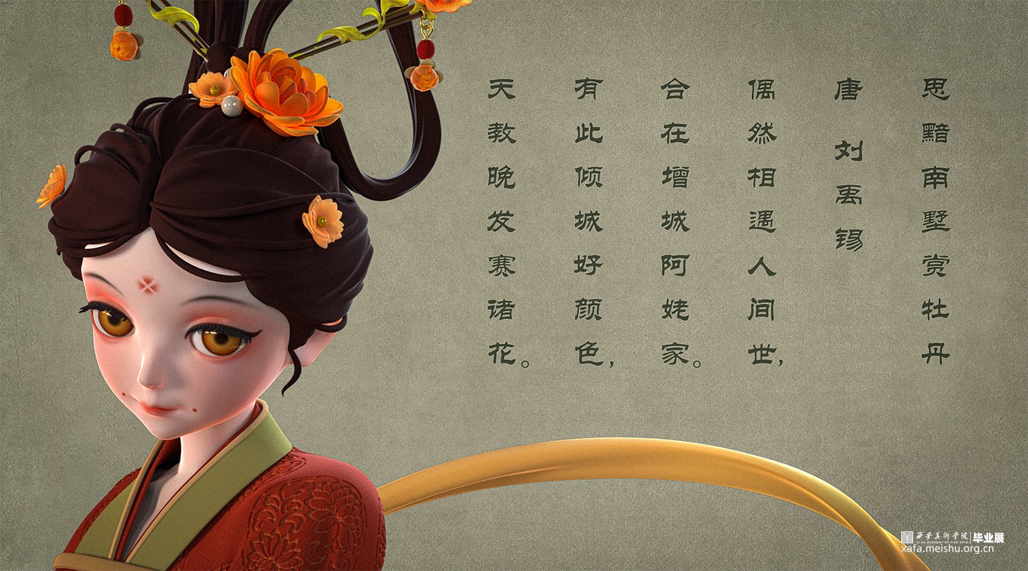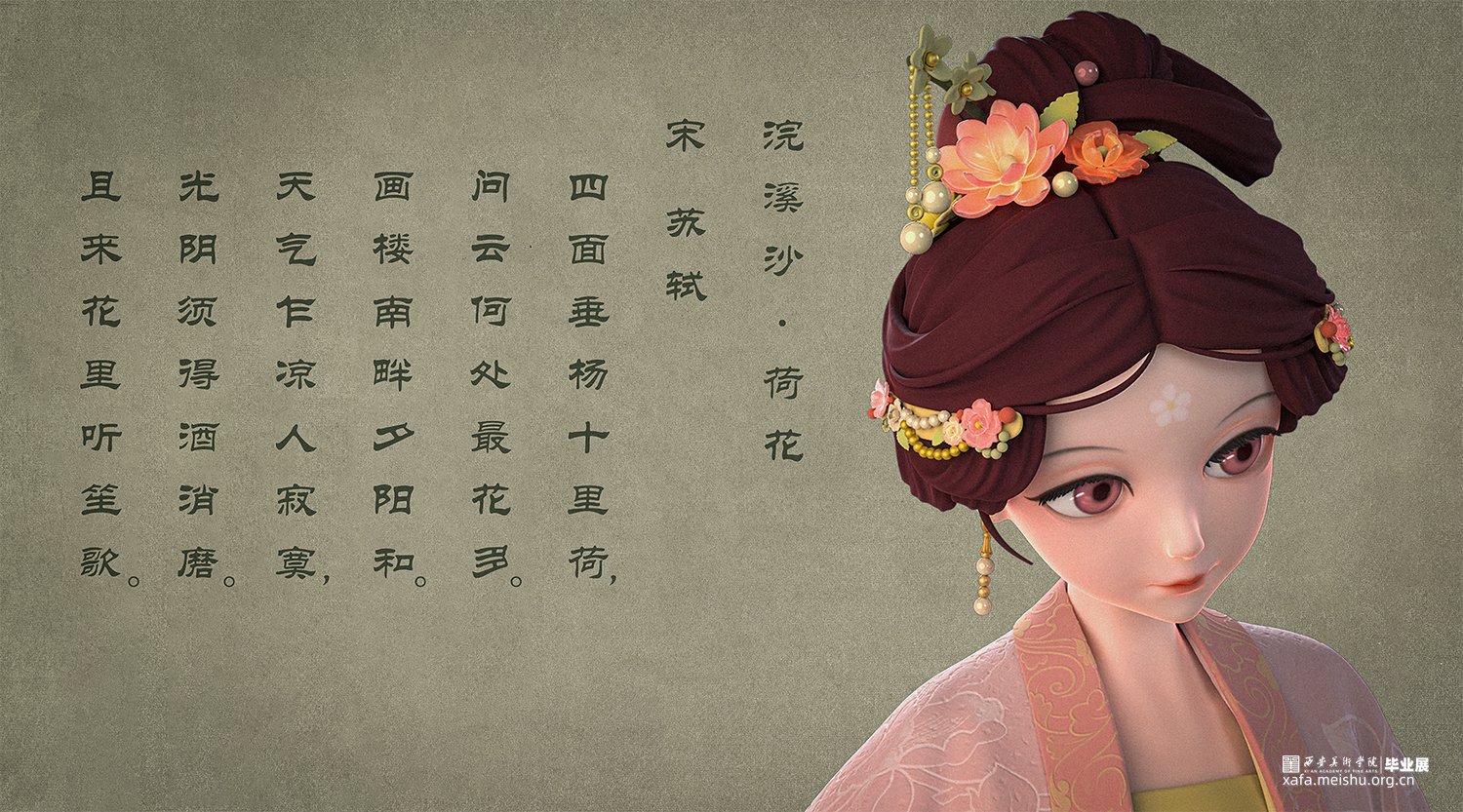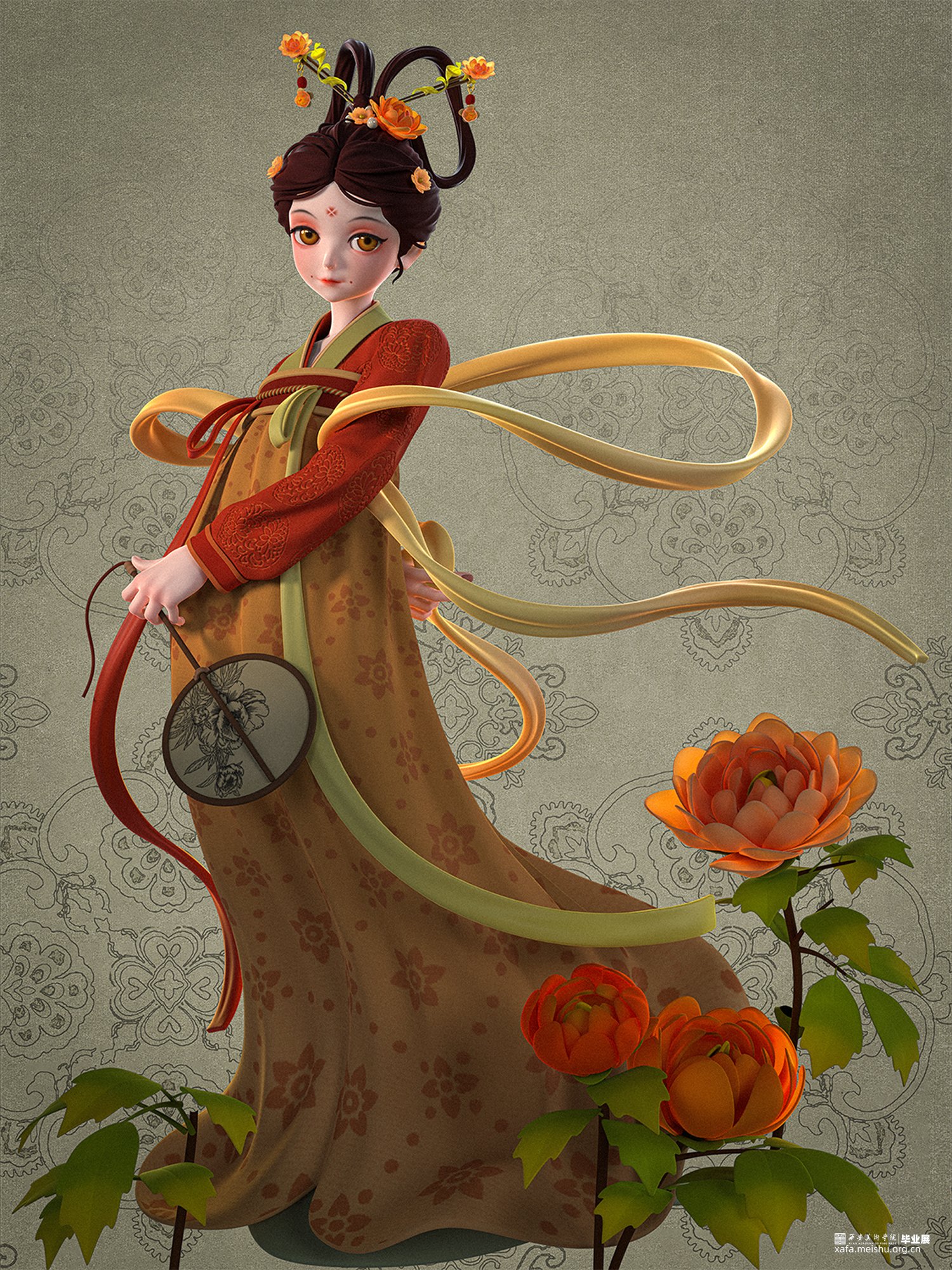 以四季对应的四种花融入古风元素设计制作系列角色,春天的迎春花、夏天的荷花、秋天的牡丹、冬天的水仙花,分别加入清代、宋代、唐代、汉代的服饰元素与纹样图案。