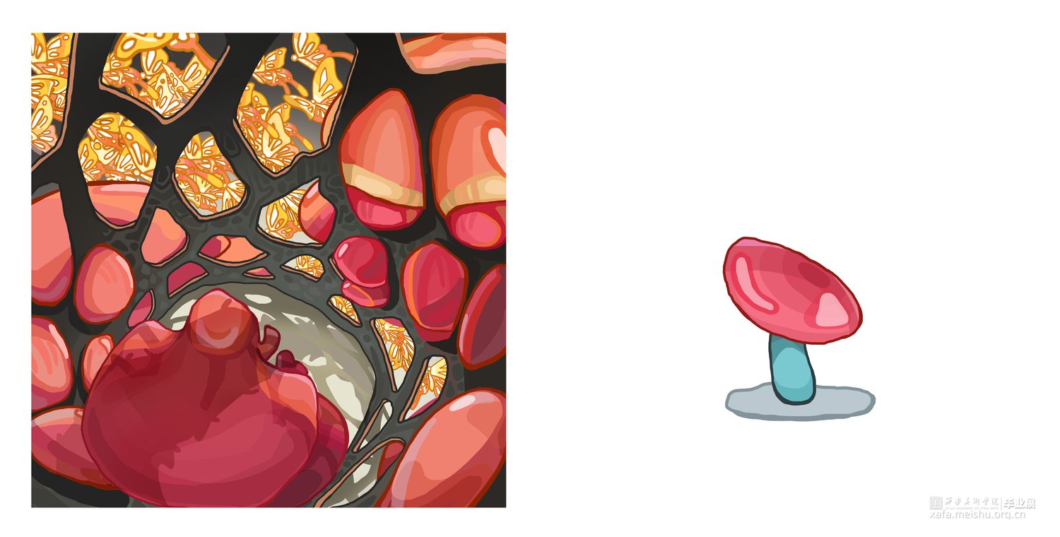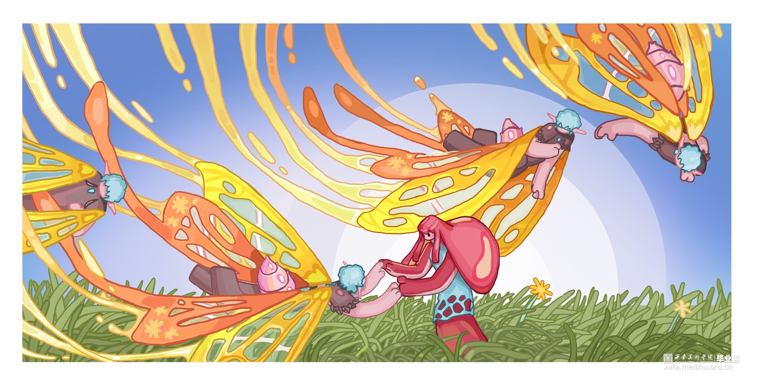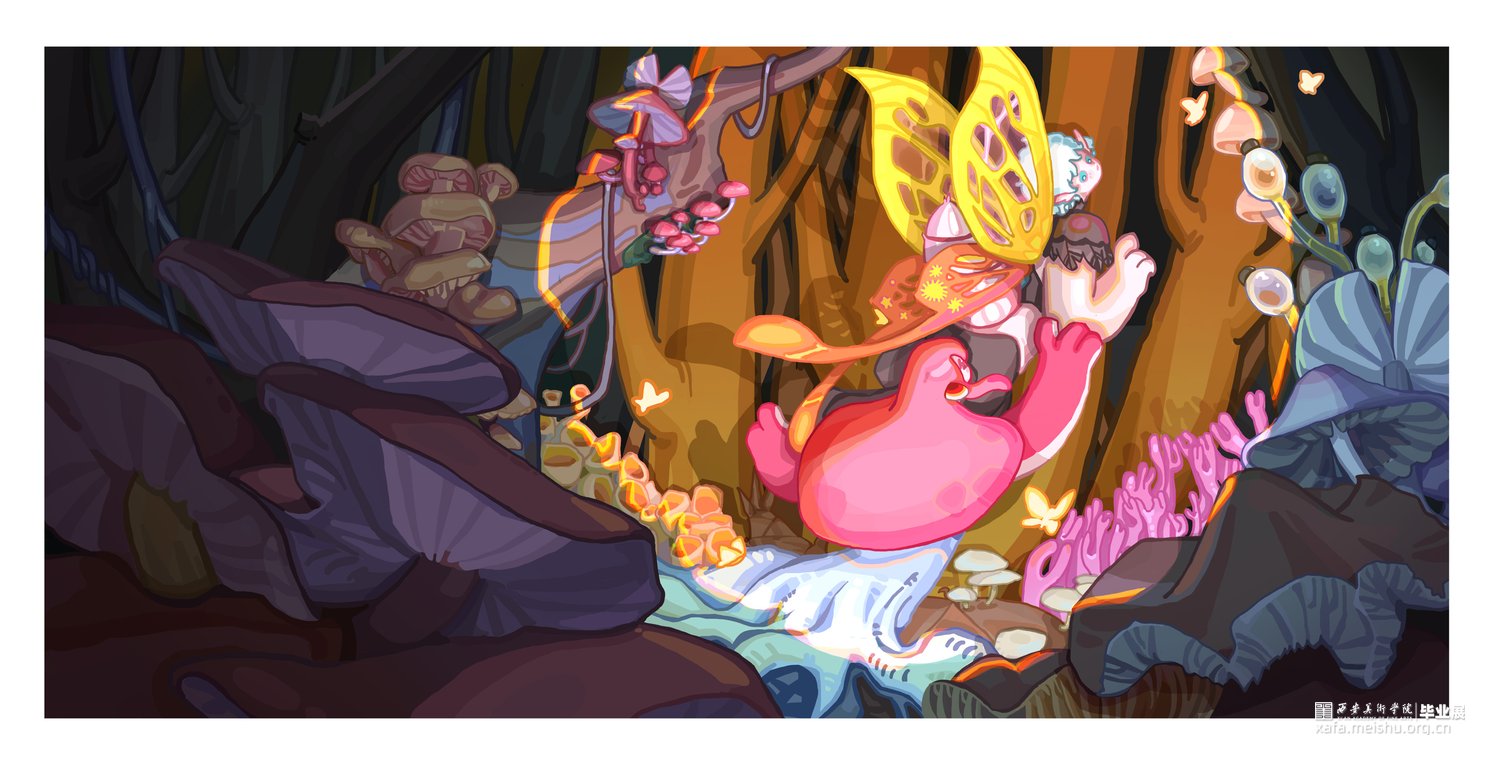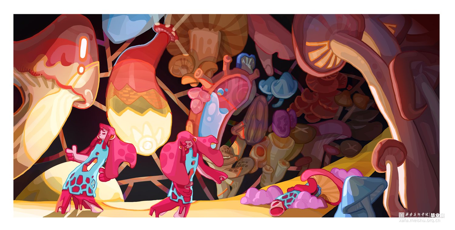 从黑暗里生长出一个小蘑菇,小蘑菇遇见蝴蝶,与蝴蝶嬉戏,幻想着与蝴蝶一起离开,可是,小蘑菇还是被束缚在原地,小蘑菇挣扎后消亡,在最后小蘑菇以另一种形态飞向天空,和蝴蝶一起。