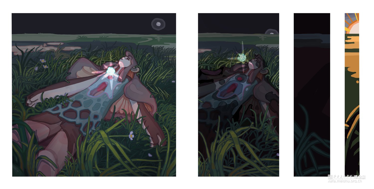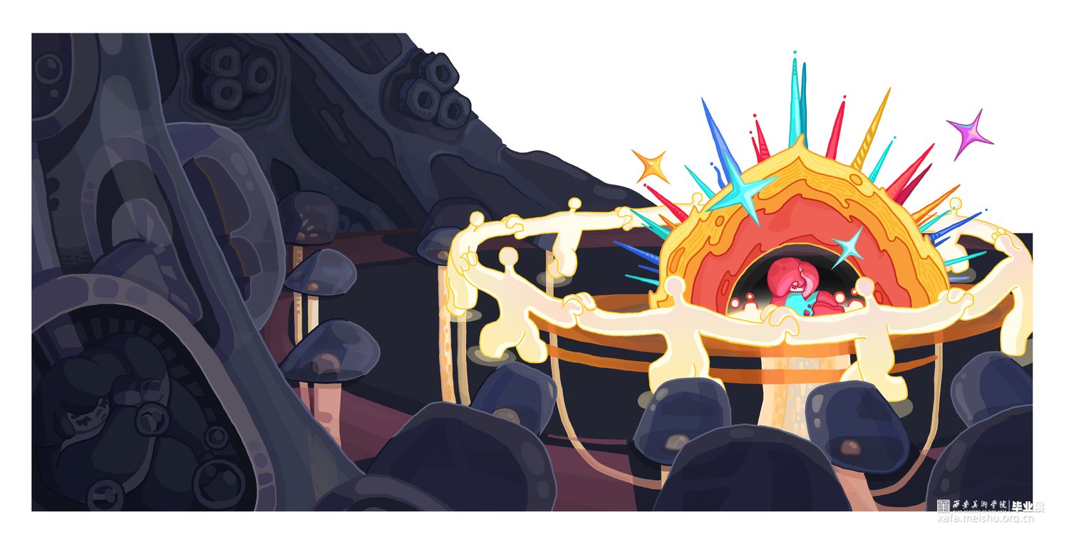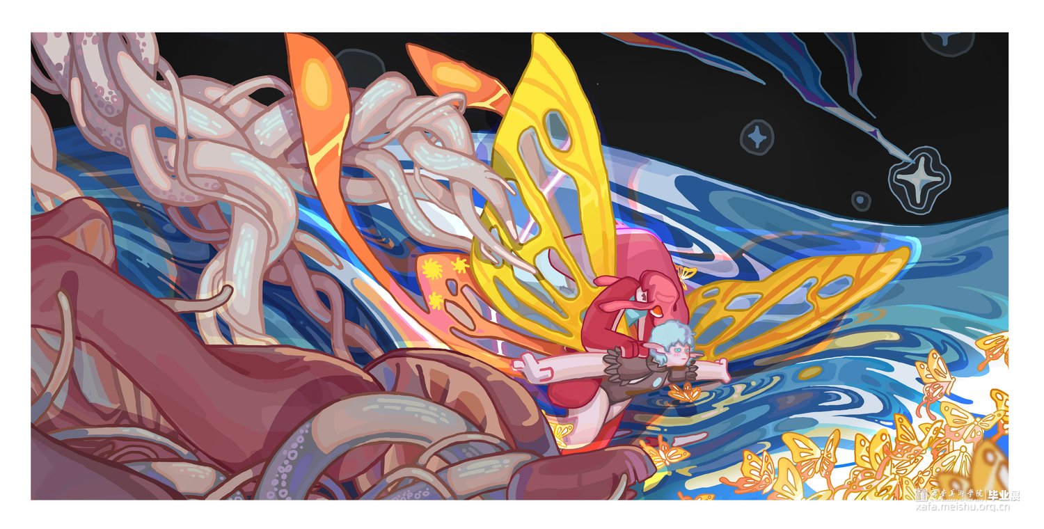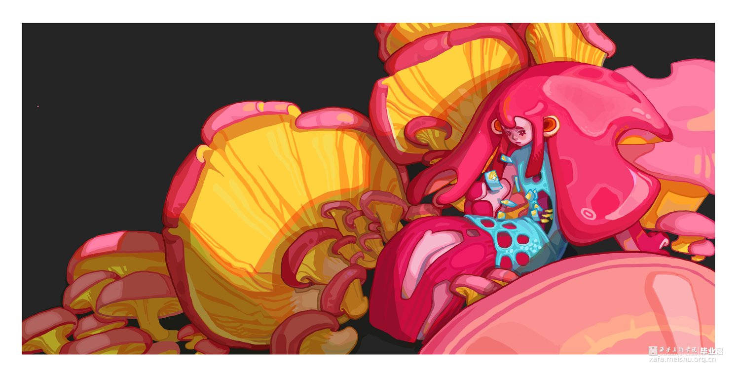 从黑暗里生长出一个小蘑菇,小蘑菇遇见蝴蝶,与蝴蝶嬉戏,幻想着与蝴蝶一起离开,可是,小蘑菇还是被束缚在原地,小蘑菇挣扎后消亡,在最后小蘑菇以另一种形态飞向天空,和蝴蝶一起。