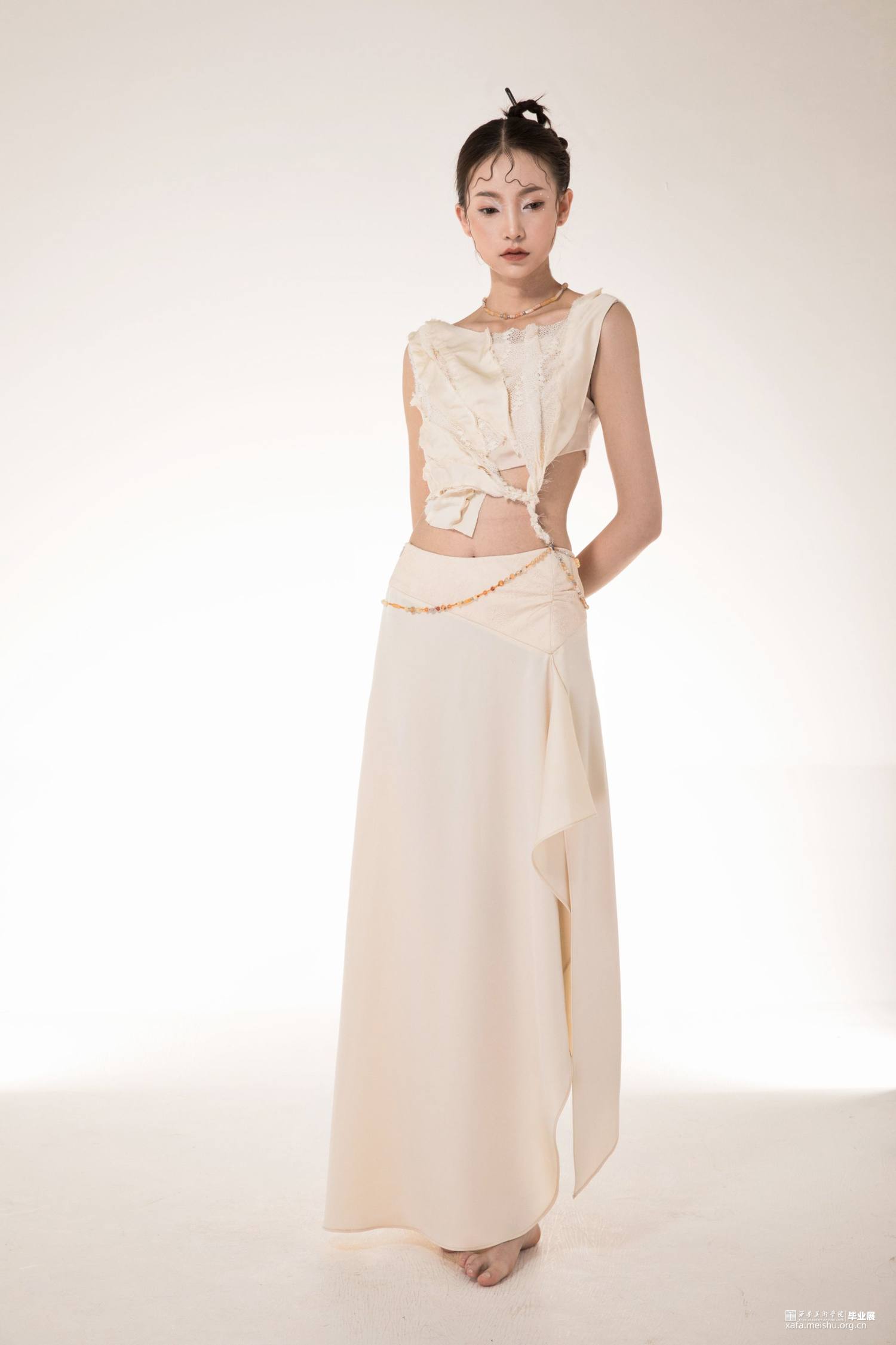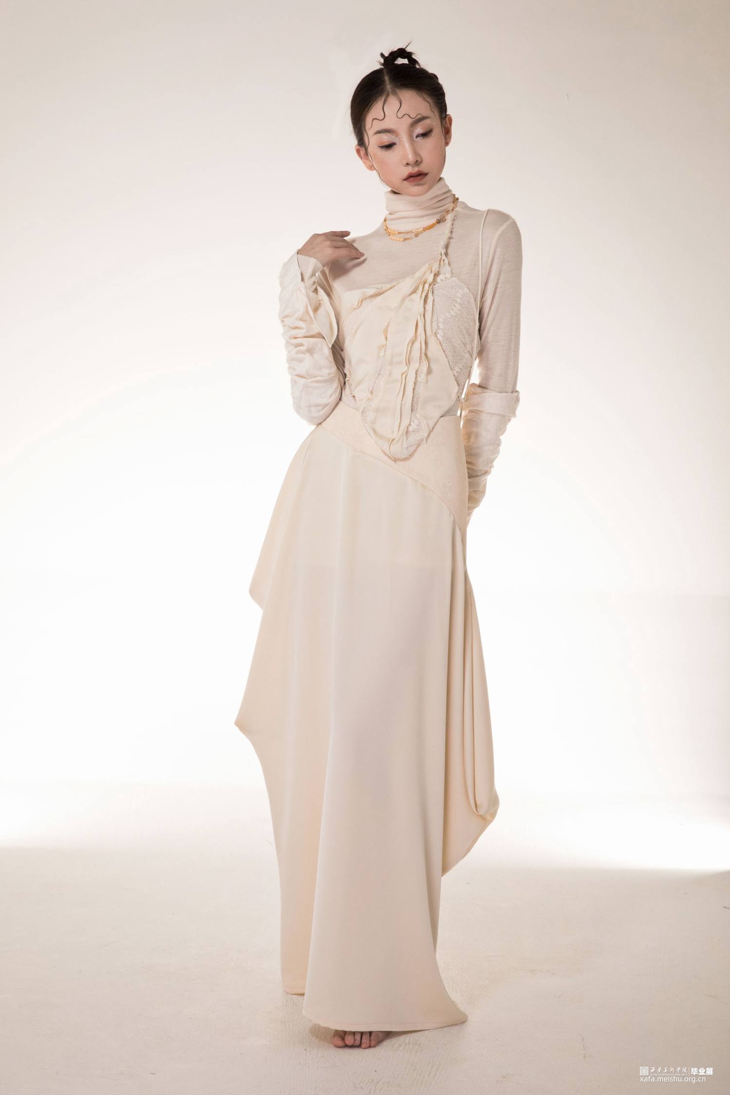 在中国风历史长河中,唐代的文化艺术达到顶峰,其审美也是更加丰满自由,有血有肉。唐代菩萨造像的辨识度非常高,整体风格更加丰满,也更加人性化,其衣饰线条流畅紧致且覆盖面积少,衣纹疏简轻薄透体,因此,唐代菩萨造像的服饰审美特征运用在成衣设计中具有一定现实意义。以唐代菩萨造像的服饰为研究对象,分析其造型风格及其美学特征,阐述其运用到女装成衣的设计当中的方法和手段,探究人体与衣物之间的美的关系。