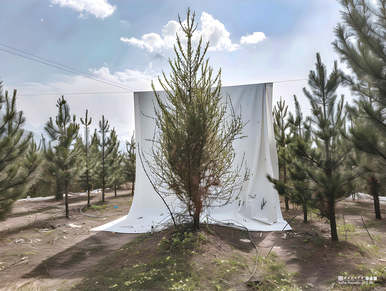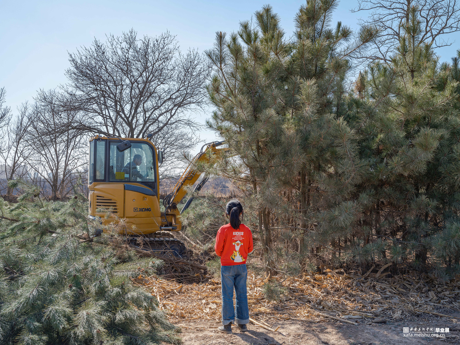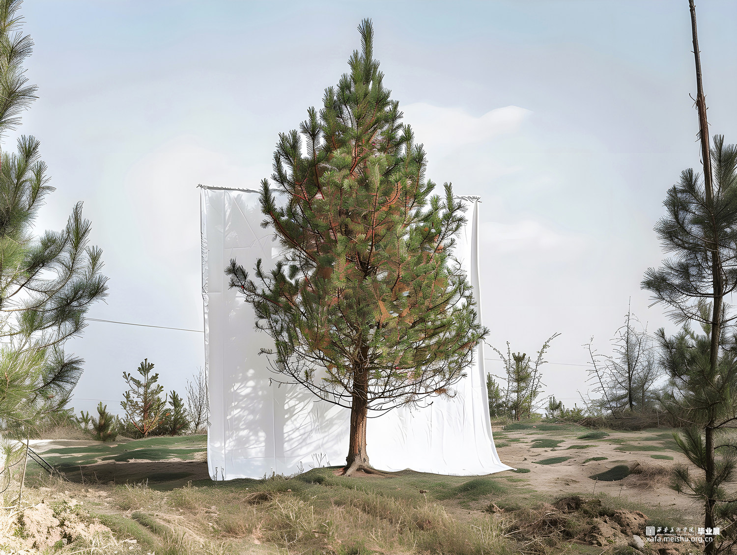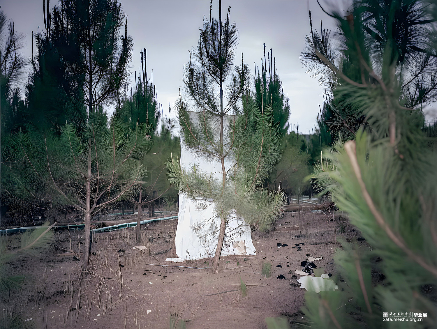 整件作品是我围绕松树所展开的关于乡土记忆的研究,松树林甚至勾连了我成长的所有记忆。我出生于甘肃庆阳地庄村,这是一个被松林包裹着的山村,也是我建构图像影像表达的起点。松树对于地庄村而言是一个不可或缺的经济作物,也是村民娱乐、交流和各类活动的见证物。时至今日,松树林像是一个退休的老者逐渐消失于地庄村人的视野中。