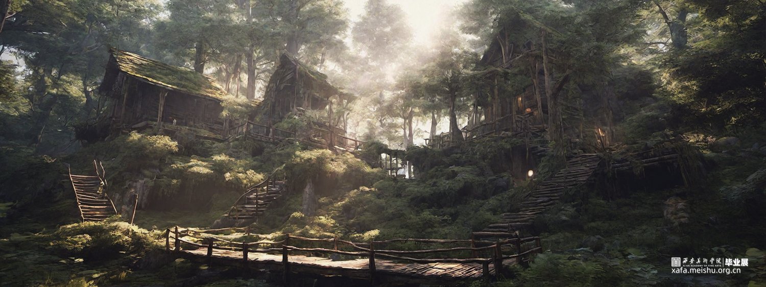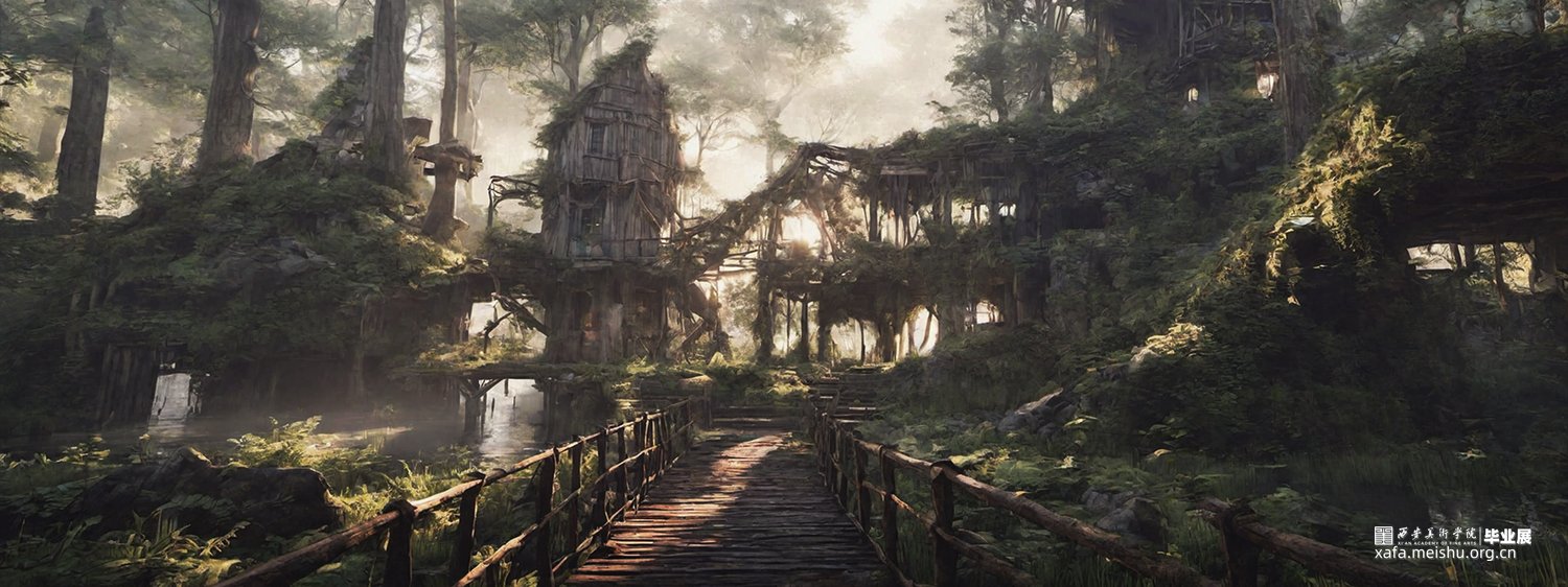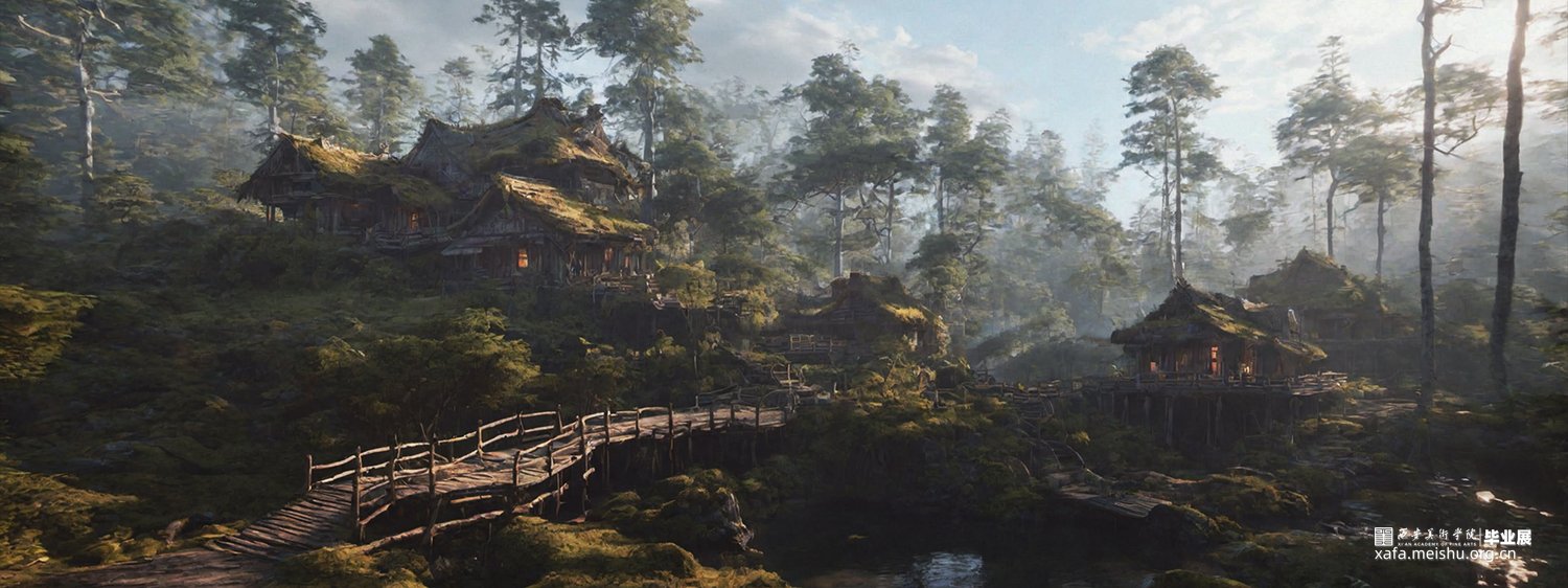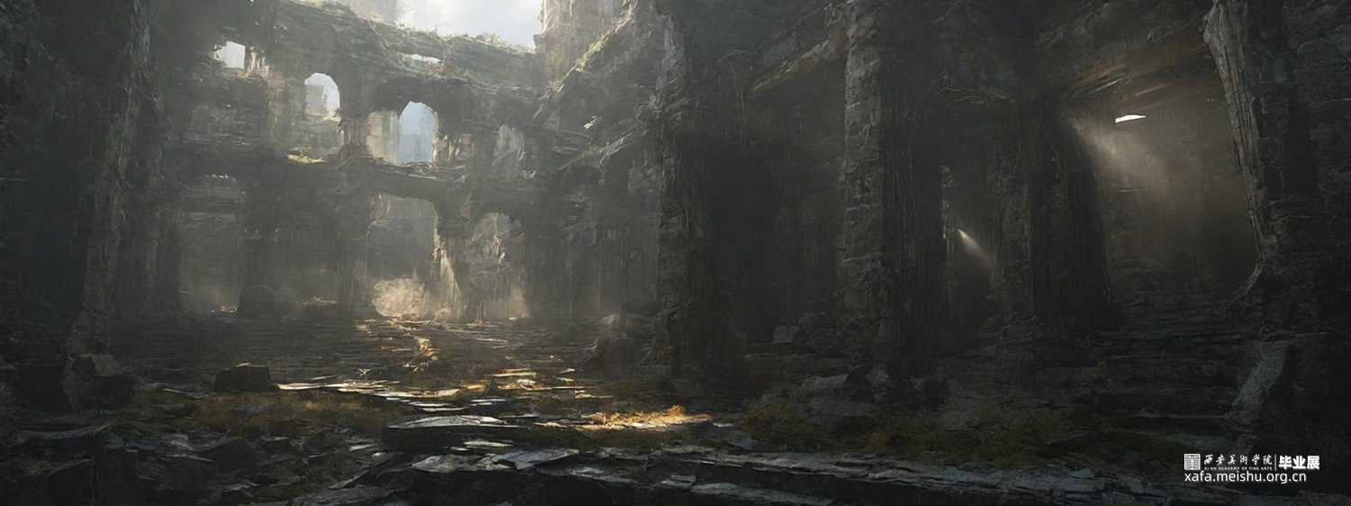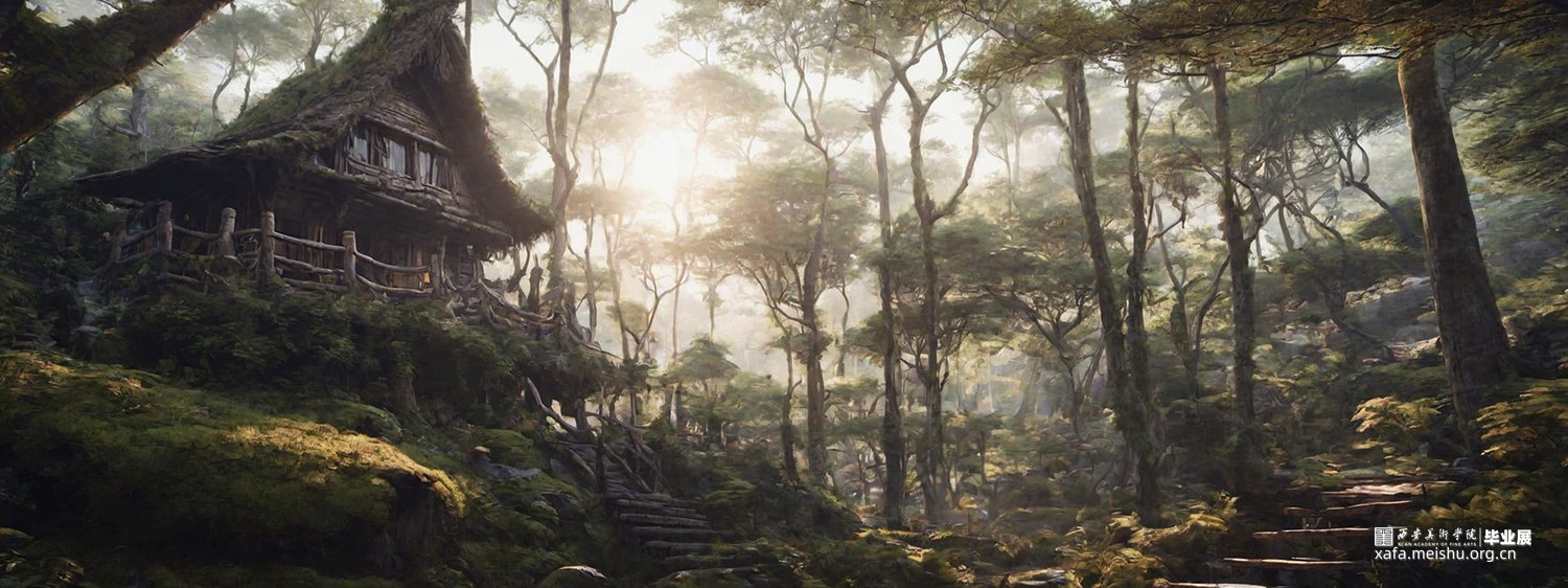 以AI生成技术在图像设计和风格探索与表达方向的实际应用为出发,制作了由四个不同环境的场景组成的概念设计图集,共二十张作品,均采用 AI 图像生成技术结合 PS等工具完成制作。