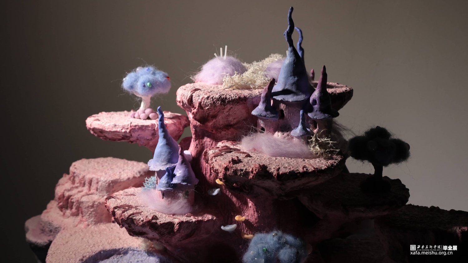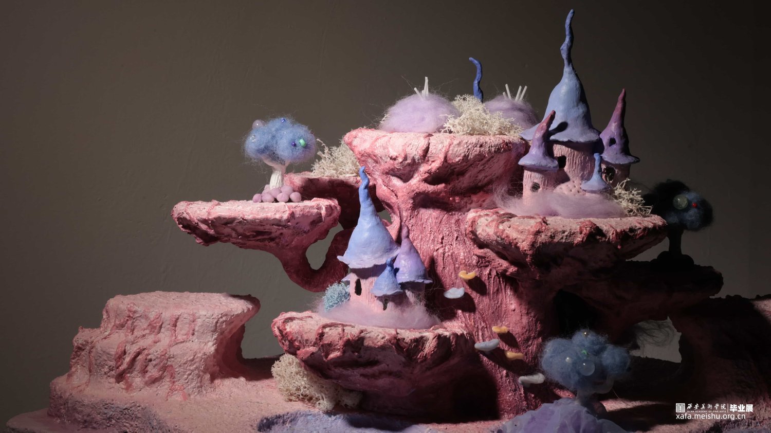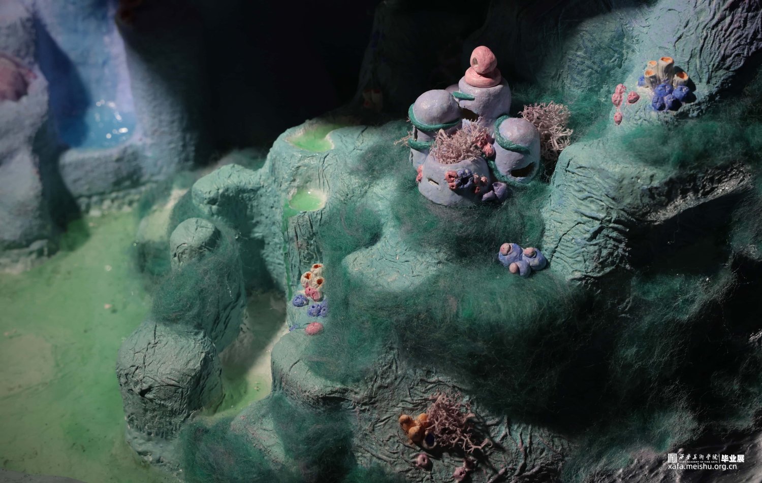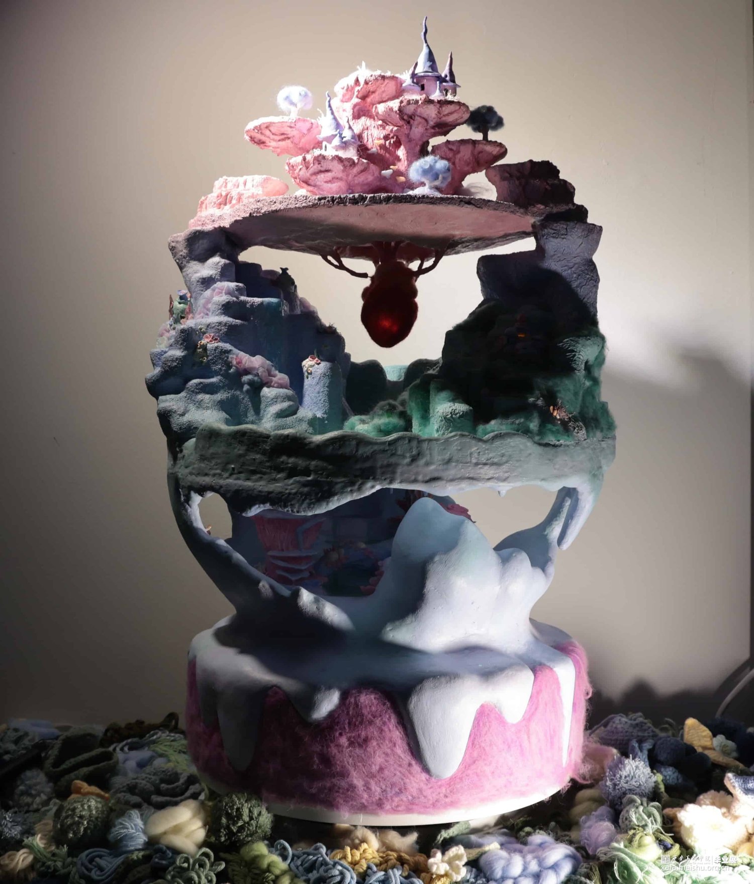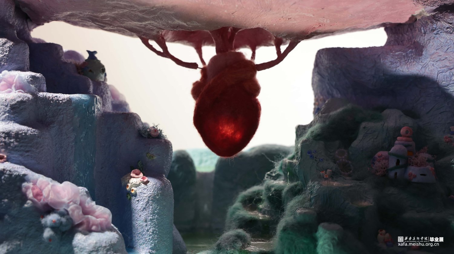 作品以独特的视角,将人体内部的复杂结构与自然界的生态循环相互映照,通过这一方式来试图揭示人与自然的和谐共生关系。在视觉呈现上,《向野相生》采用了微观视角,将观众带入一个充满生机与活力的微观世界。模型中融入了交互式的跳动心脏设计,象征着人与自然间生生不息的联系。同时,作品巧妙地结合了呼吸灯和夜光粉等材料,赋予模型中的微生物另一种生命形式的呈现。微生物在光线的映照下,仿佛拥有了呼吸和生命,与心脏一同跳动,共同构建了一个充满魅力的微观生态系统。