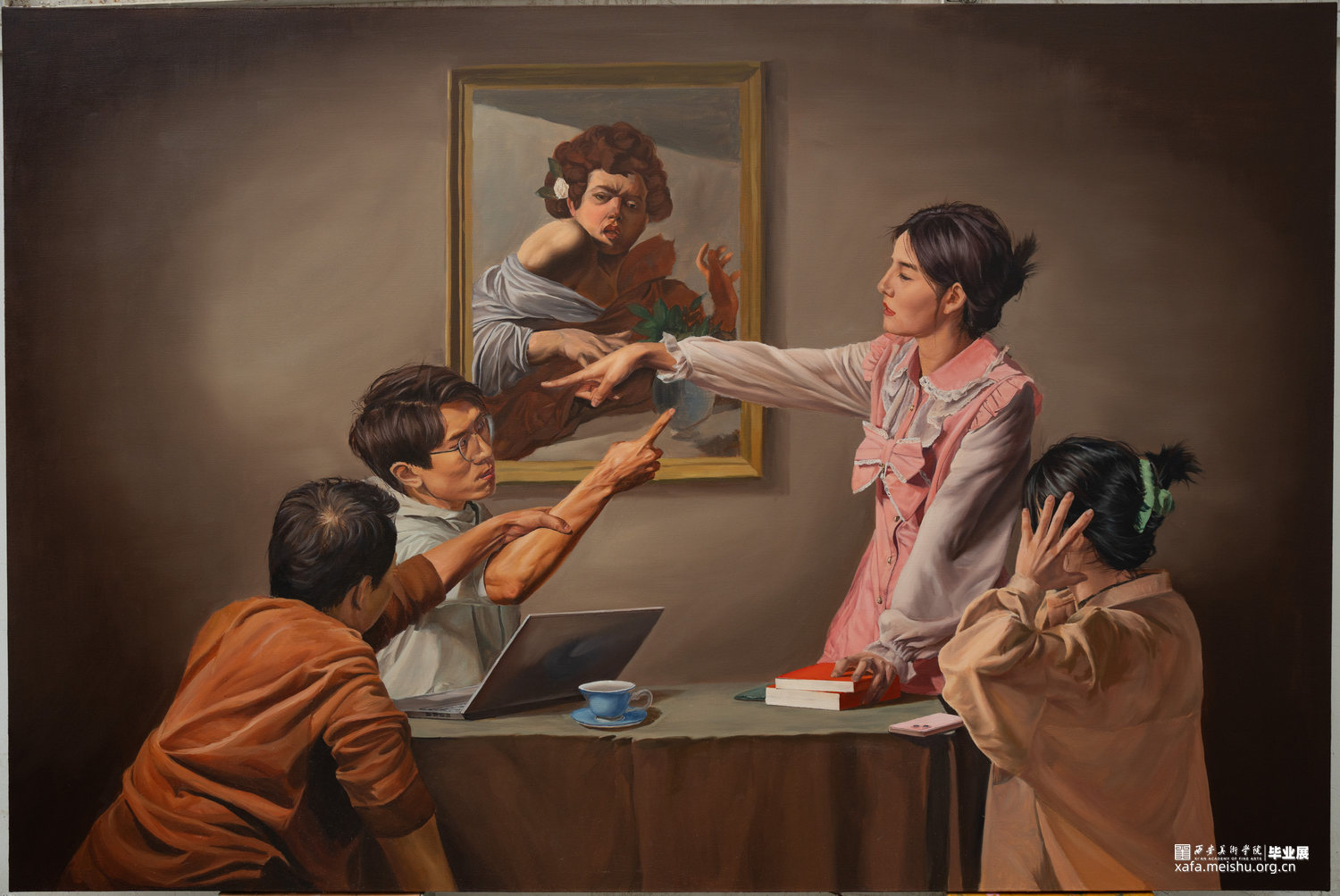 因为话语权而辩论的男女,与背景中的人物产生了联系
