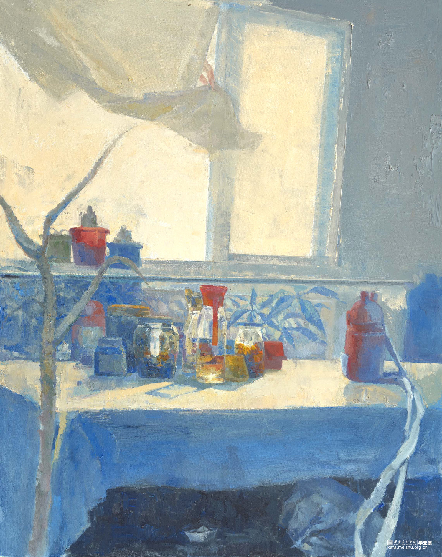 《童年记忆中的蓝色生活·二》布面油画 2024年 100x80cm 指导教师:陈君魏