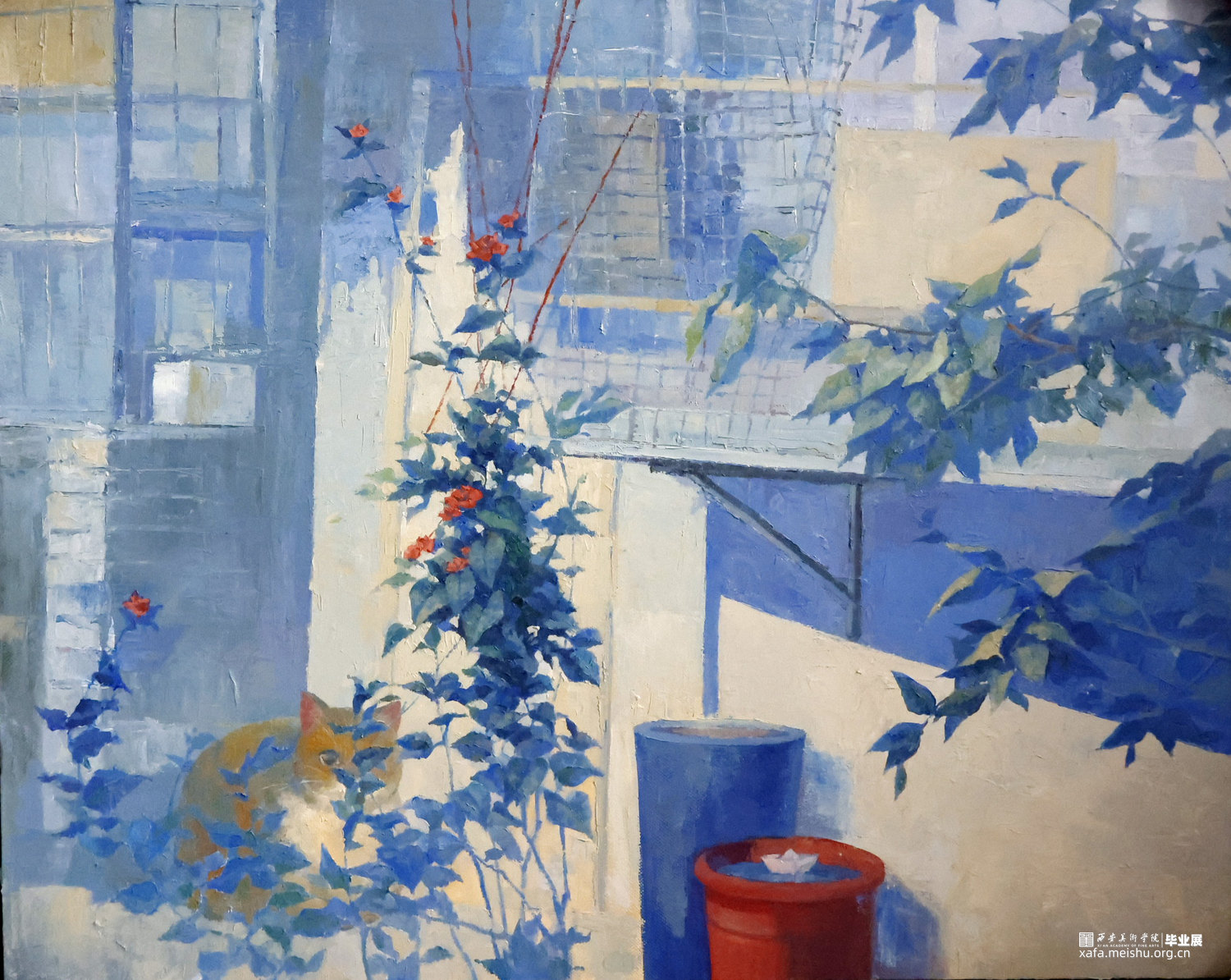 《童年记忆中的蓝色生活·一》布面油画 2024年 80x100cm 指导教师:陈君魏