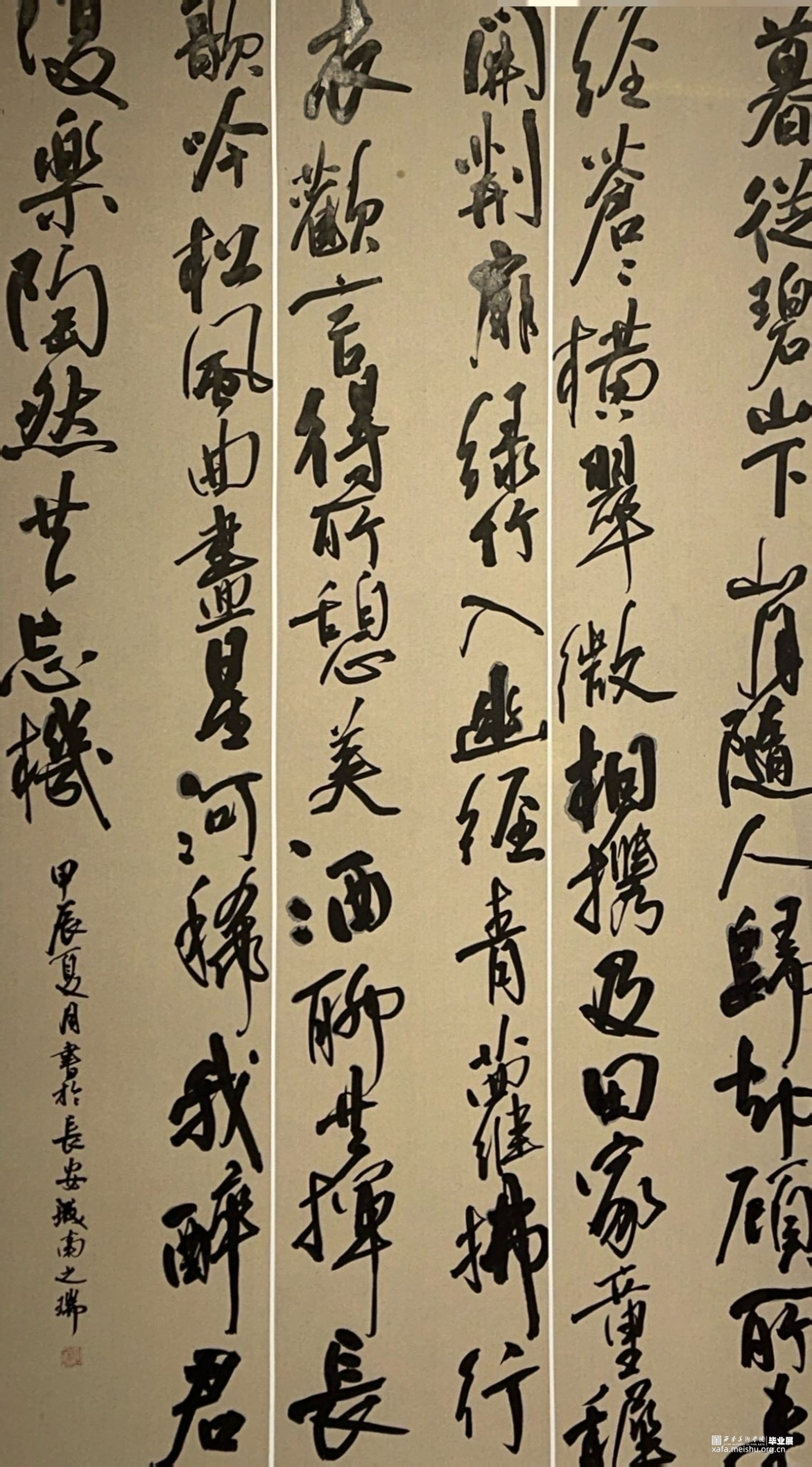 作品节录苏轼《仆曩於长安陈汉卿家,见吴道子画佛,碎烂可》隶书创作。 作品节录李白《下终南山过斛斯山人宿置酒》,拟王铎行书风格创作。