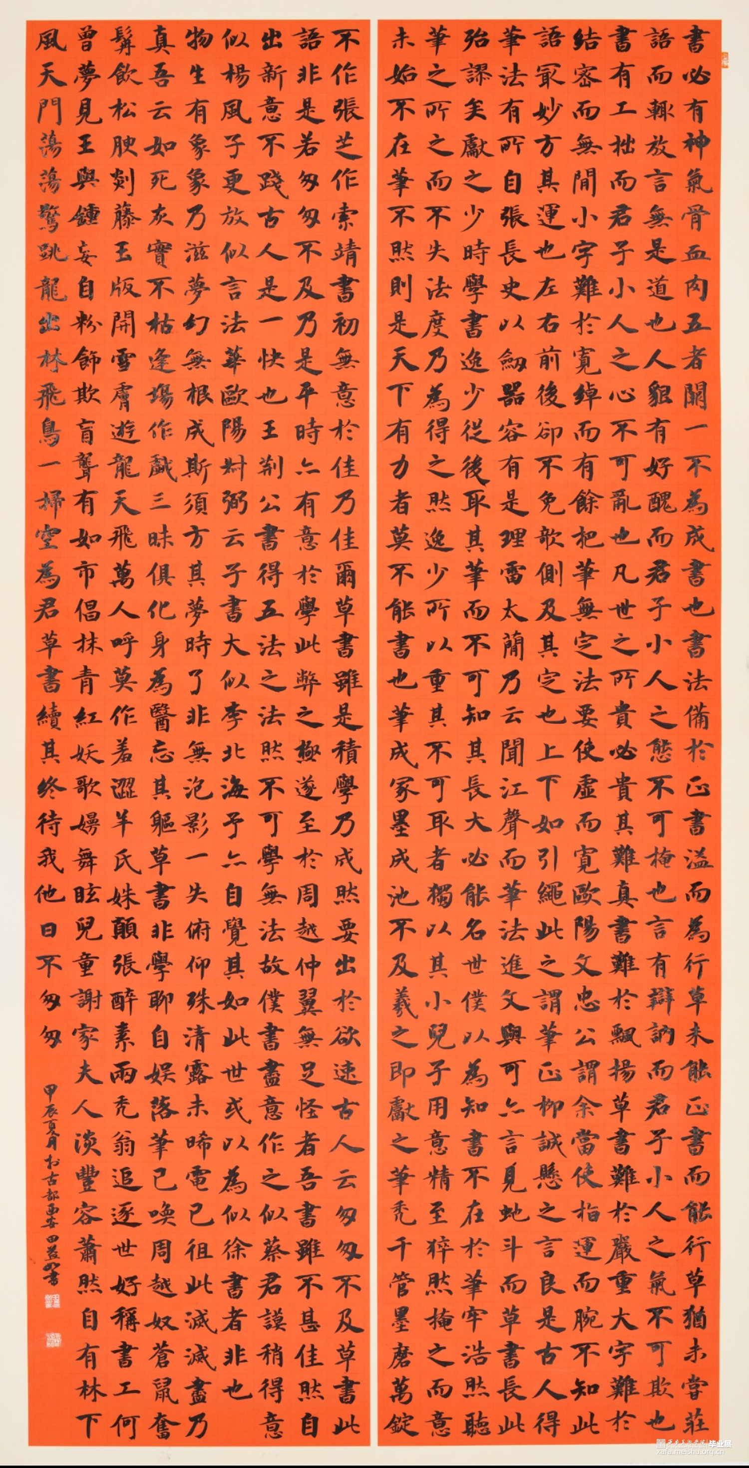 第一幅作品《苏轼书论数则》:苏轼将理论结合实践的标准应用到实处,他的“尚意”美学思想融于其诗、书、画之中,形成了独具一格的苏轼美学。在俗世书法作品中,我们不难看出以下特点:集意趣于一身,却又不失古意,有着“我书意造本无法,点画信手烦推求”的最高追求。