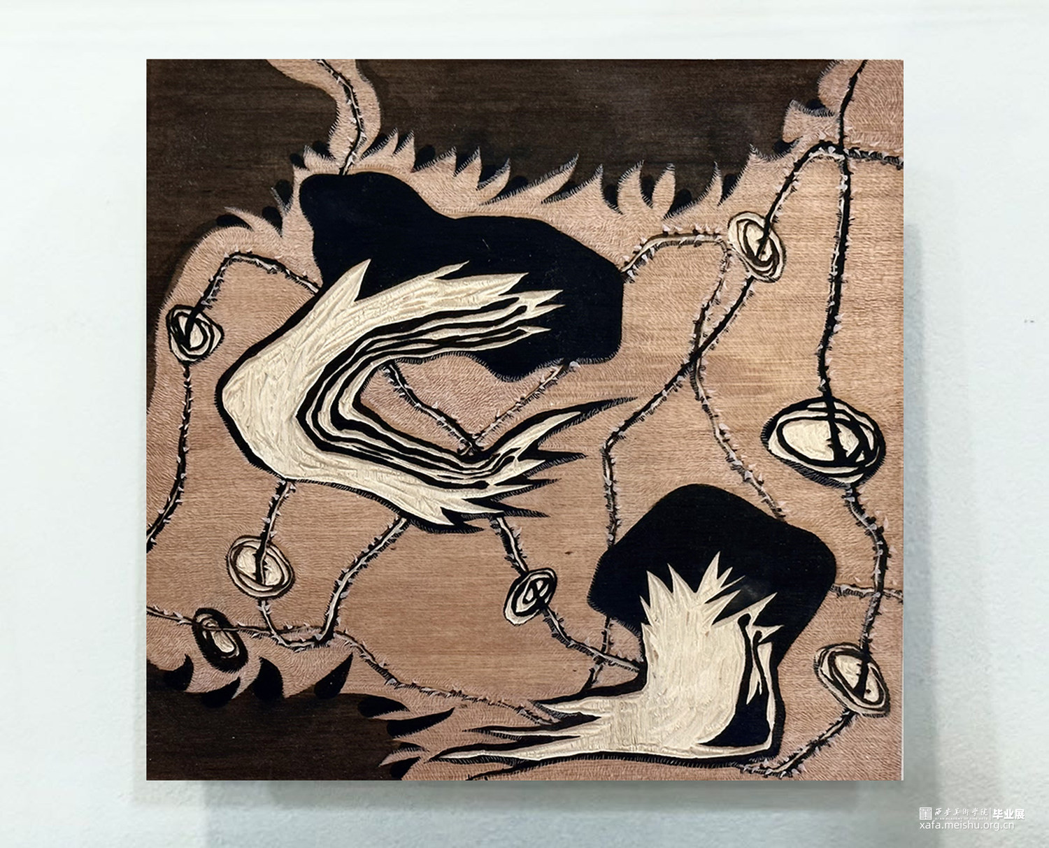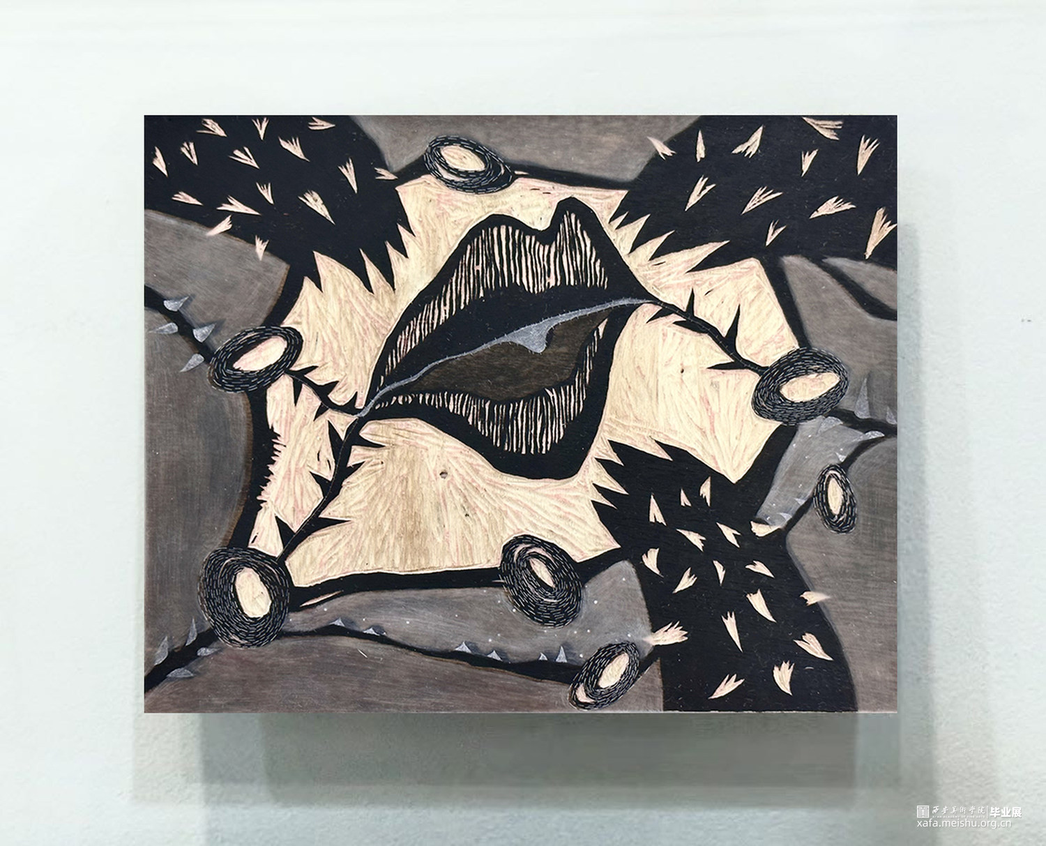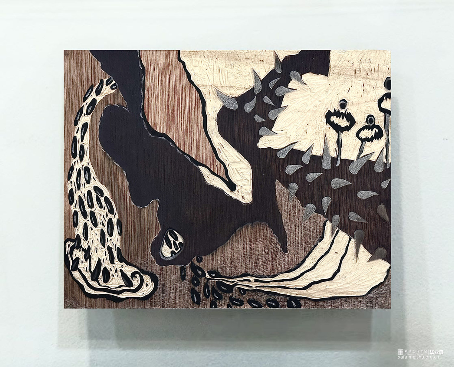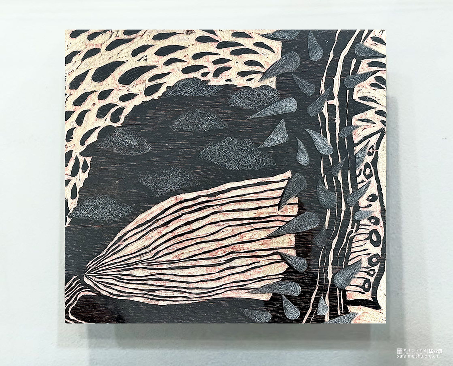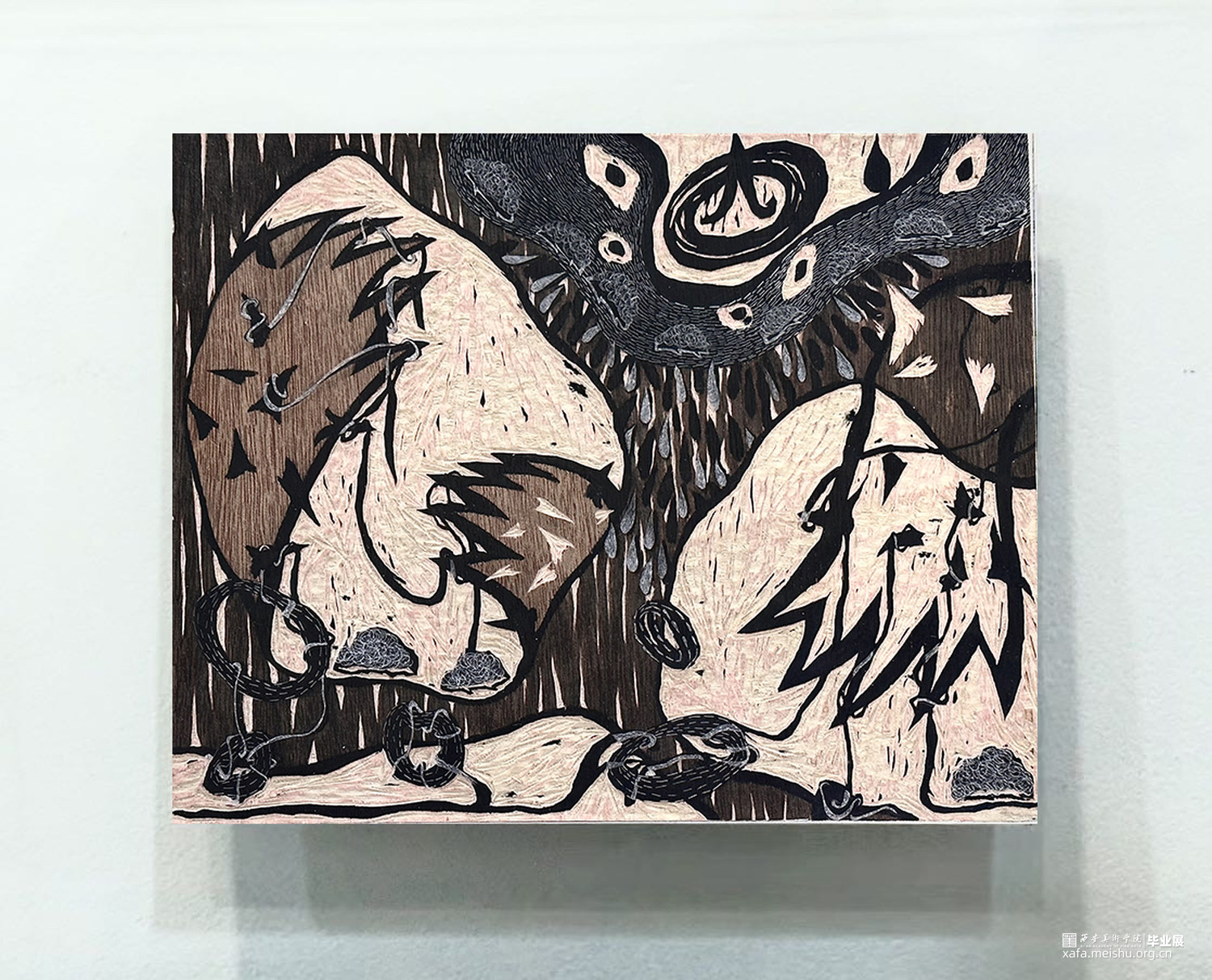 《别害怕哦》系列作品线下展览总共15幅,线上选取9幅,分别是《别害怕哦·不去听,我自得随心徜徉1》《别害怕哦·缄默是最好的回击》《别害怕哦·和朋友一起沉睡》《别害怕哦·不去听,我自得随心徜徉2》《别害怕哦·灵魂依旧不屈》《别害怕哦·不去看,我还嗅得青草香》《别害怕哦·穿梭时空的拥抱》《别害怕哦·行走在哭泣的雨滴下》《别害怕哦·锁起不开心》,将木刻和亚克力线刻叠加展示,既保留木版的韵味,又将亚克力版的灵活趣味增添其中,作品以刺猬为主要意象,五官手脚为次要意象,通过对比表达一种“可以害怕但不要害怕的想法。