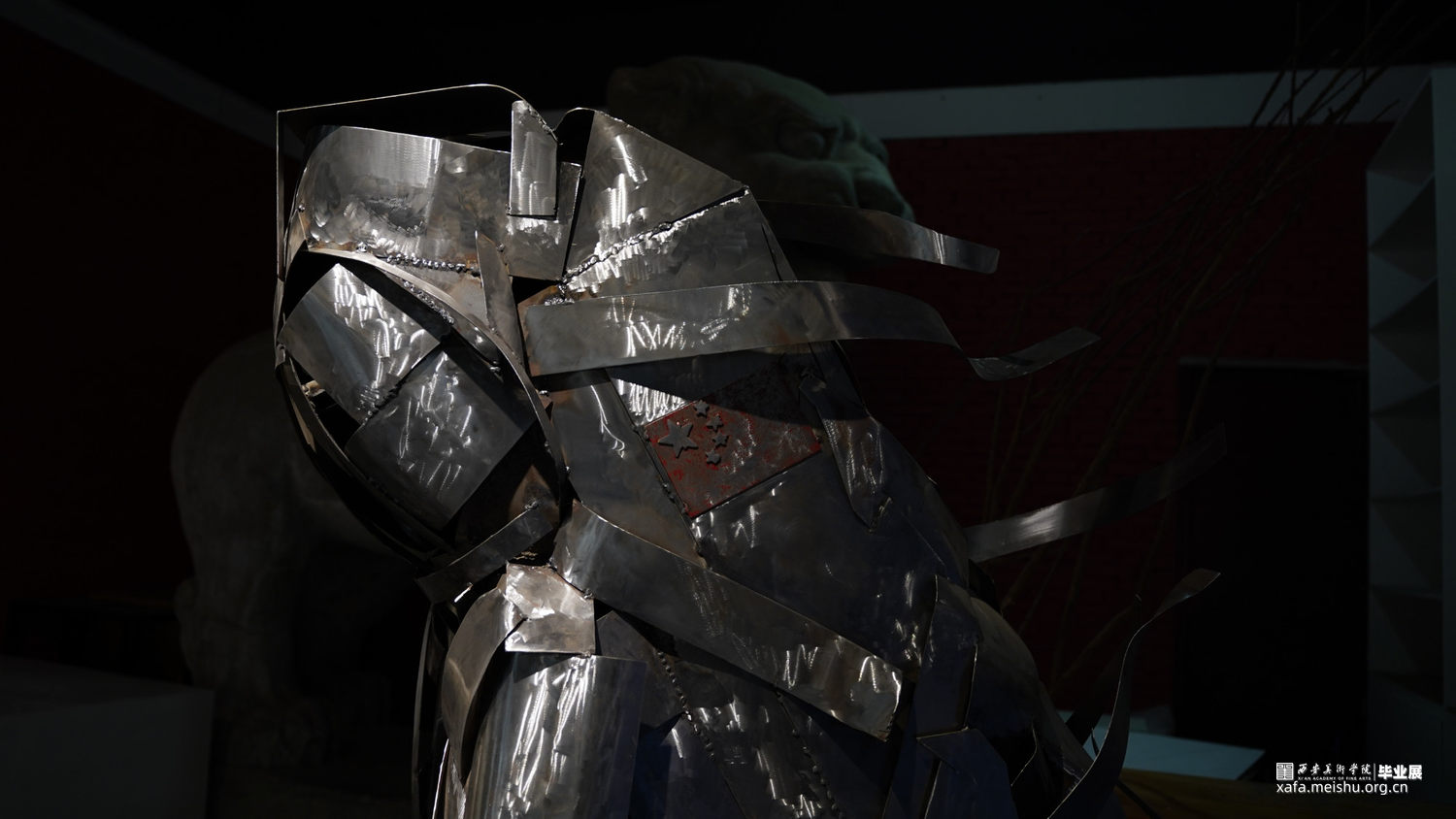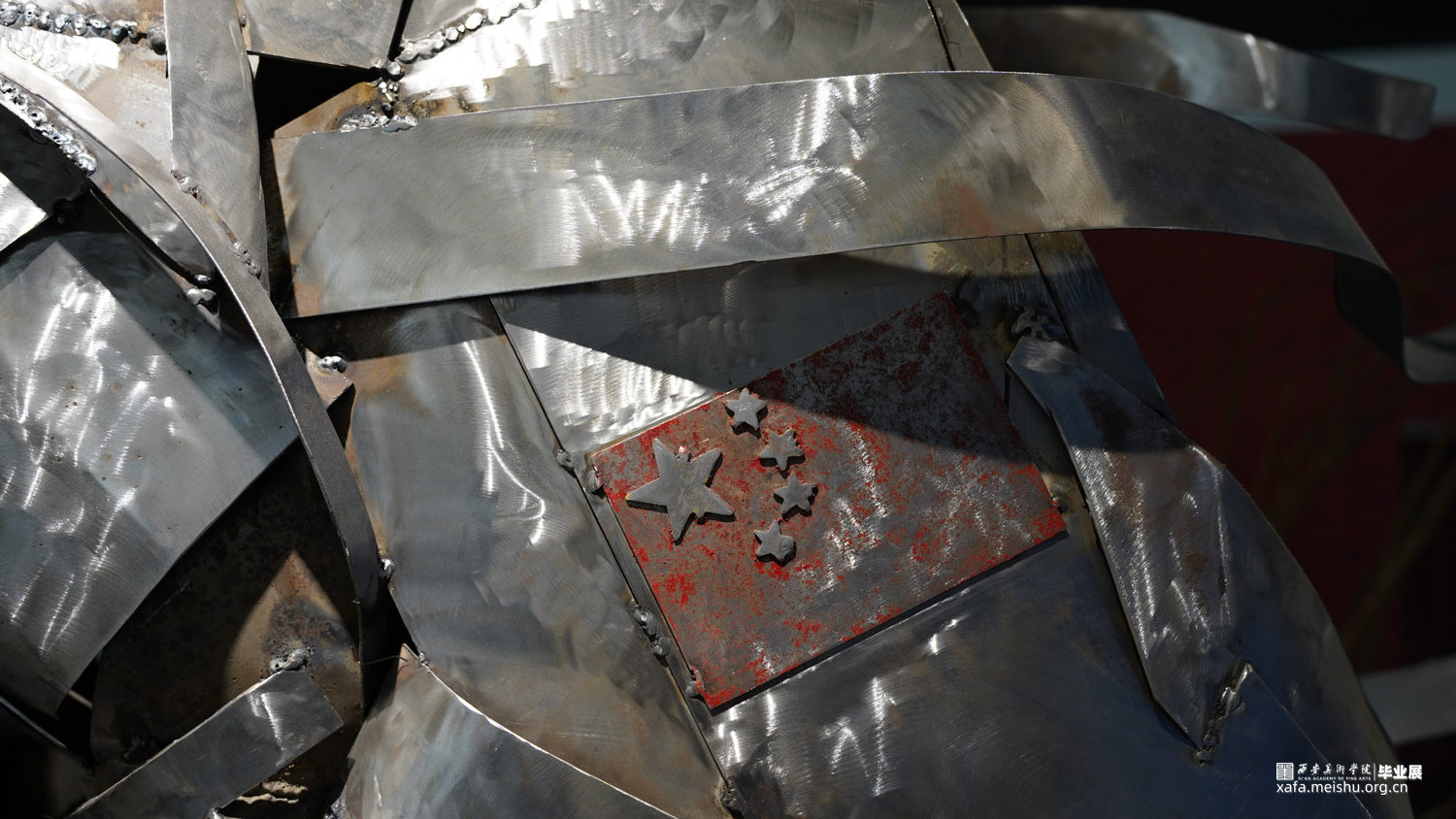 为纪念中国各航天员出舱任务成功而创作的抽象金属雕塑。