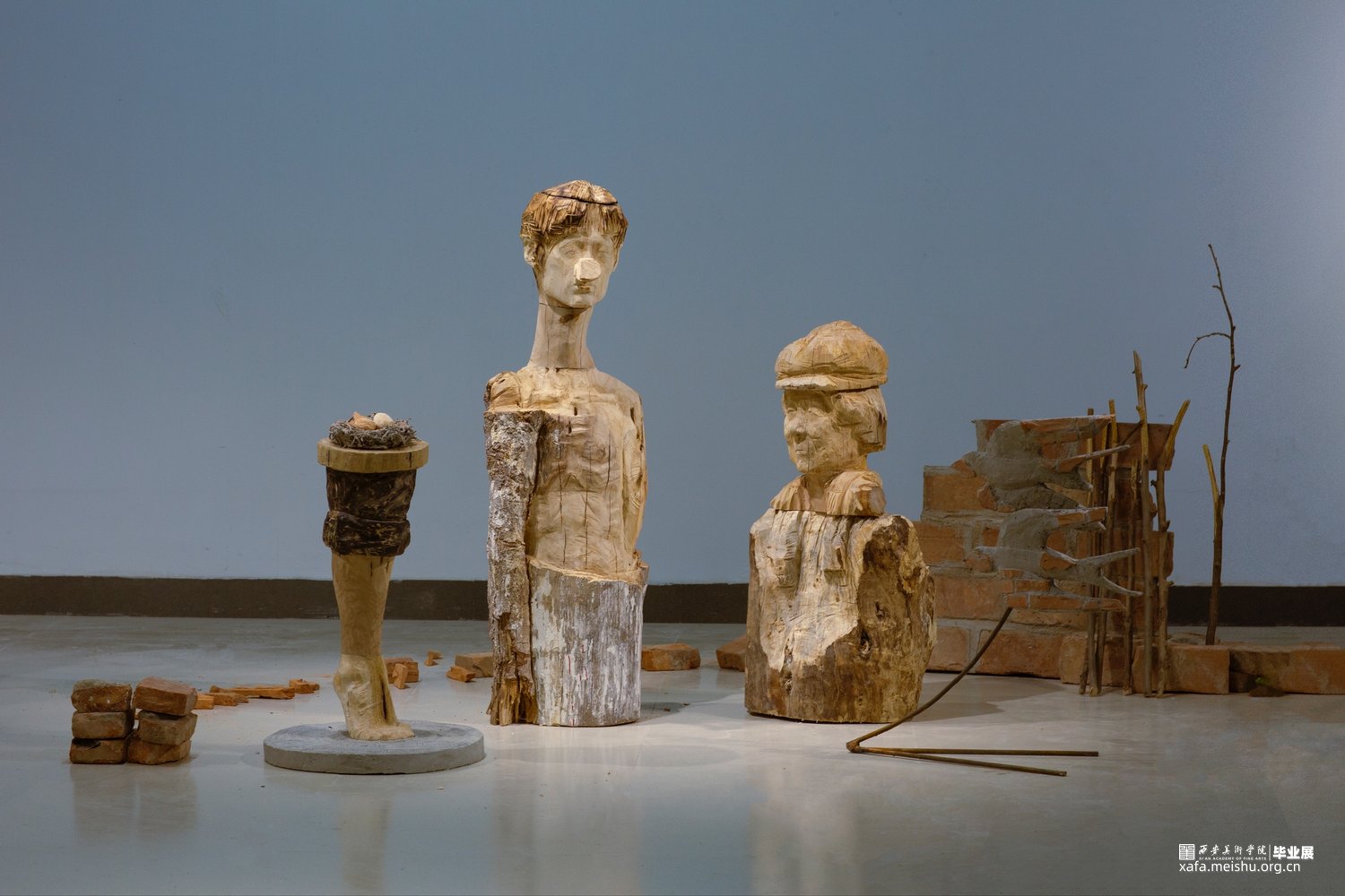 木头代表生命的象征,而红砖是传统的材料。作为我小时候的农村符号,红砖由粘土制成,正如大地孕育了生命一样,过去农村的生活也成就了现在的我。我尝试用这件作品记载着过去,呈现一种记忆般的不完整性,遗失性,同时也强调在我生命中的起源意义。