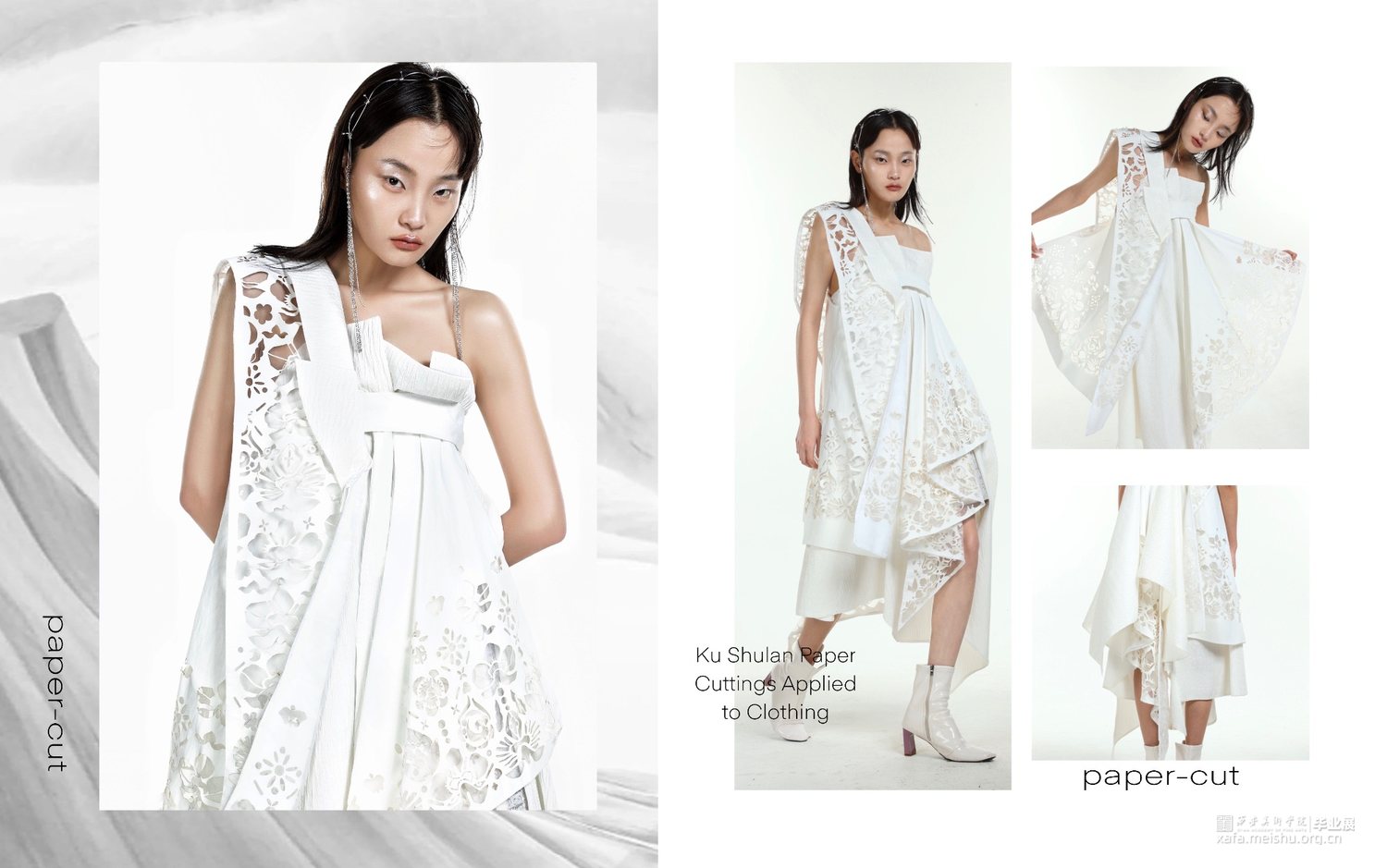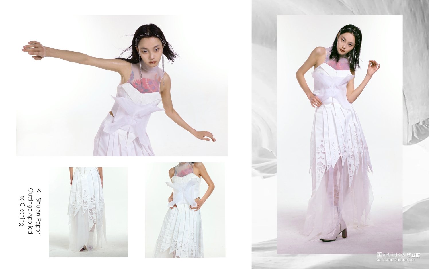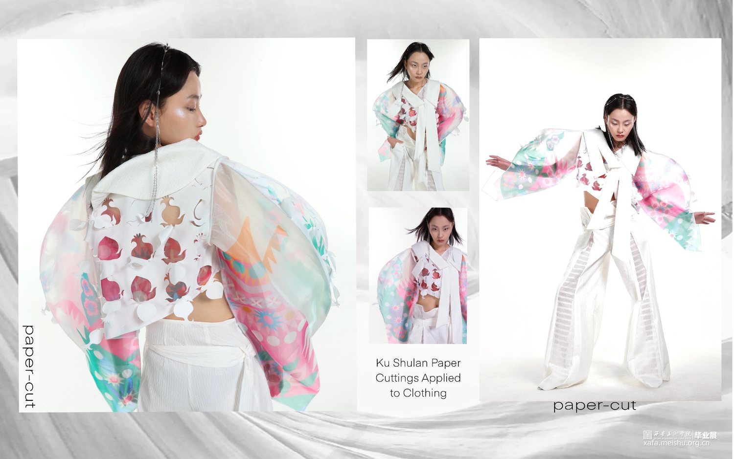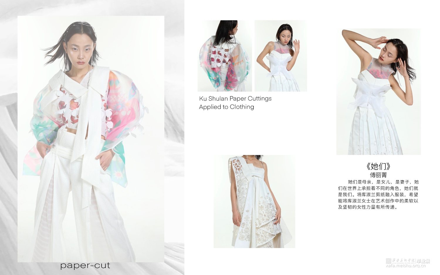 她们是母亲,是女儿,是妻子,她们可能在世界上承担着不同的角色,但她们首先是自己,她们就是我们。将库淑兰剪纸融入服装,希望能将库淑兰女士在艺术创作中的柔软以及坚韧的女性力量有所传递。