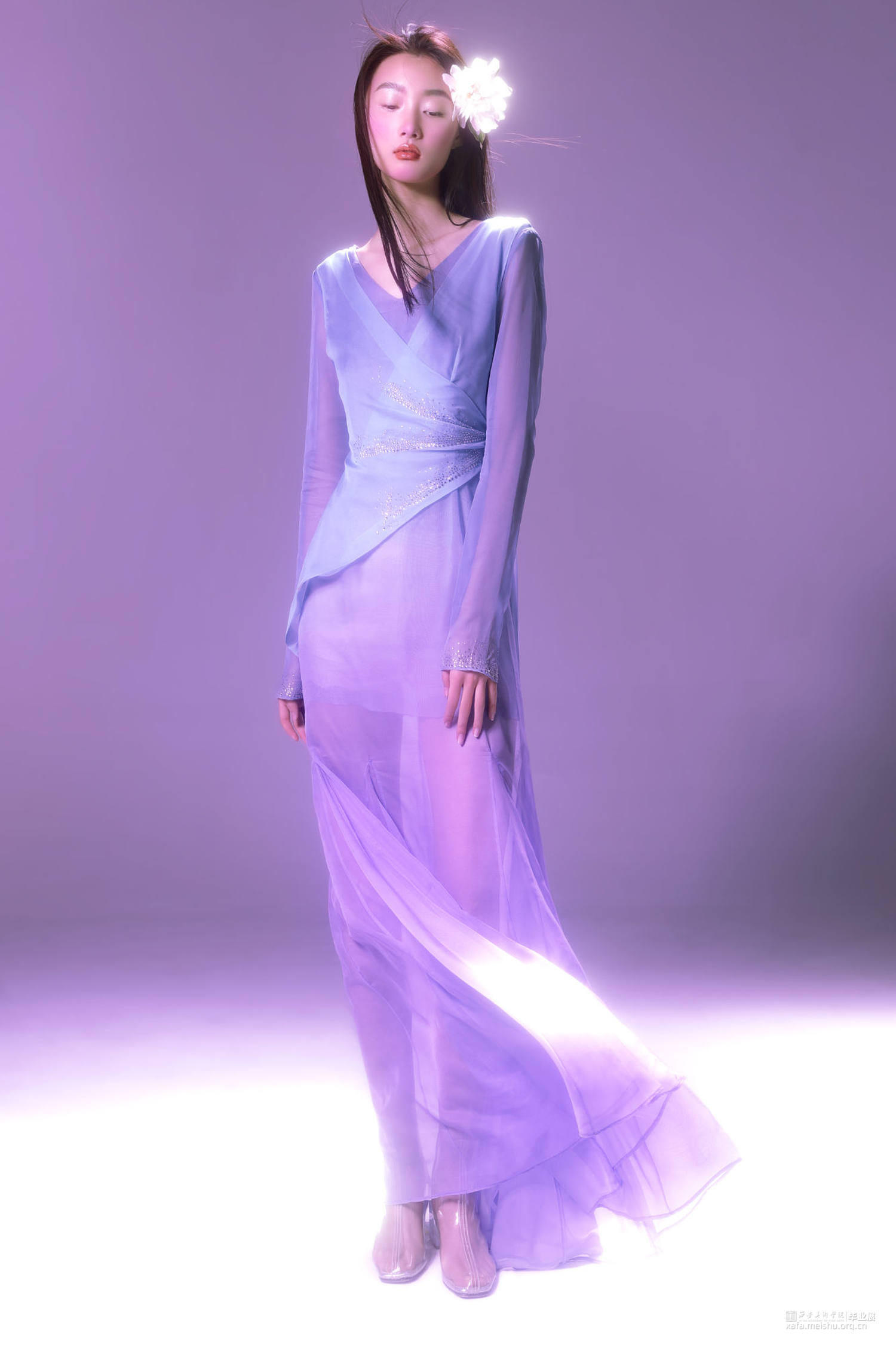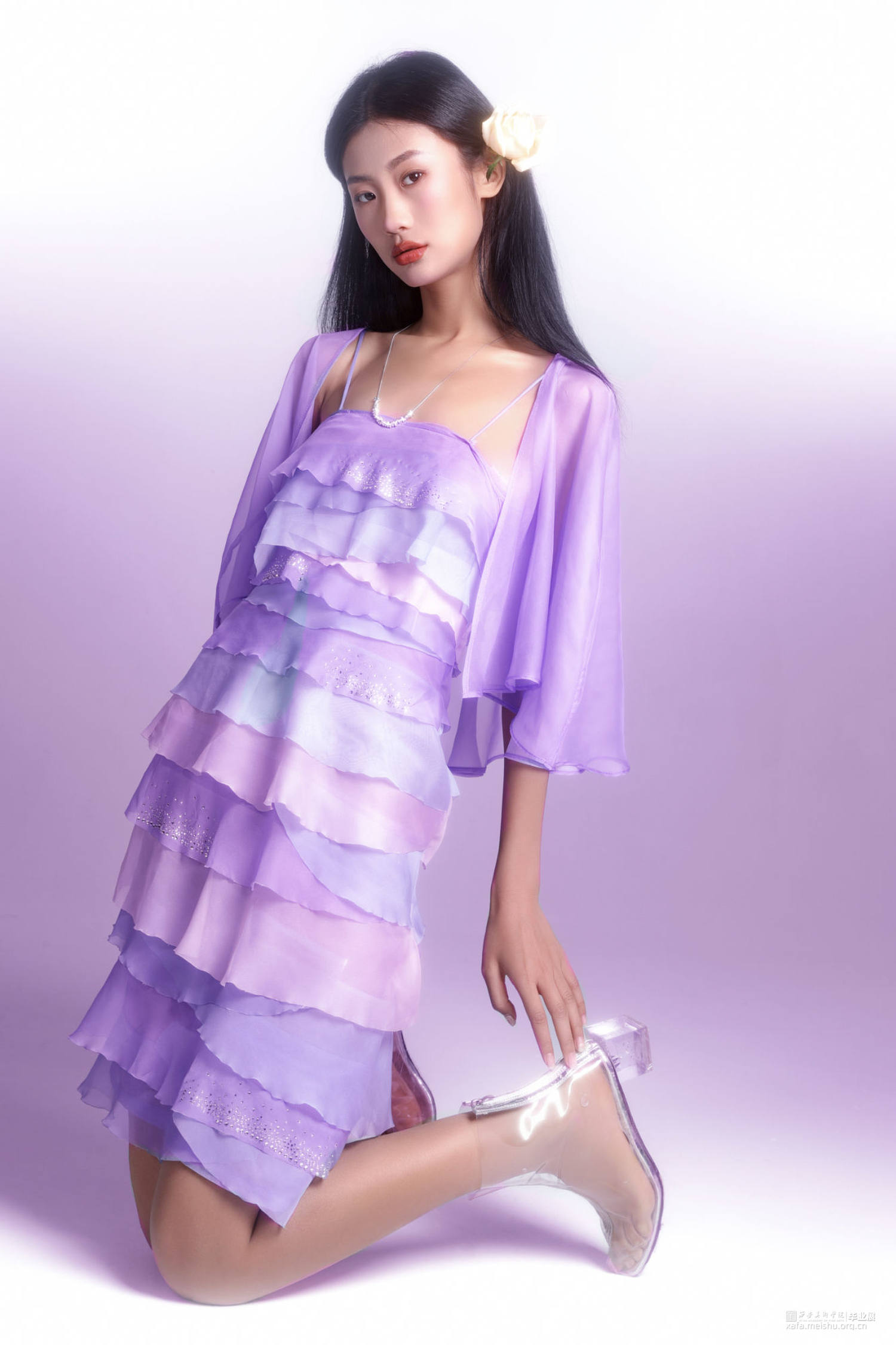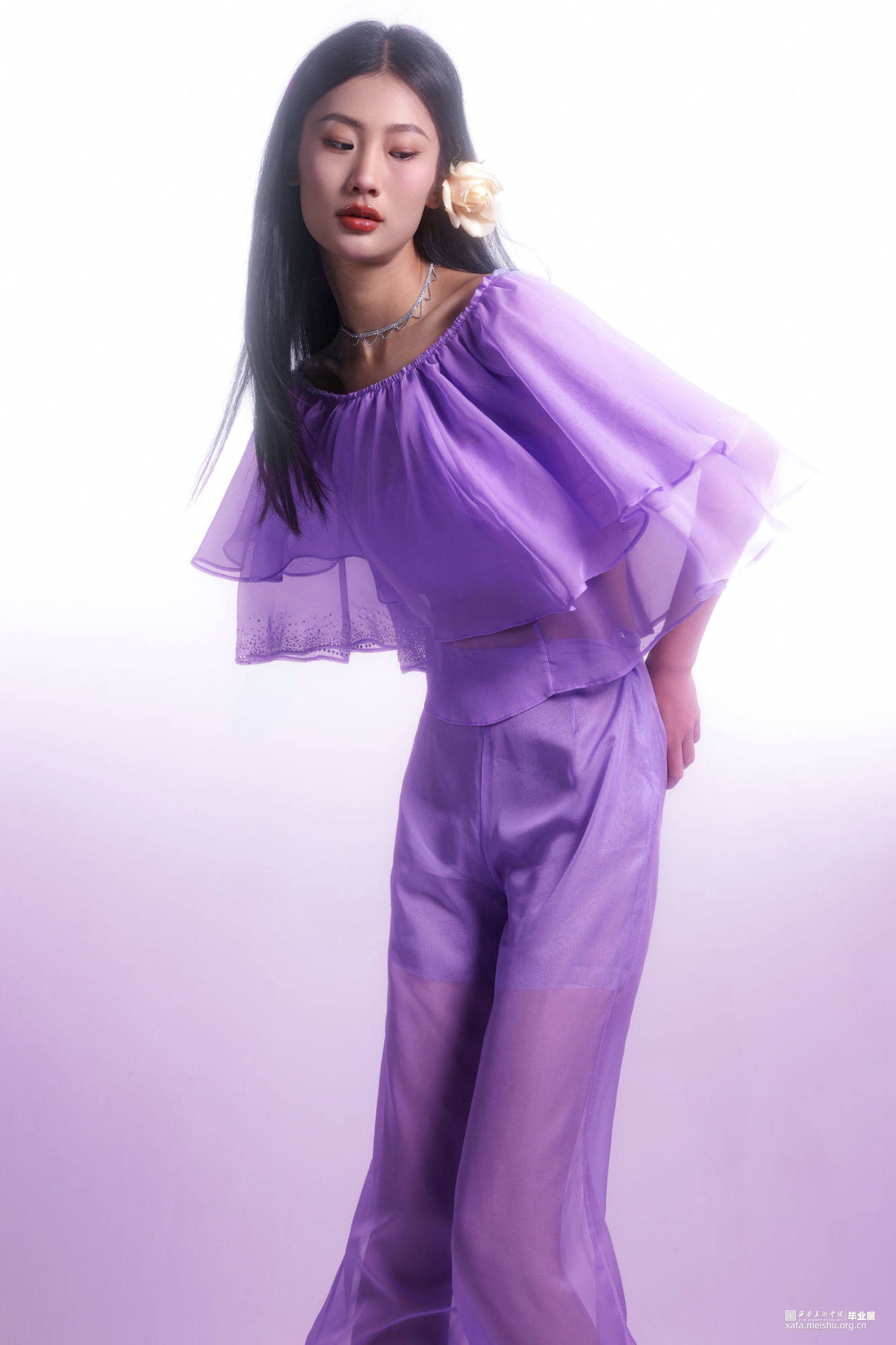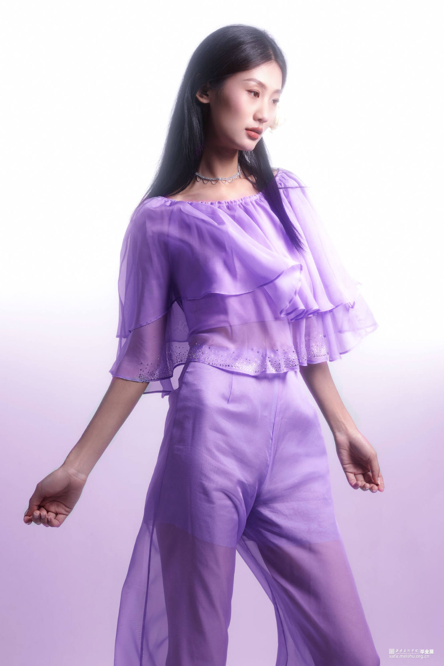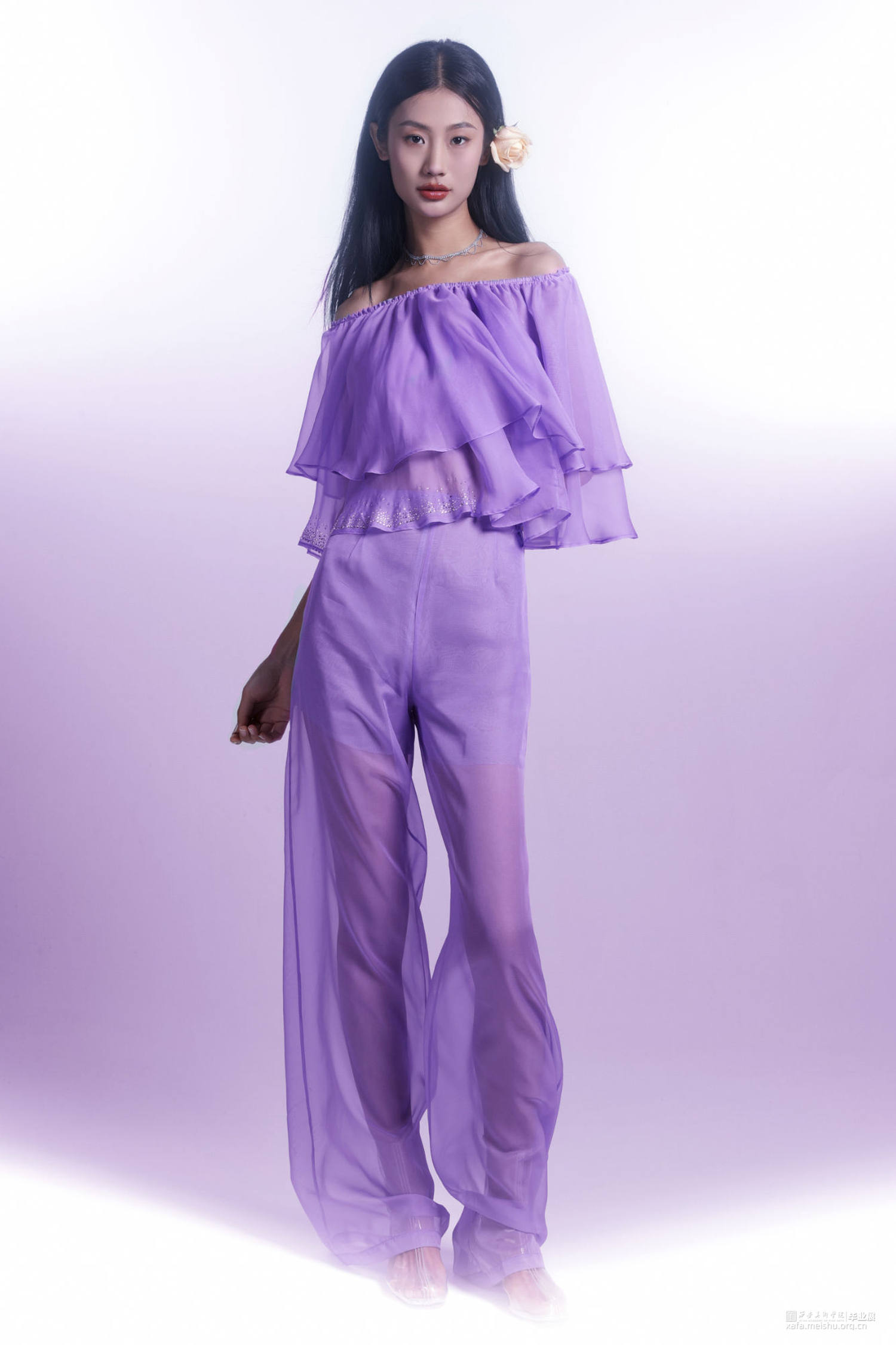 以天丝雪纺为面料,紫色打造梦幻氛围,表达一种轻盈,浪漫的空气感。材质与色彩相呼应,给人朦胧的“印象”感