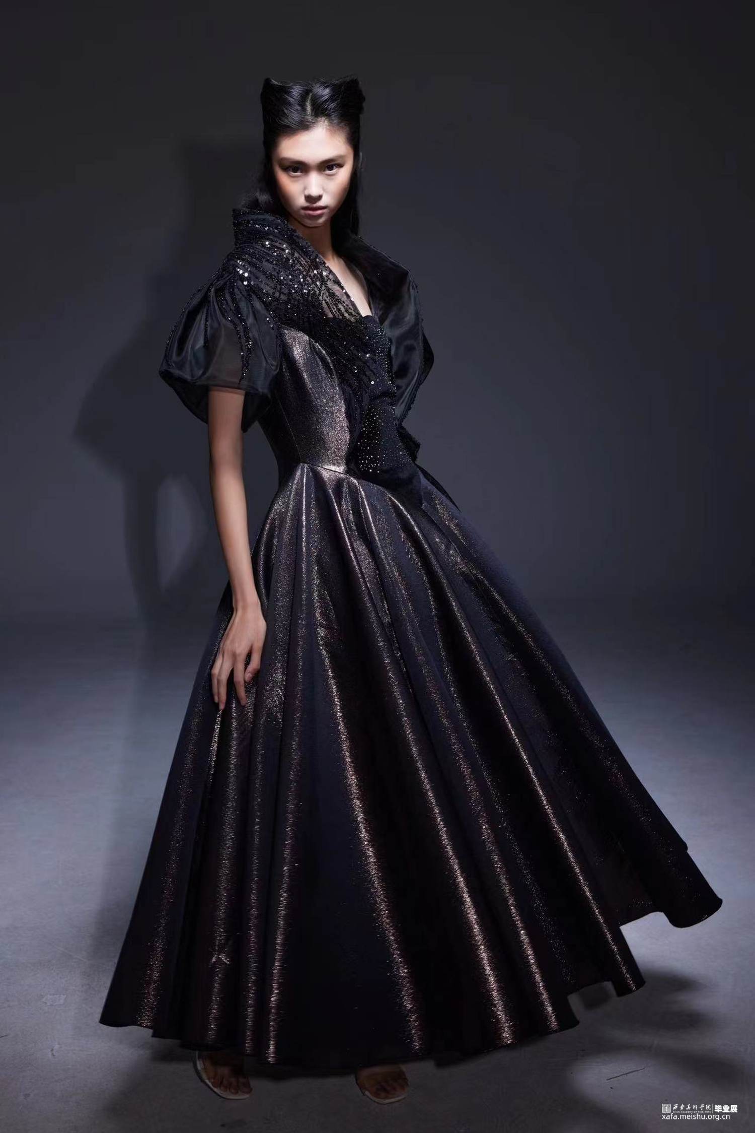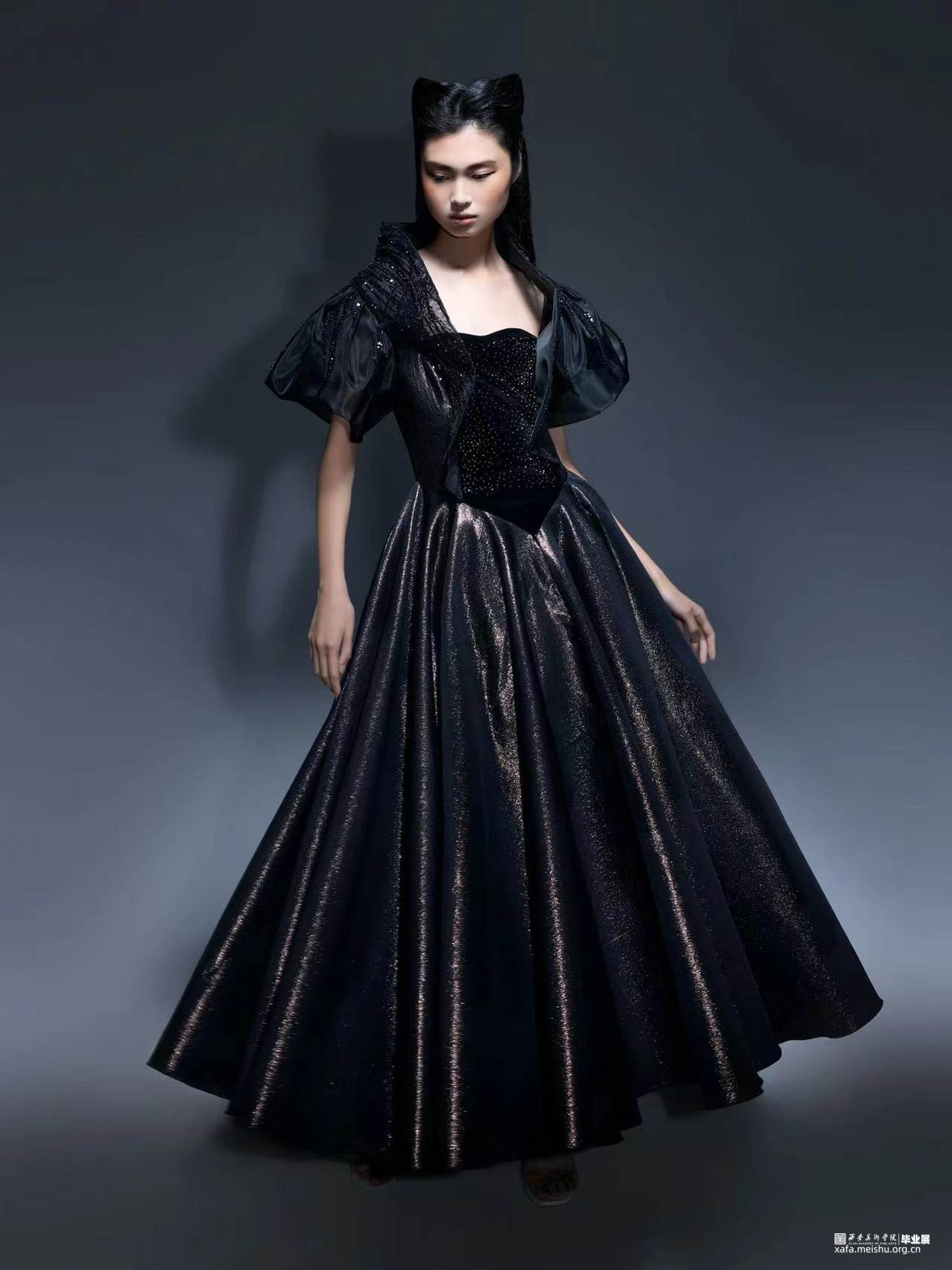 本系列服装设计作品以美剧《了不起的麦瑟尔夫人》中的麦瑟尔夫人一角为人物原型进行塑造,以麦瑟尔自信勇敢坚韧的女性形象赋予作品深层次的独特魅力。并从剧中主角麦瑟尔夫人的复古穿搭中“穿越”回20世纪50年代的西方时尚环境中,汲取当时的西方经典女性礼服造型设计特点,并结合当代服装设计再造手法进行创新设计,探究20世纪50年代西方经典女性礼服的造型与活化设计。