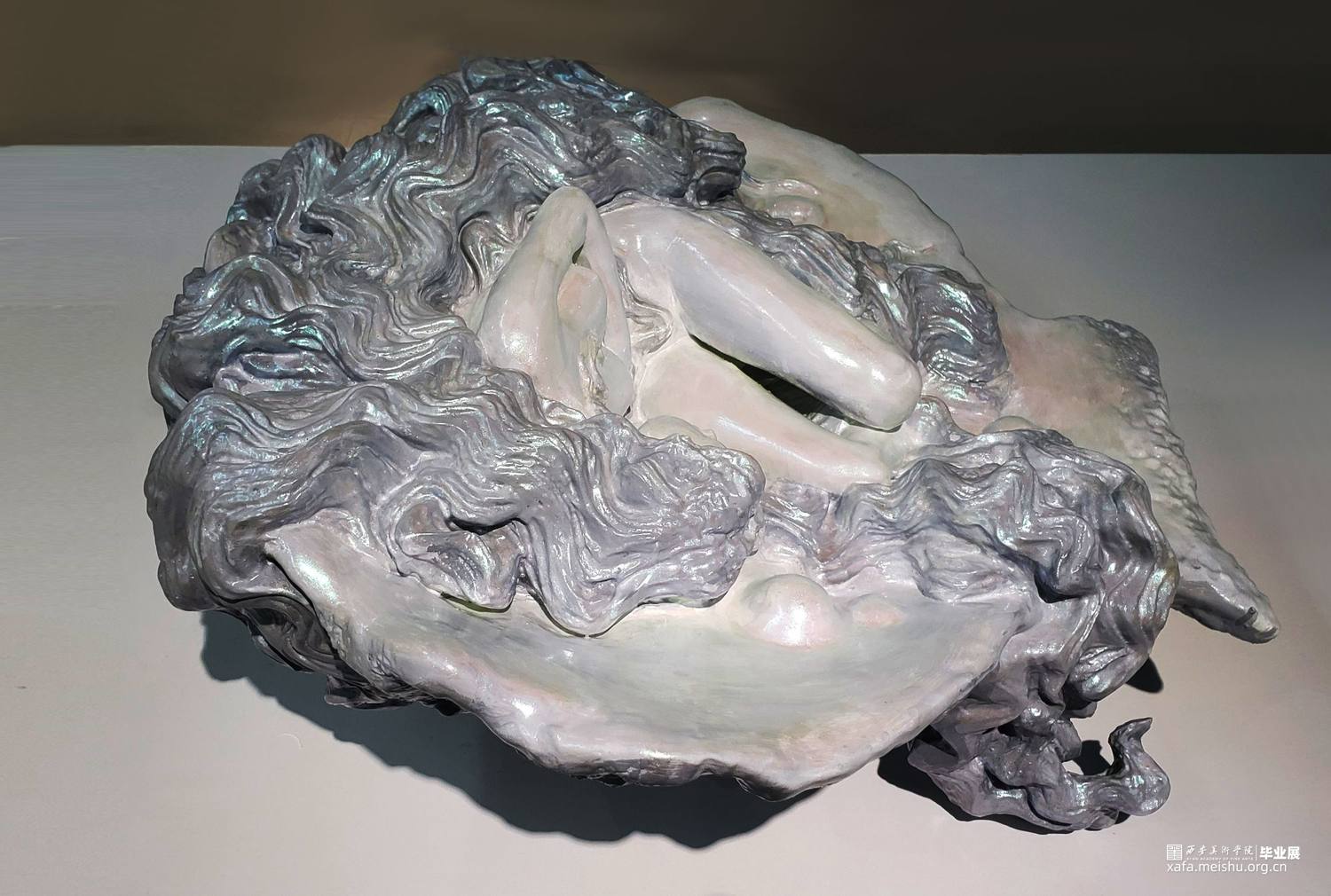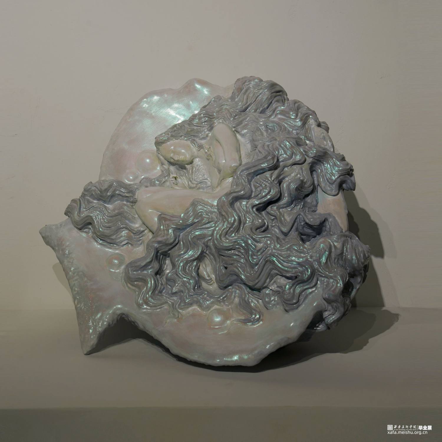 《孕育》灵感来源于海洋中的贝壳生物,借用贝壳与珍珠,采用拟人的方式来表现母亲孕育孩子的时刻。
