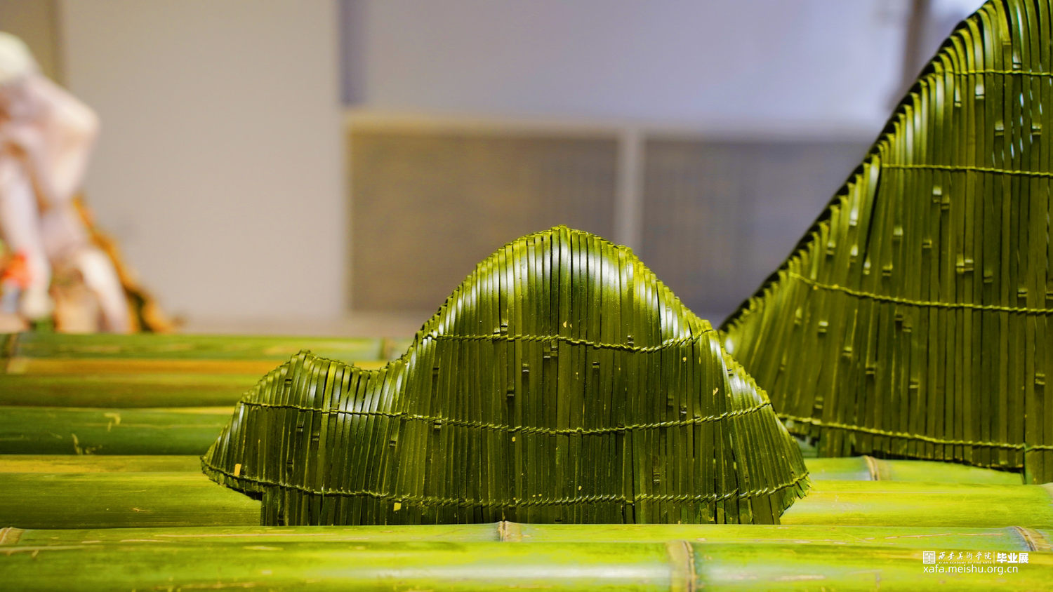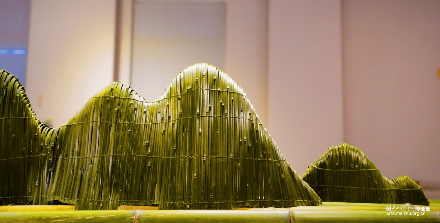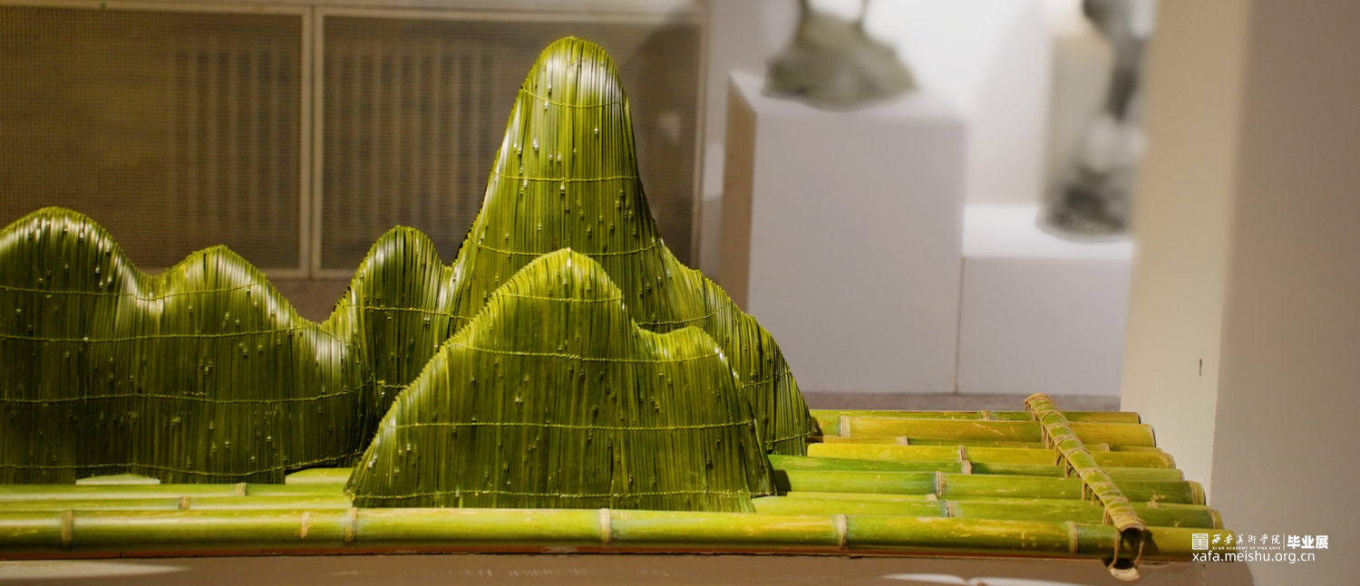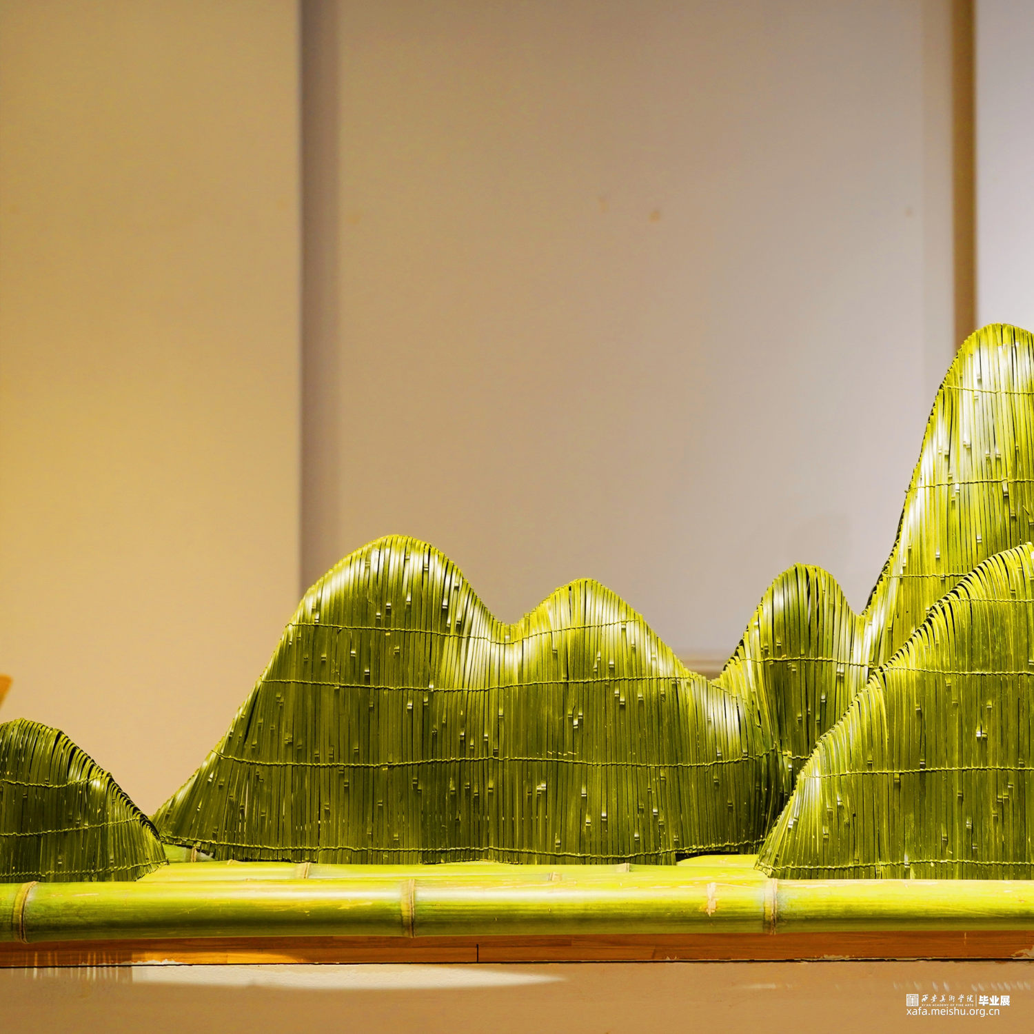 记忆里自己还是个孩童时,常坐在竹筏上随着潺潺流水穿越竹林和山间。如今童年已逝,竹筏也已黯晦消沉。作品里的竹筏会逐渐褪去青绿色,变成暗黄的老物件,像许多老物品一样消失在我们的世界里。青山虽常在,却已物是人非,满是回忆。