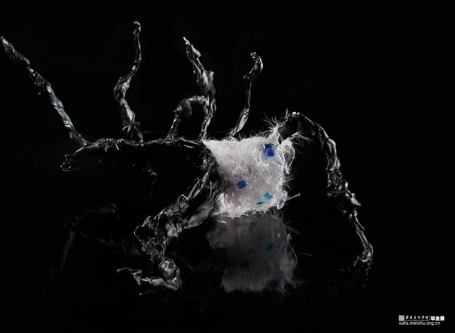 本作品以海洋保护为主题,将海洋生物的形态抽象化并且对未来海洋生物的进化形态进行猜测,为此灵感结合环保材料创作出以下两个系列的作品。