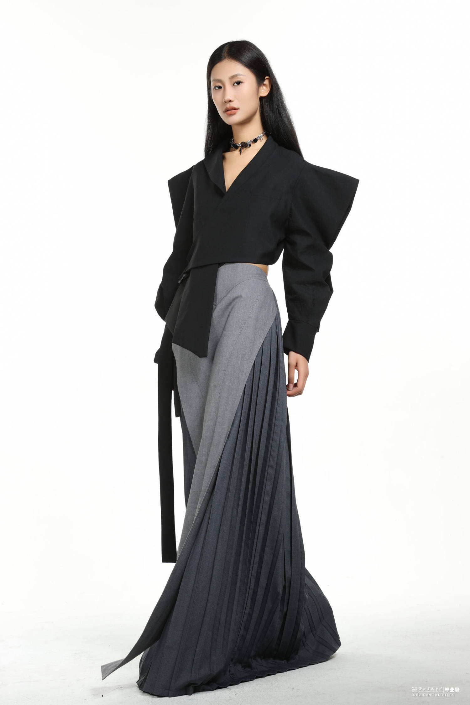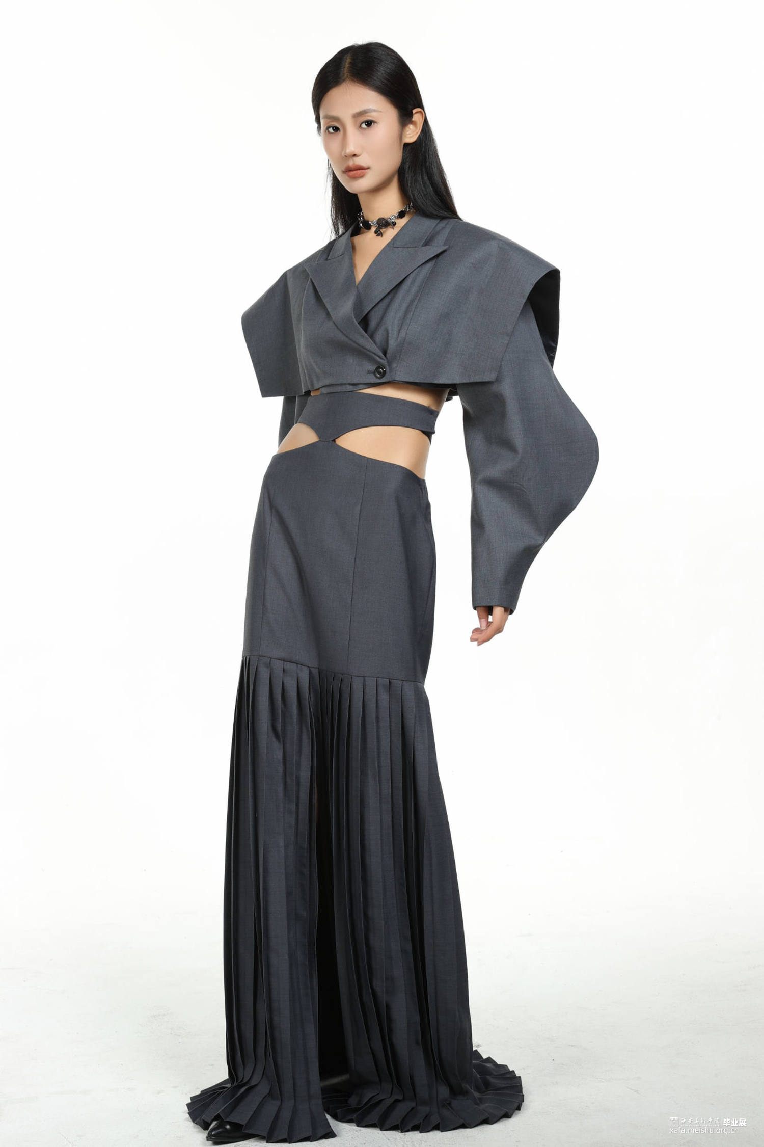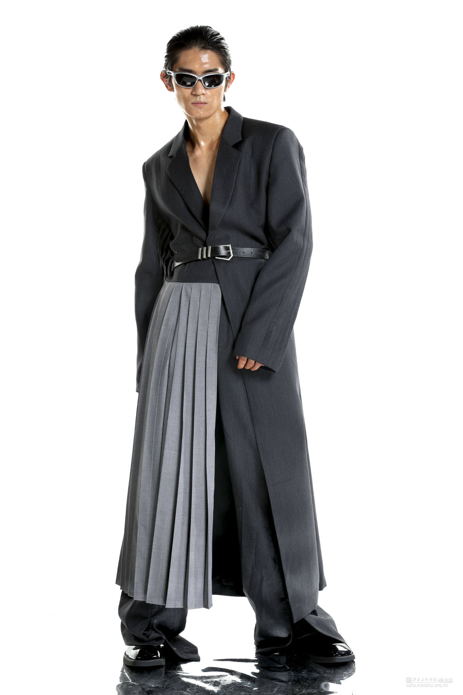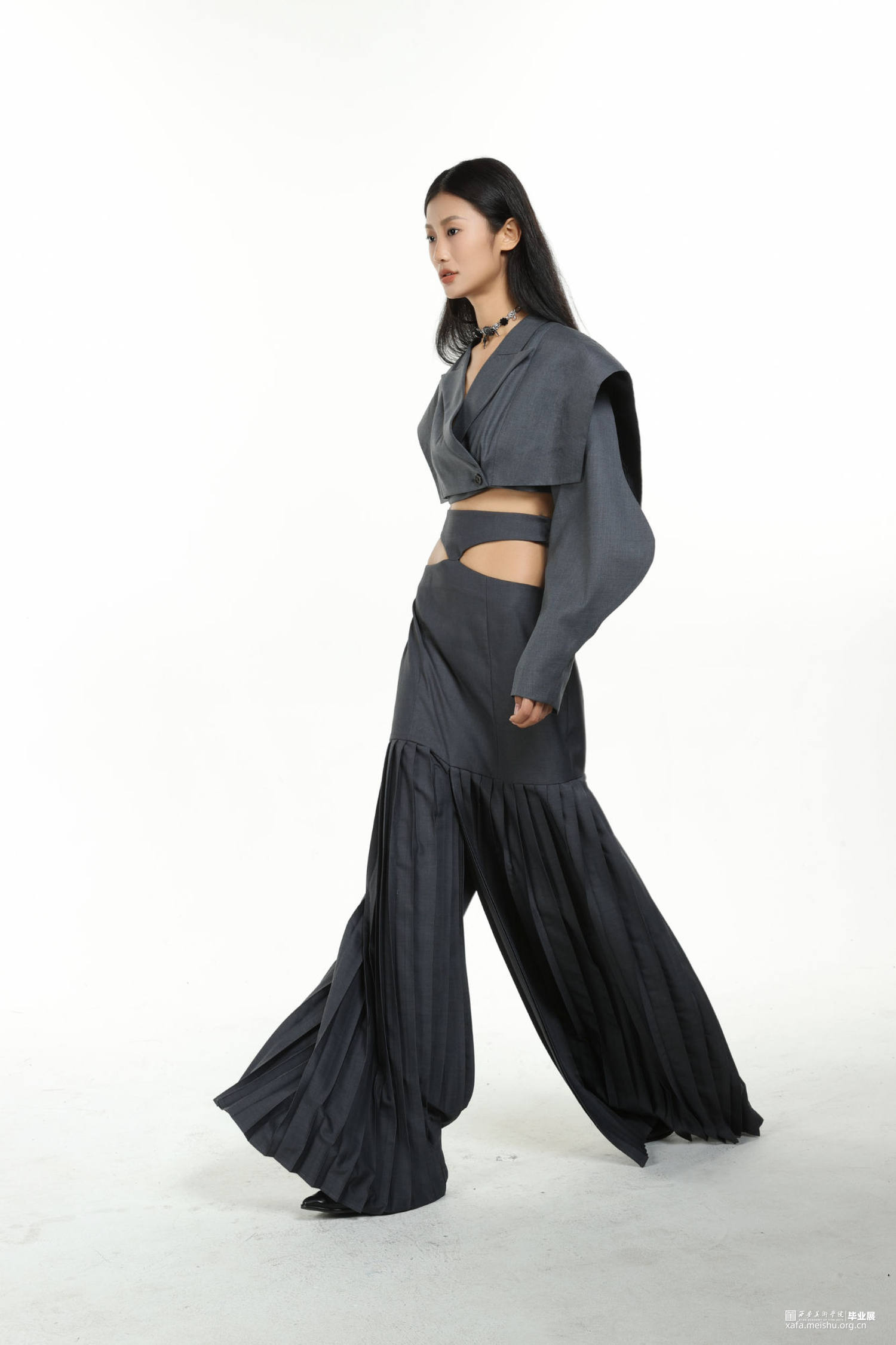 该系列作品以无性别主义为主题,随着社会的不断进步和人们的观念变革,越来越多的人开始关注性别平等和性别自由等问题。在这样的背景下,无性别主义服装设计成为了时尚界的一种新趋势,它旨在打破传统的性别二元观念,从模糊性别的角度出发,通过设计和创新,让每一个人都能够自由地选择自己想要的穿着风格和服装款式。