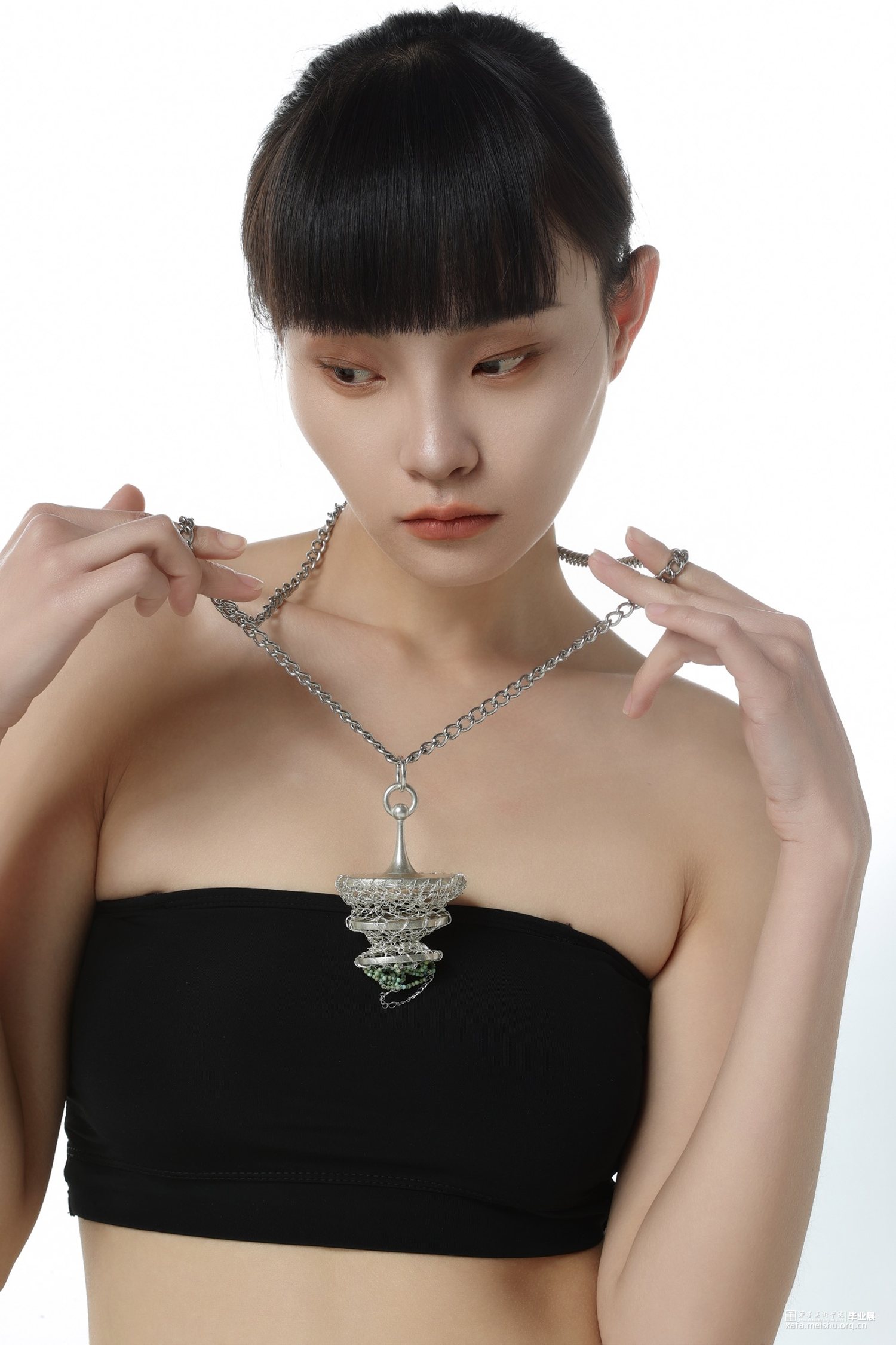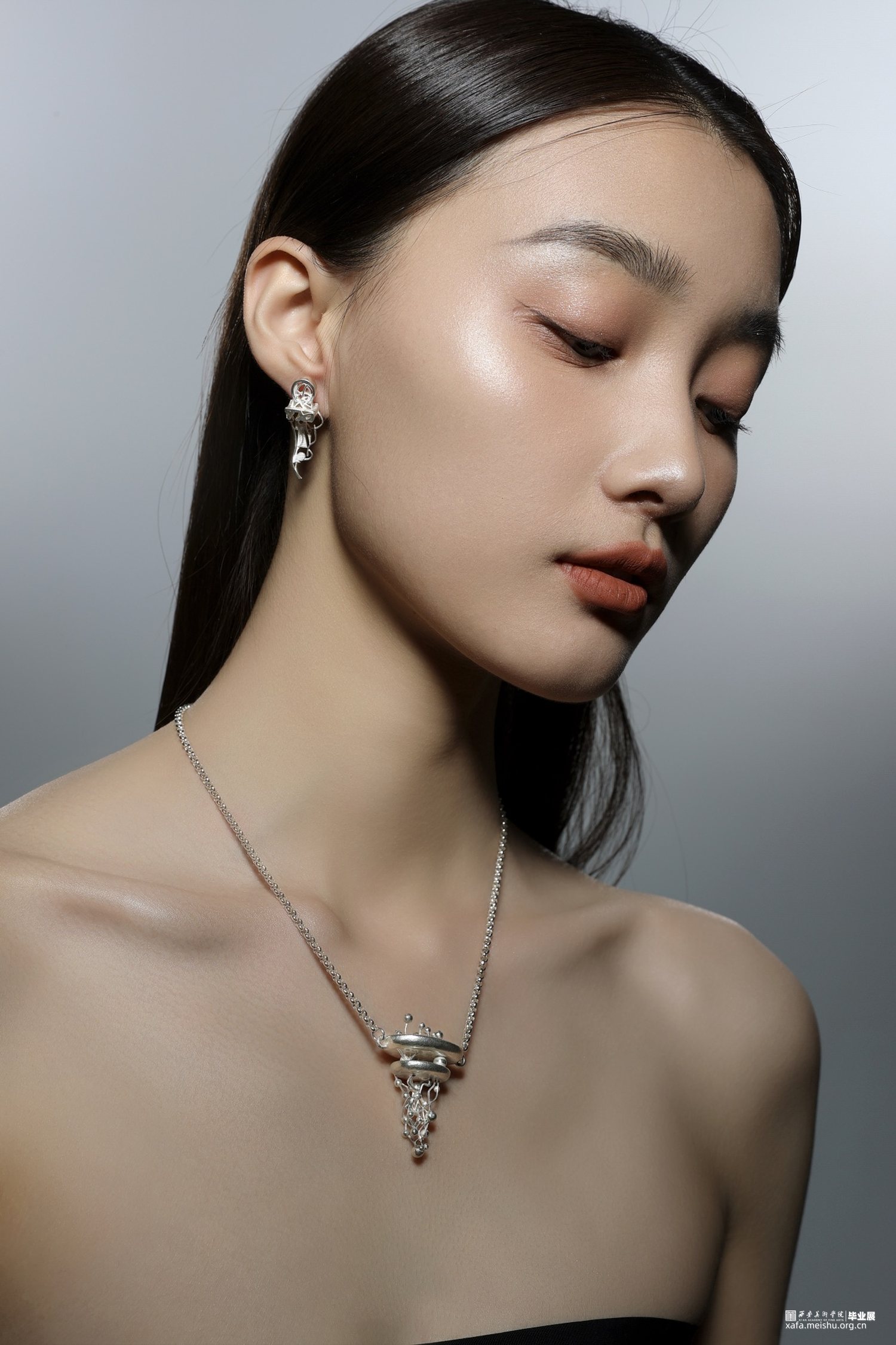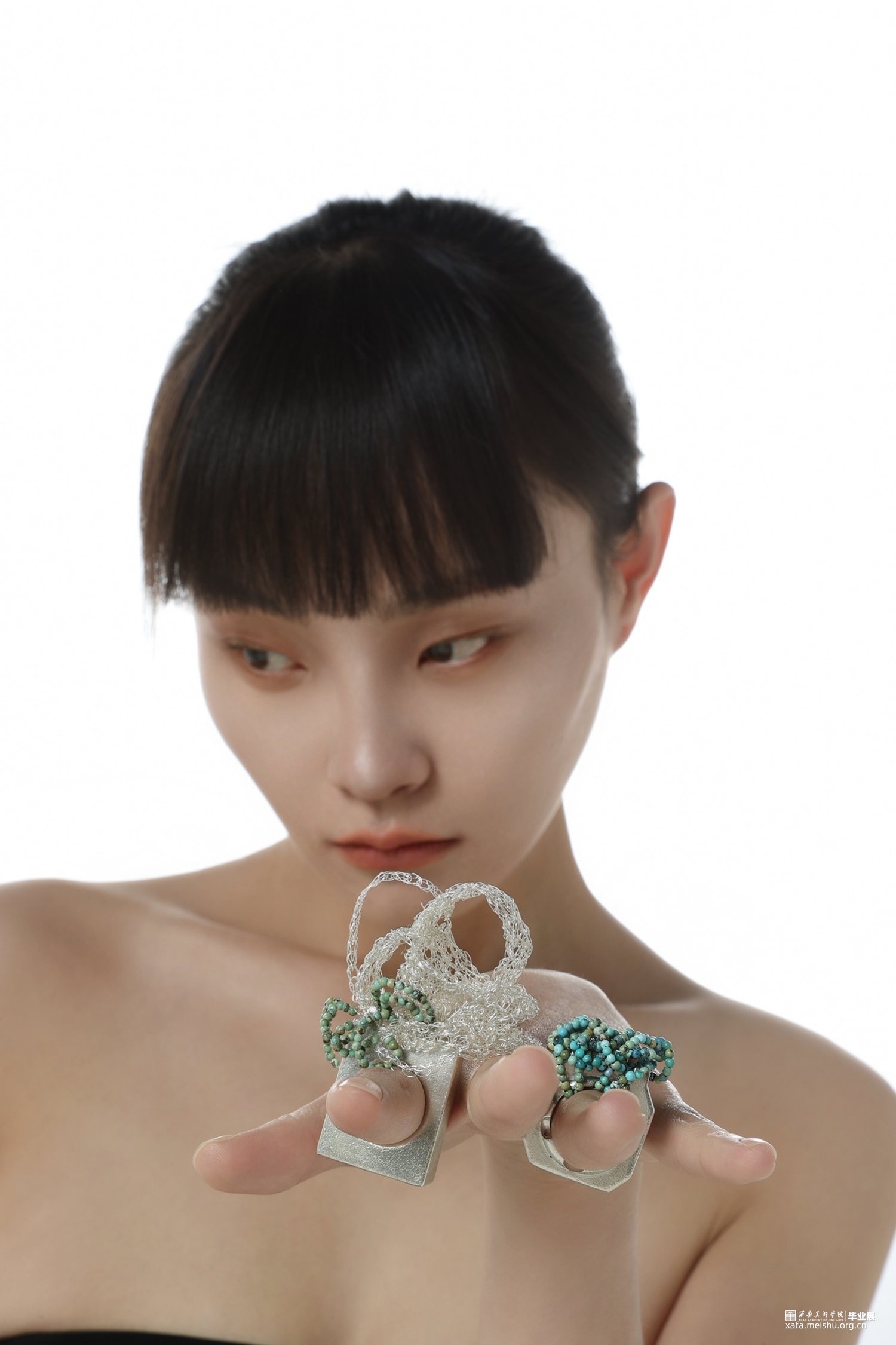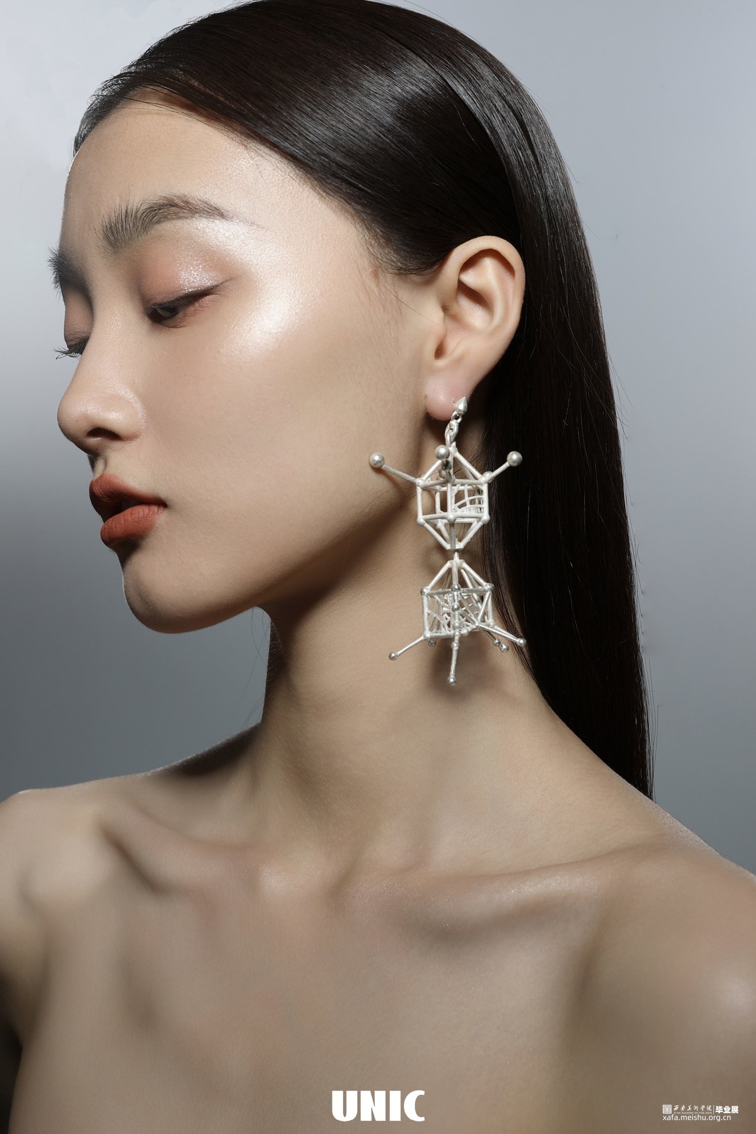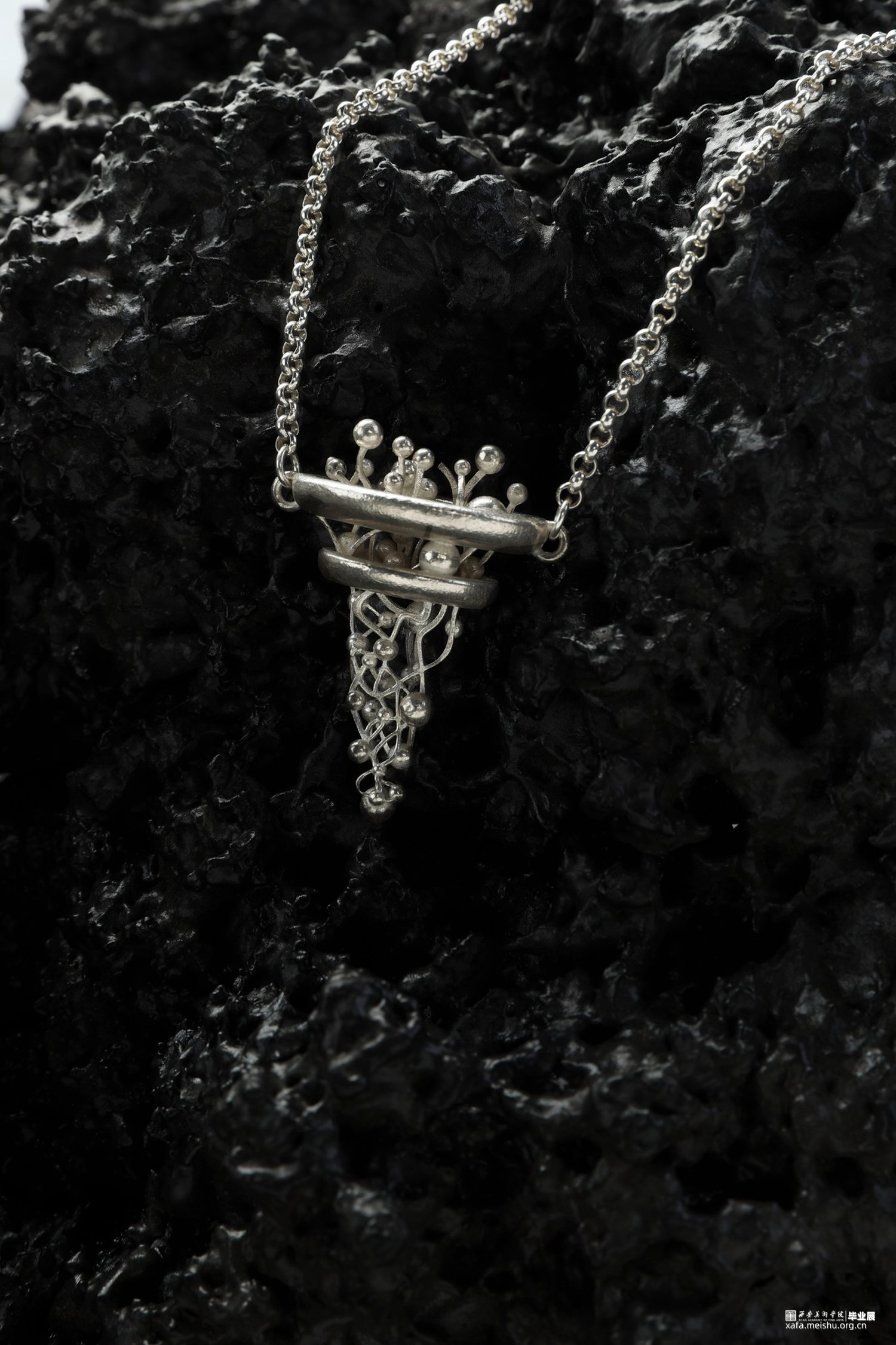 首饰作品《不可名状》的灵感来源于古希腊的一种假想物质—乙太。乙太,本是古希腊哲学家提出的一种构成宇宙万物间的一种假想物质,而在现代电影《关于莉莉周的一切》中延伸出新的概念:乙太在我们的生活中无处不在,乙太构成了我们所有瞬间的情绪,我们被乙太包裹,形成了感受的温床。本作系列作品使乙太具像化,并将乙太设计成可捕捉的与触碰的形态,把情感剥离我们的身体并单独储存起来,使精神力量成为可控的与可引导的。此作品多以圆形与几何体构成,来表达乙太的最初形态与构建,宛如人类的细胞原子与分子,形成和生命之间原始的联系纽带,以此